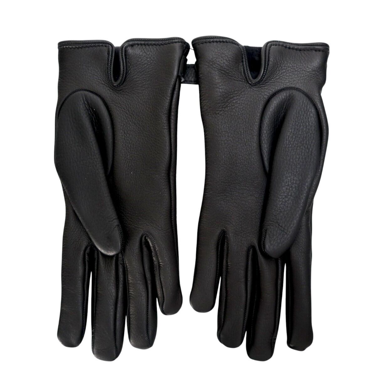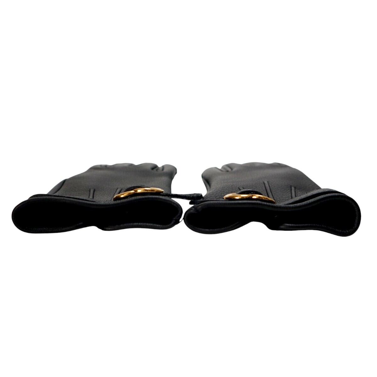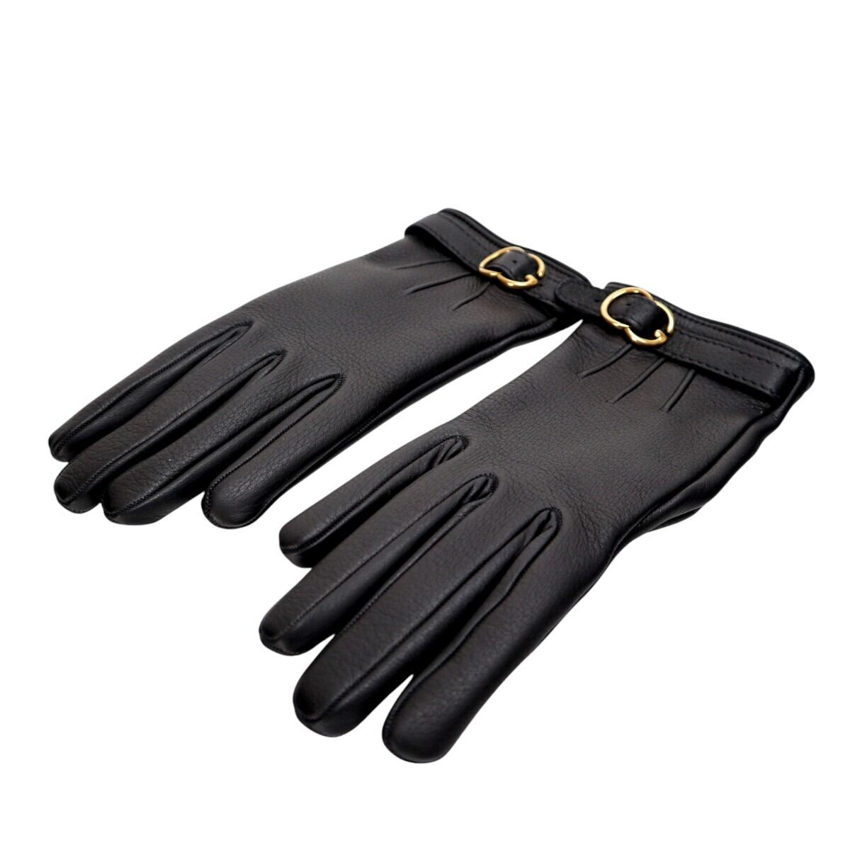 GUCCI グッチ Gバックル レザー/カシミヤ グローブ 手袋 7 1/2 ブラック/ゴールド T2601-k043