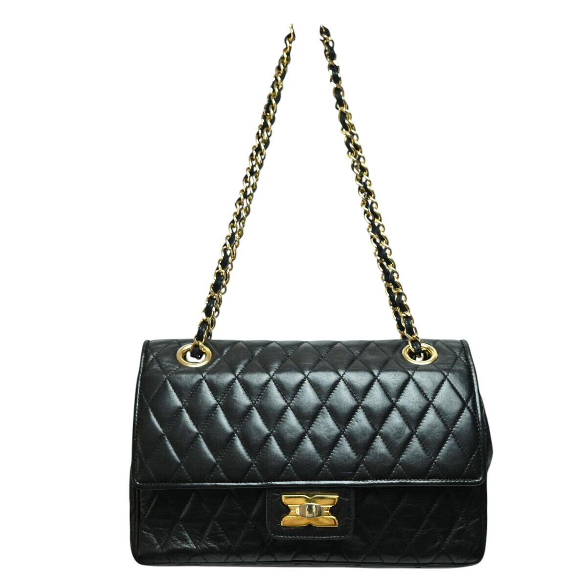 商品名:Aquascutum アクアスキュータム キルティングレザー ダブルフラップ チェーンショルダーバッグ ブラック