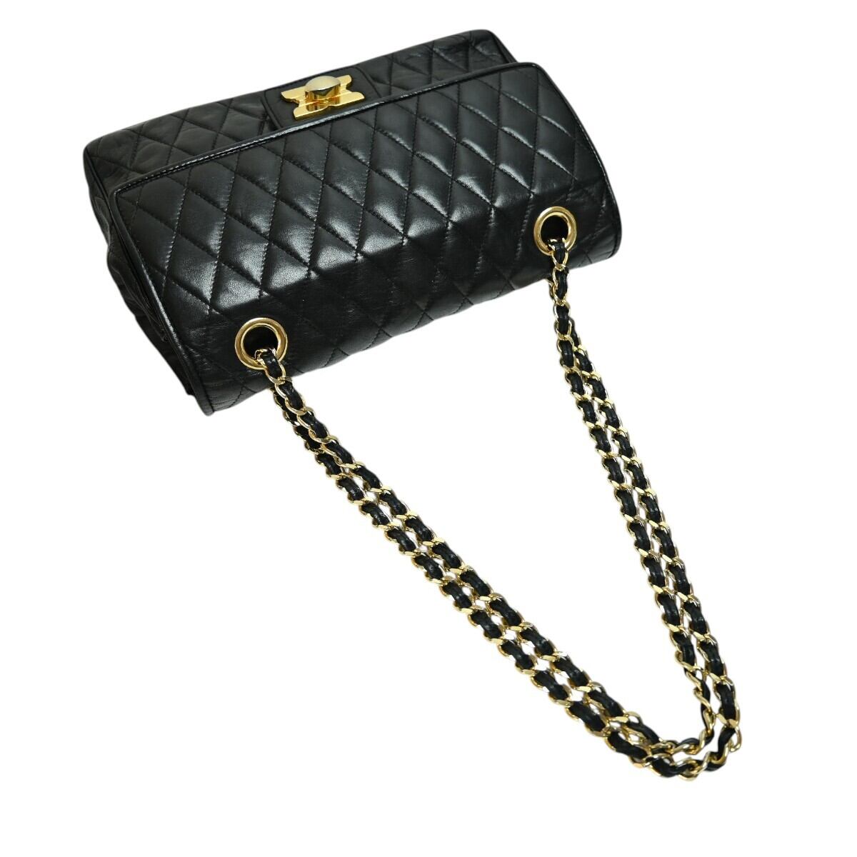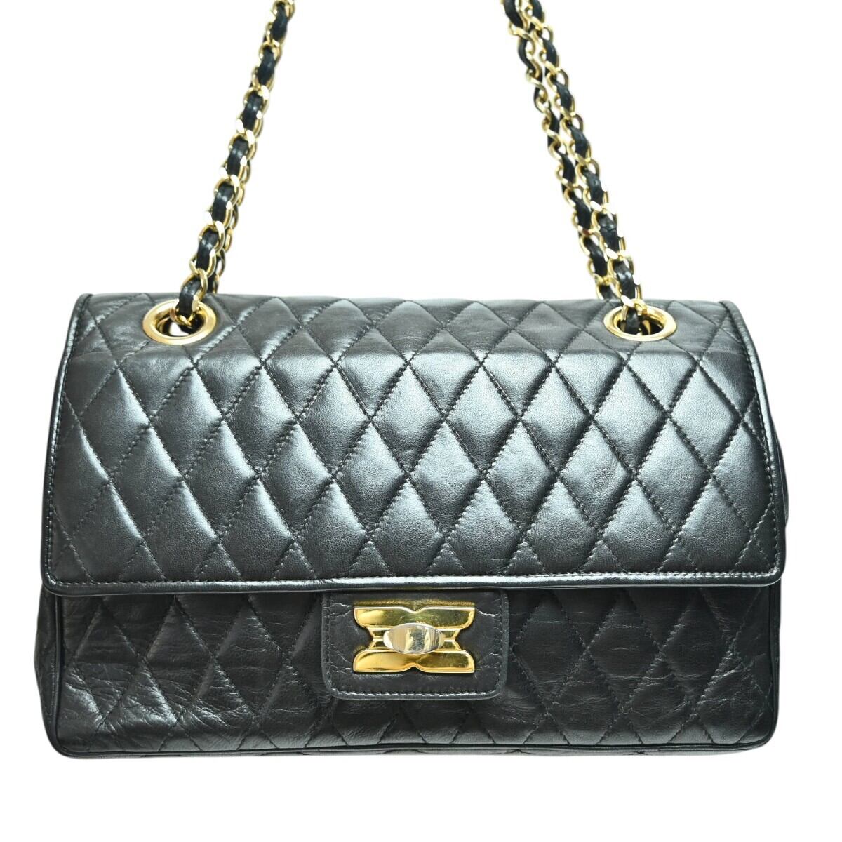 Aquascutum アクアスキュータム キルティングレザー ダブルフラップ チェーンショルダーバッグ ブラック S2512-k096