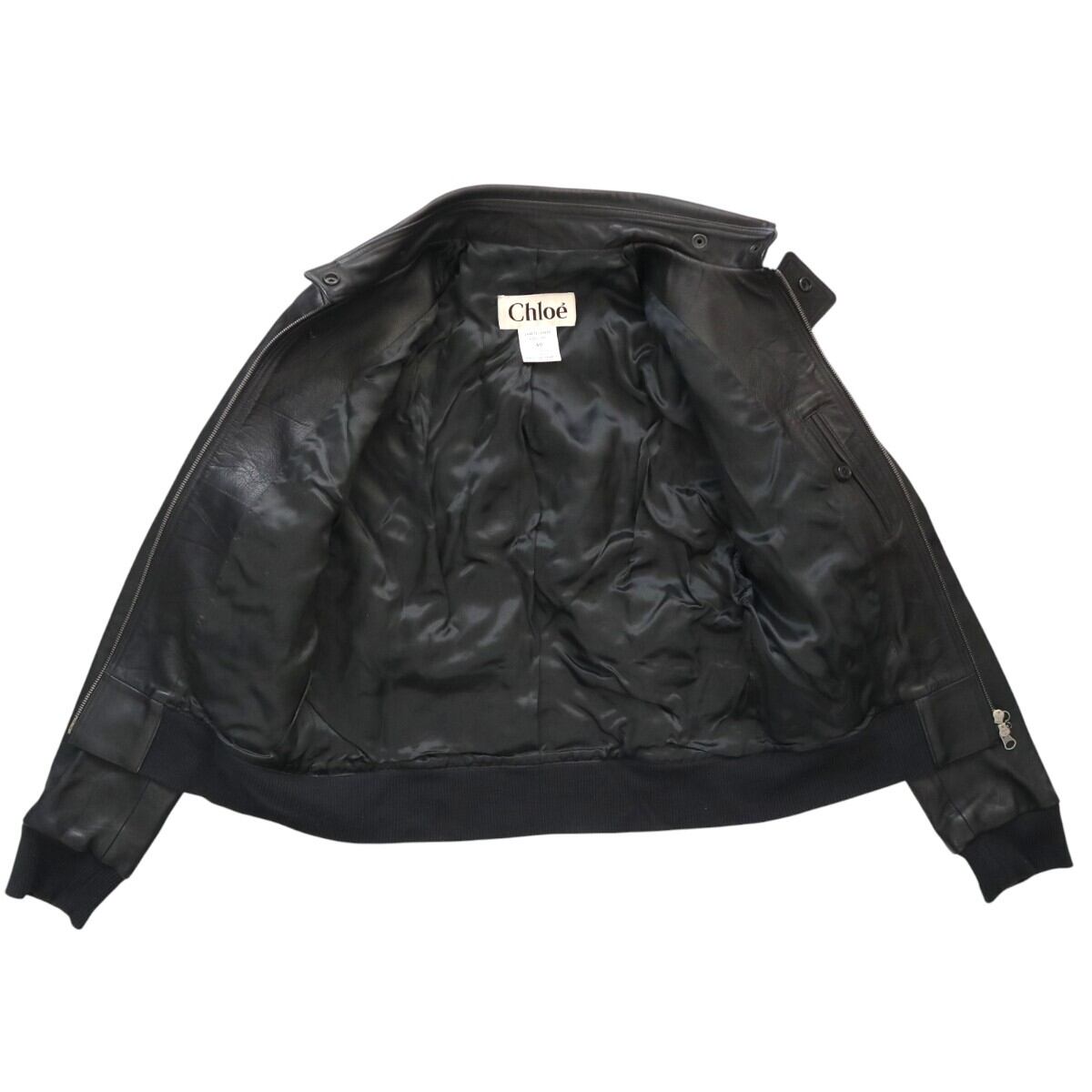 Chloe クロエ ラムスキン レザ― シングルジャケット 40 ブラック K2601-k063