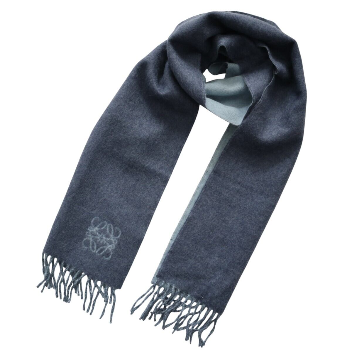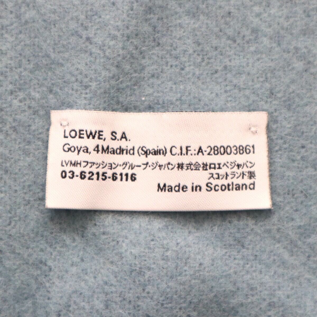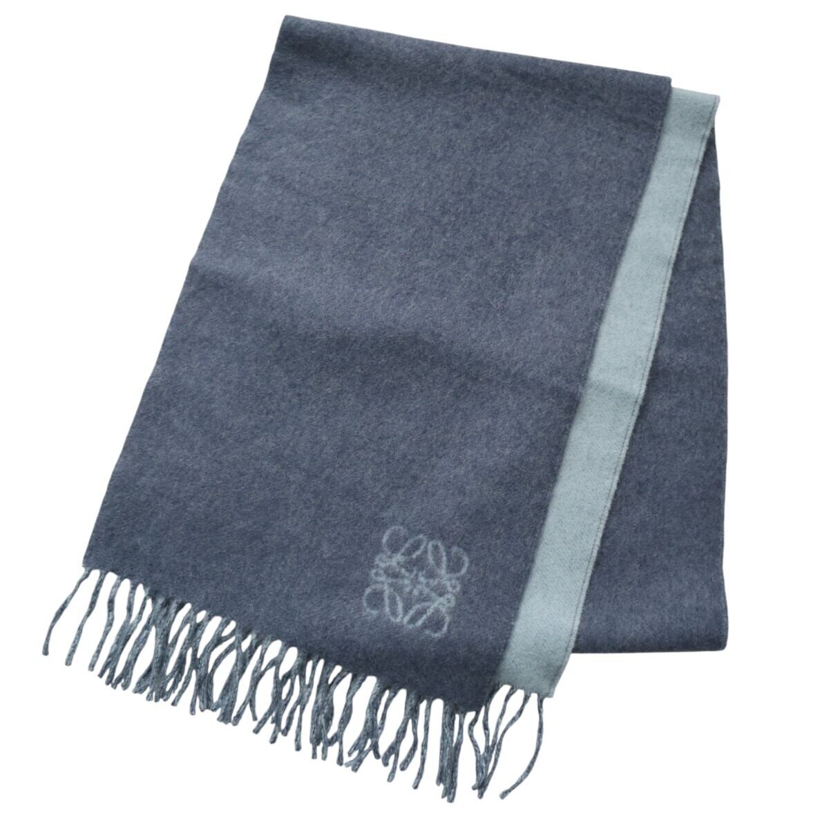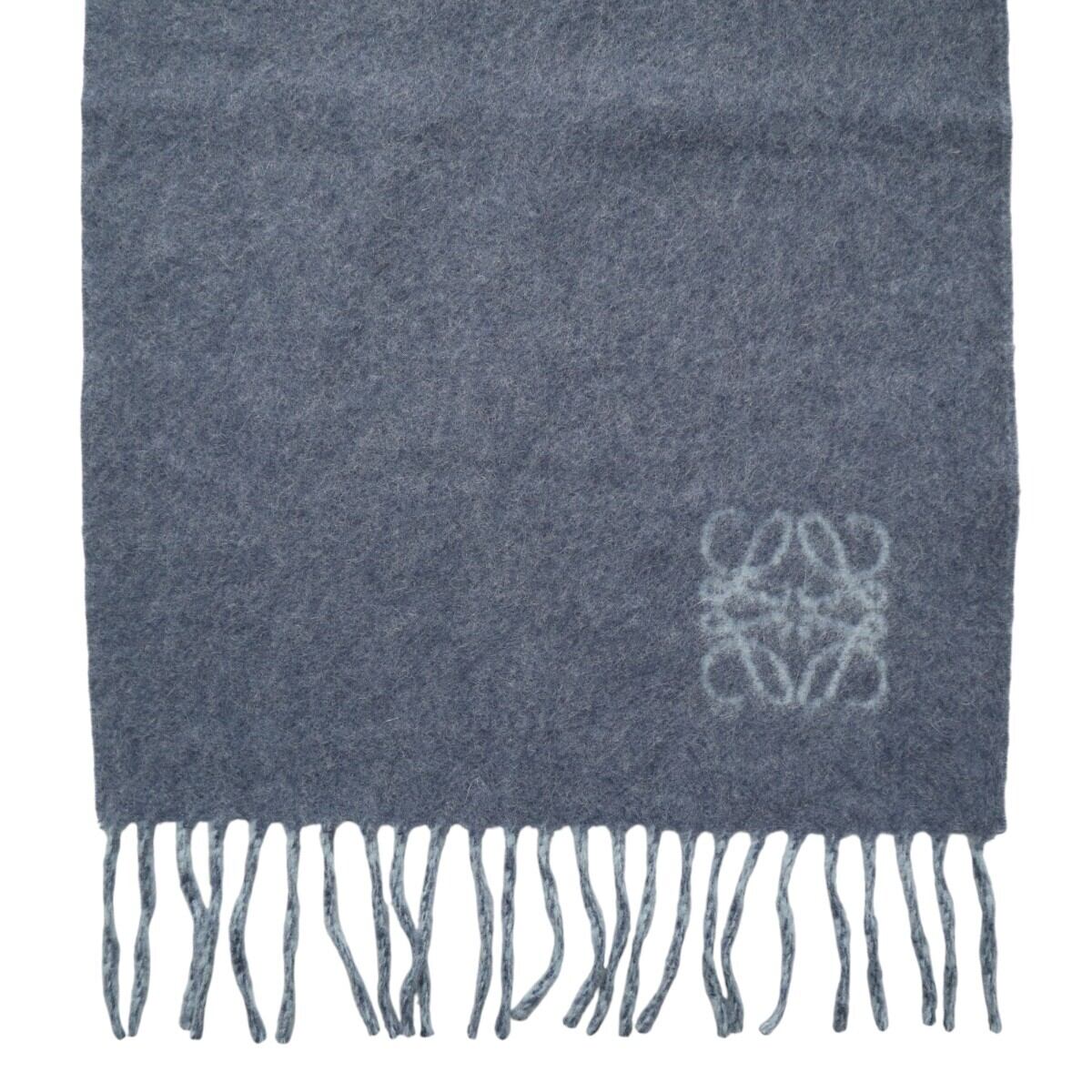美品 LOEWE ロエベ アナグラムロゴ フリンジ ウール/アンゴラ マフラー ブルー K2601-k004NP