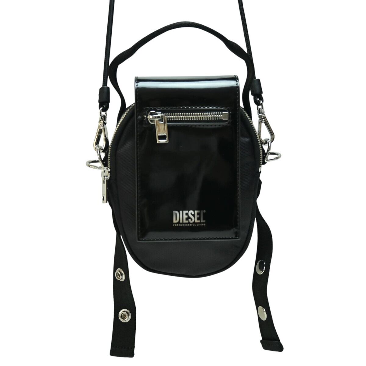 美品 DIESEL ディーゼル エナメル/ナイロン/レザー 2WAY ショルダーバッグ ハンドバッグ ブラック S2601-k042