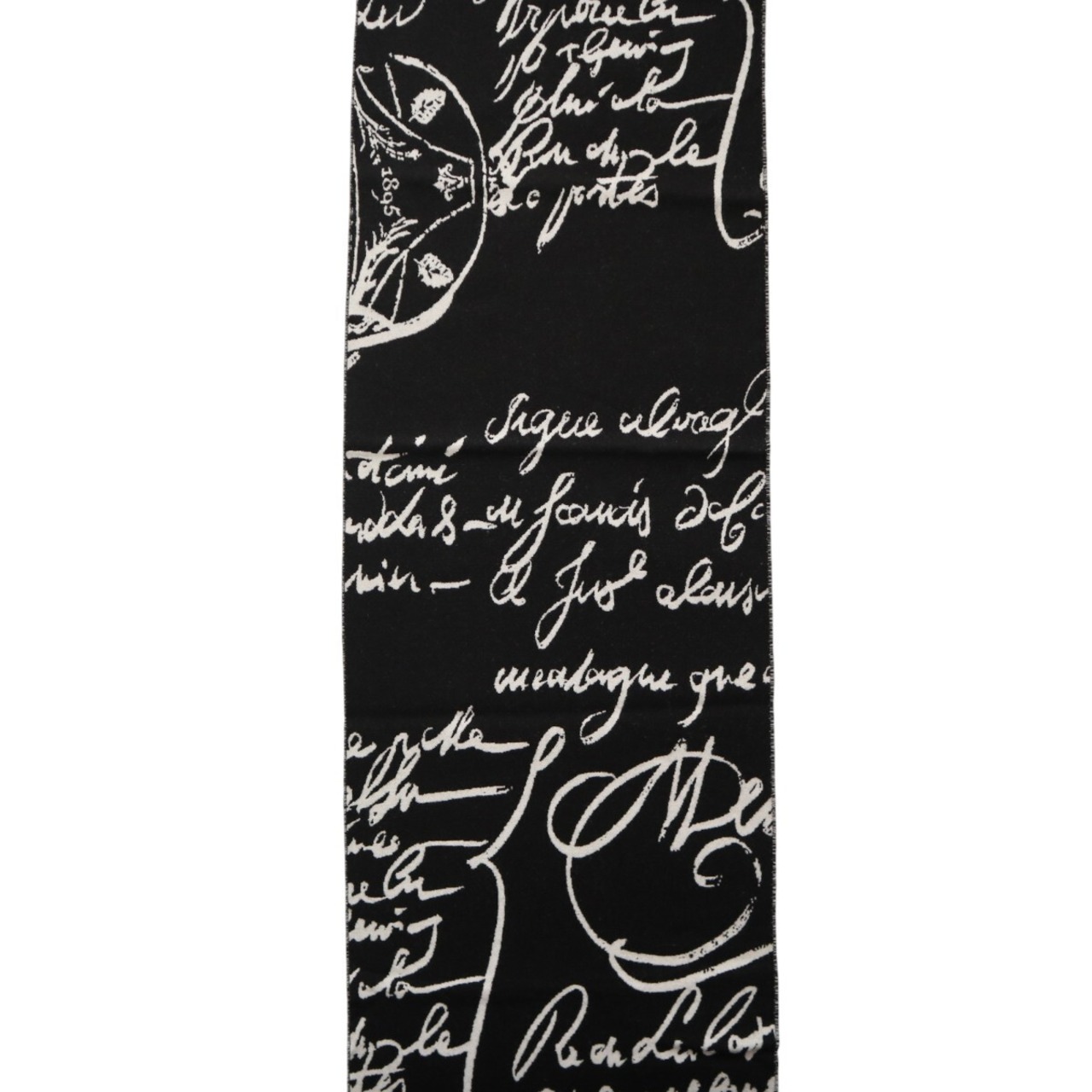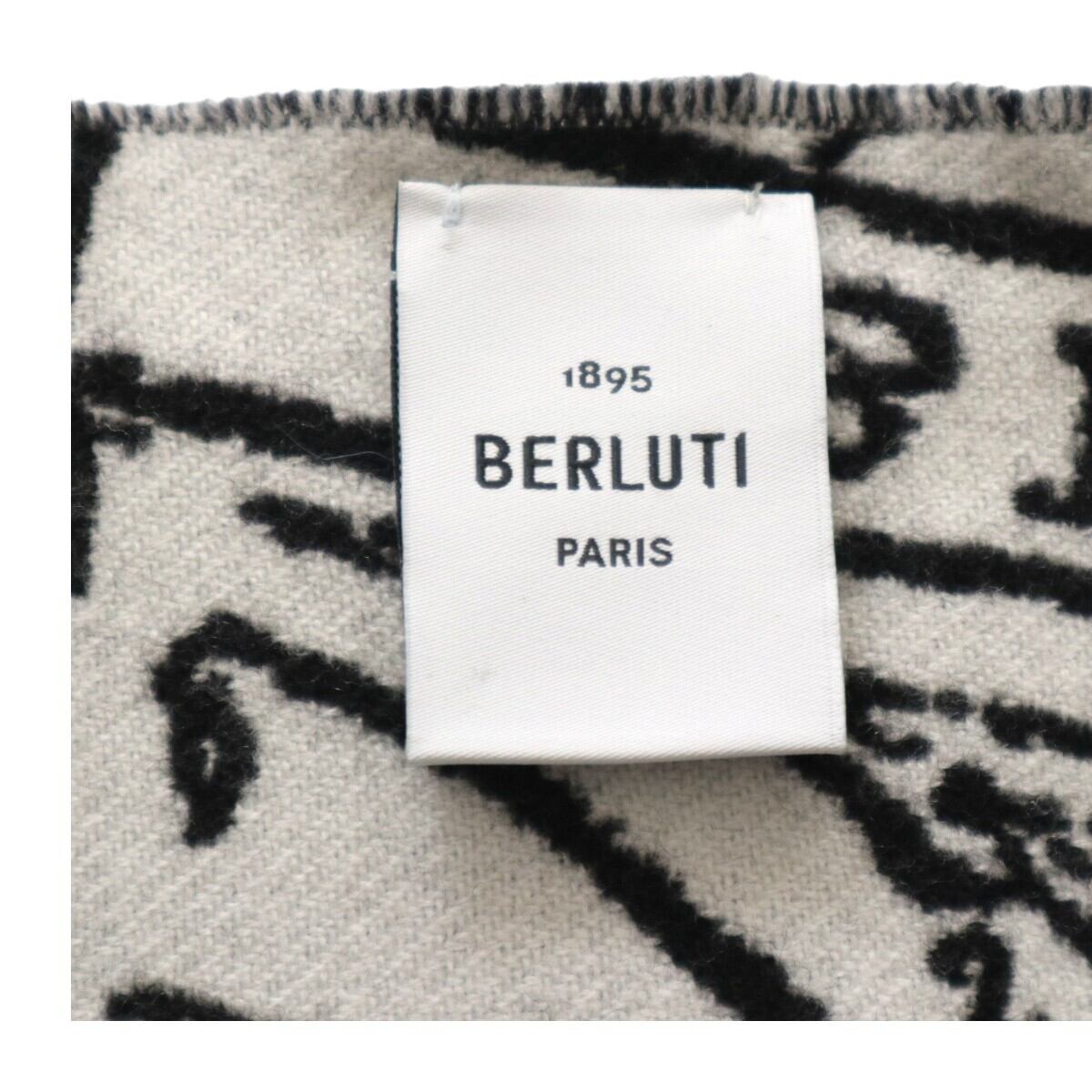 商品名:美品 BERLUTI ベルルッティ カリグラフィ フリンジ ウールマフラー ブラック/ホワイト