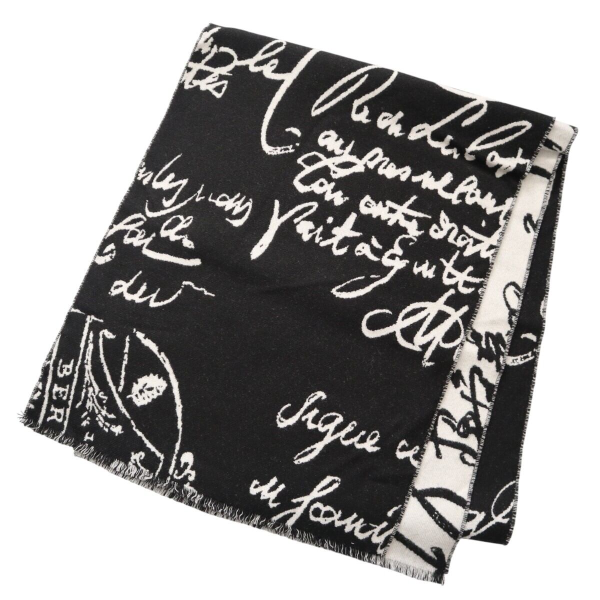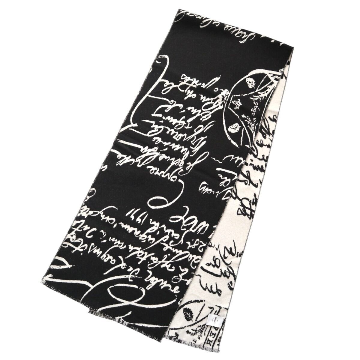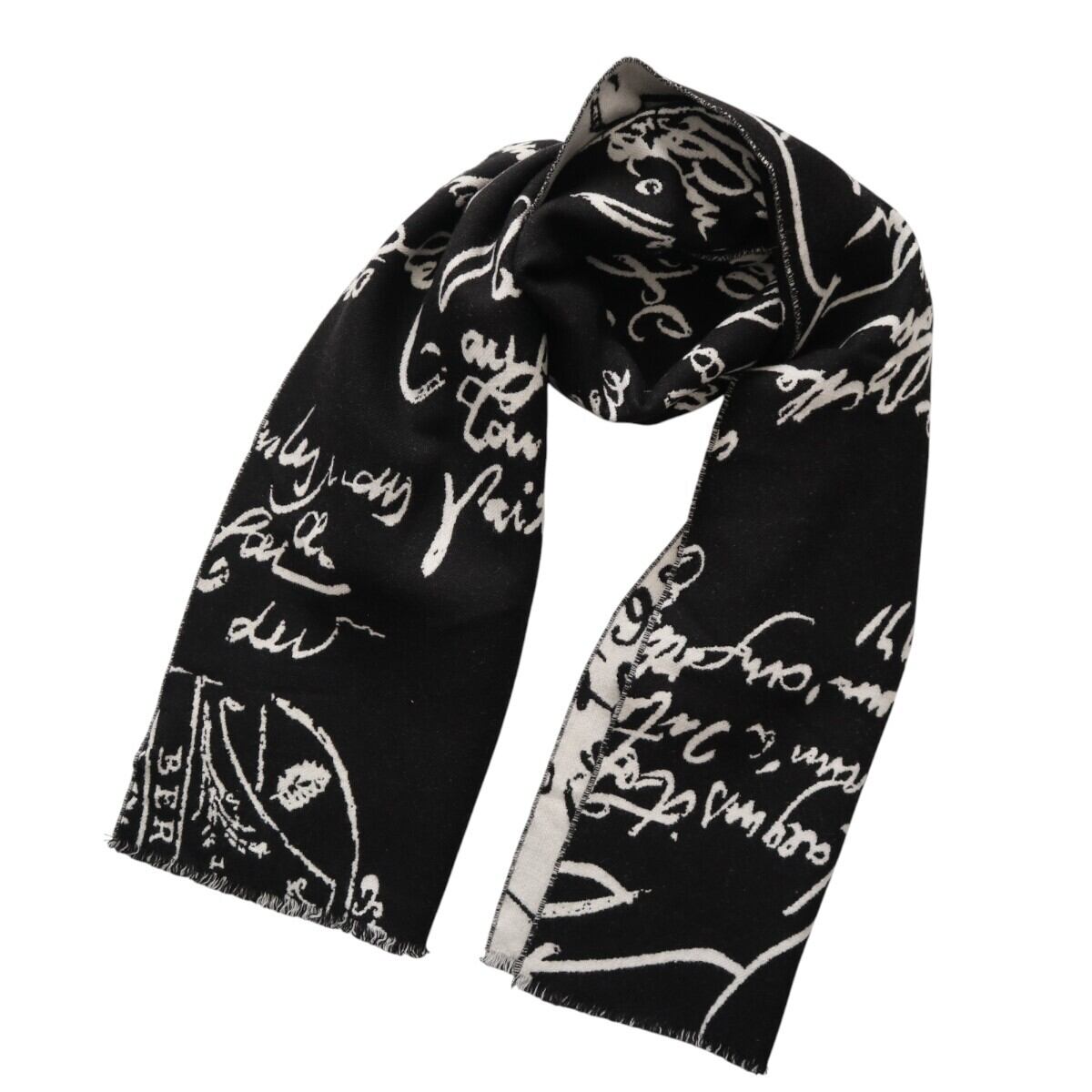 美品 BERLUTI ベルルッティ カリグラフィ フリンジ ウール マフラー ブラック/ホワイト K2601-k003