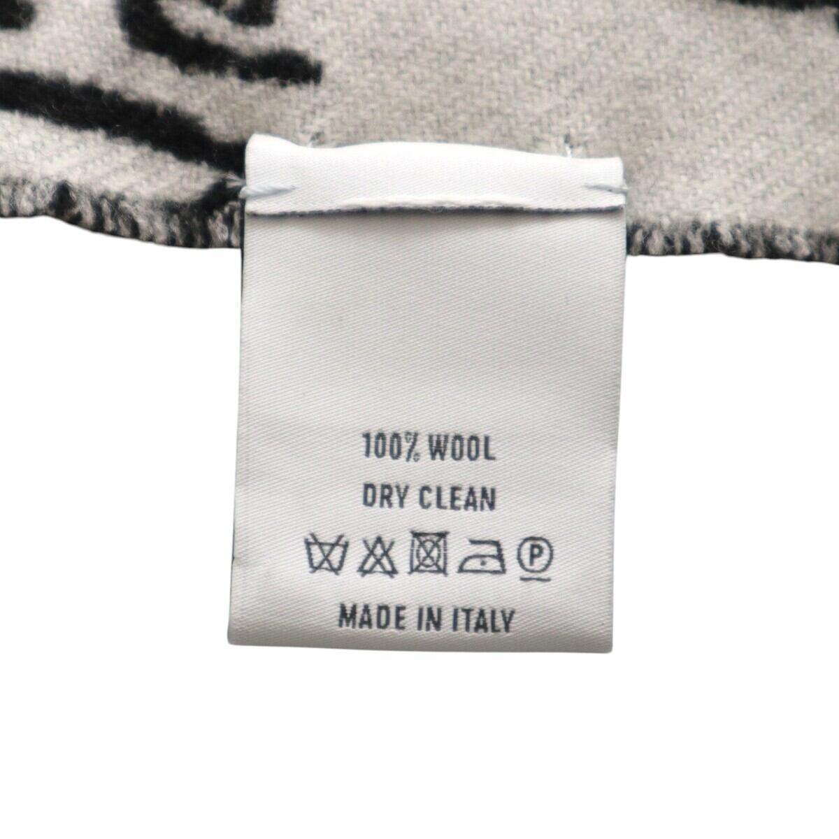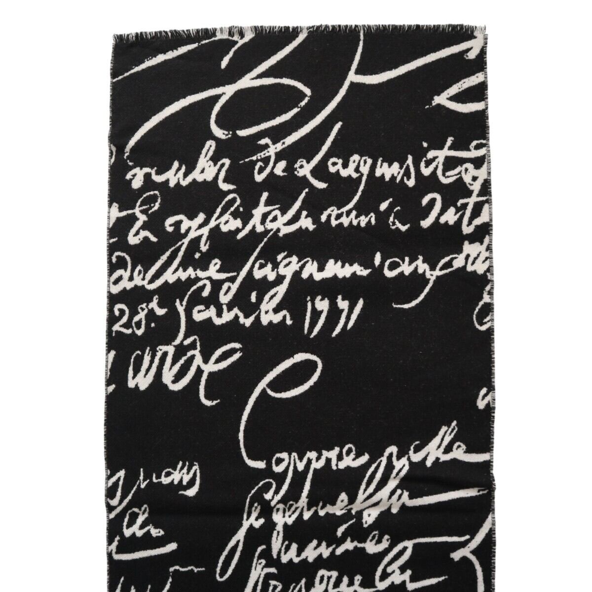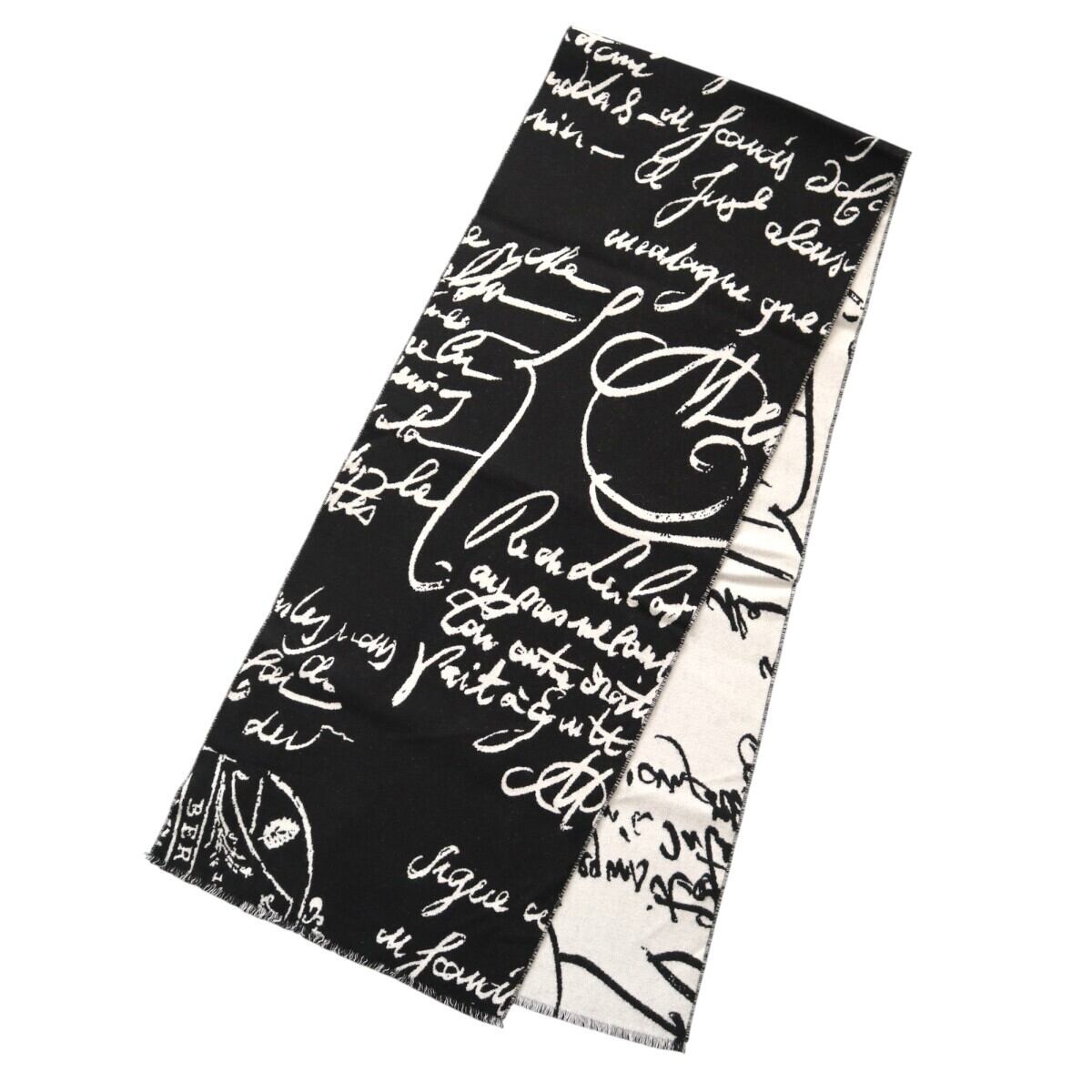 美品 BERLUTI ベルルッティ カリグラフィ フリンジ ウール マフラー ブラック/ホワイト K2601-k003