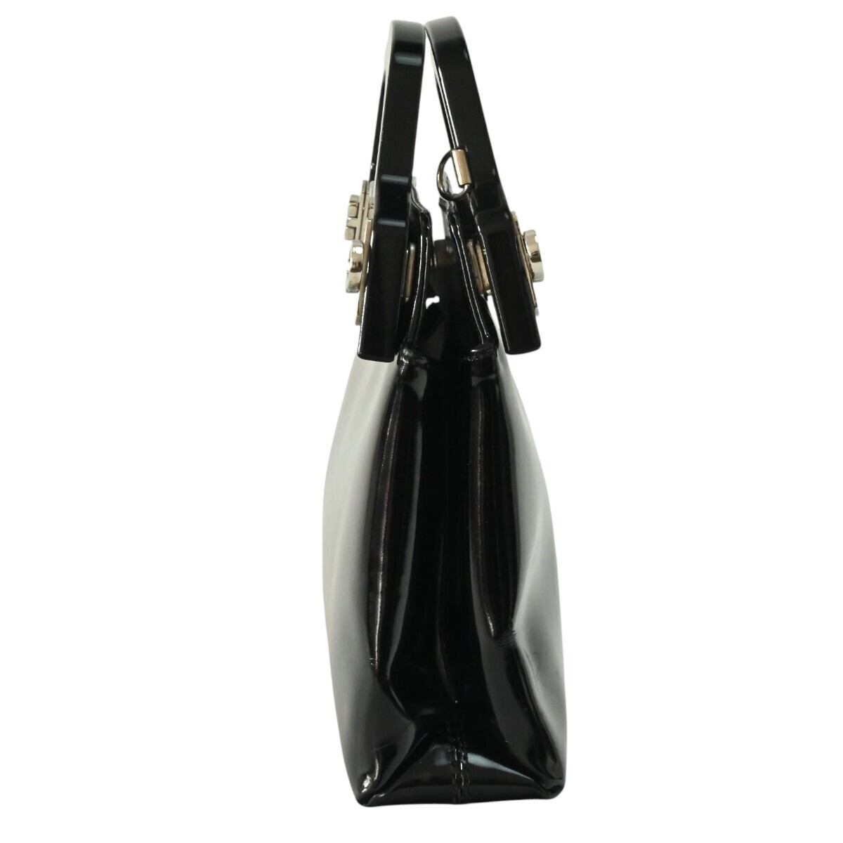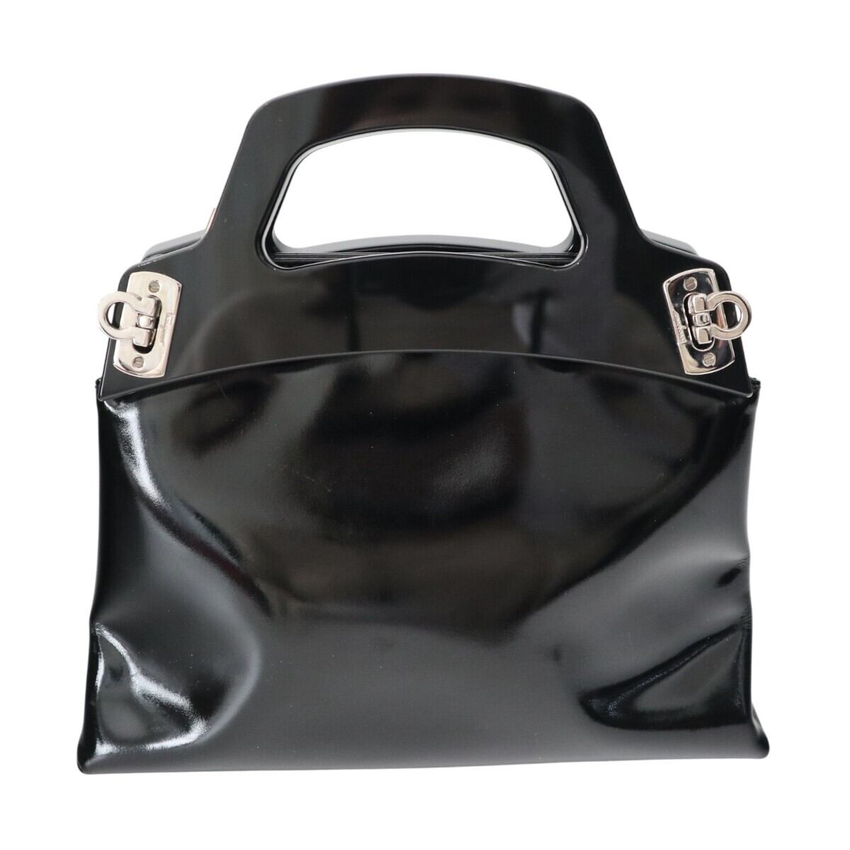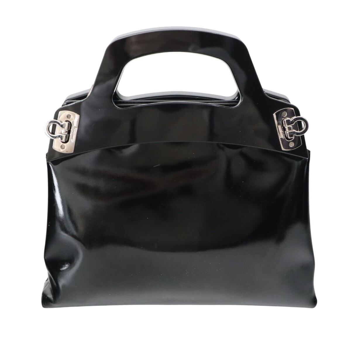 商品名:Salvatore Ferragamo サルヴァトーレフェラガモ ガンチーニ パテントレザ― プラスチックハンドル ハンドバッグ ブラック
