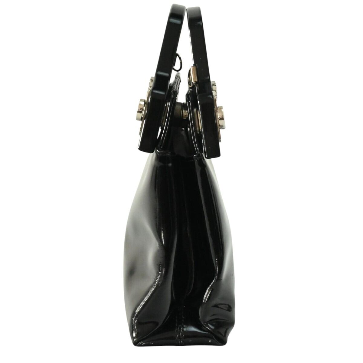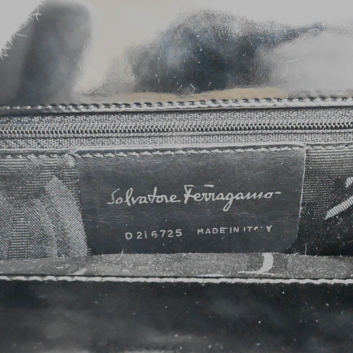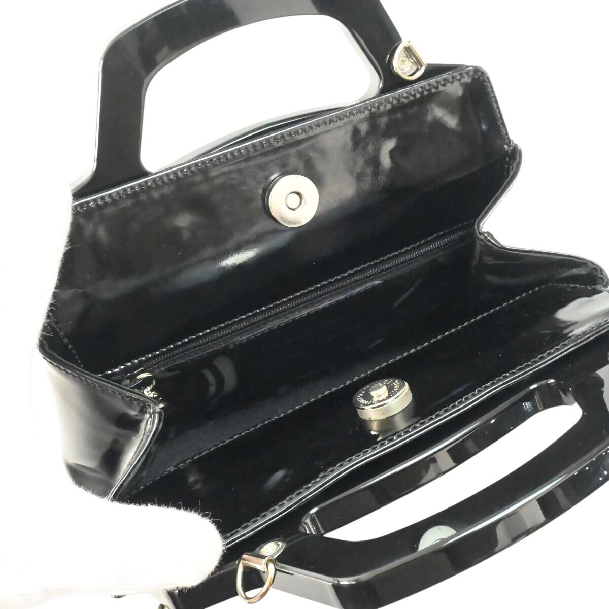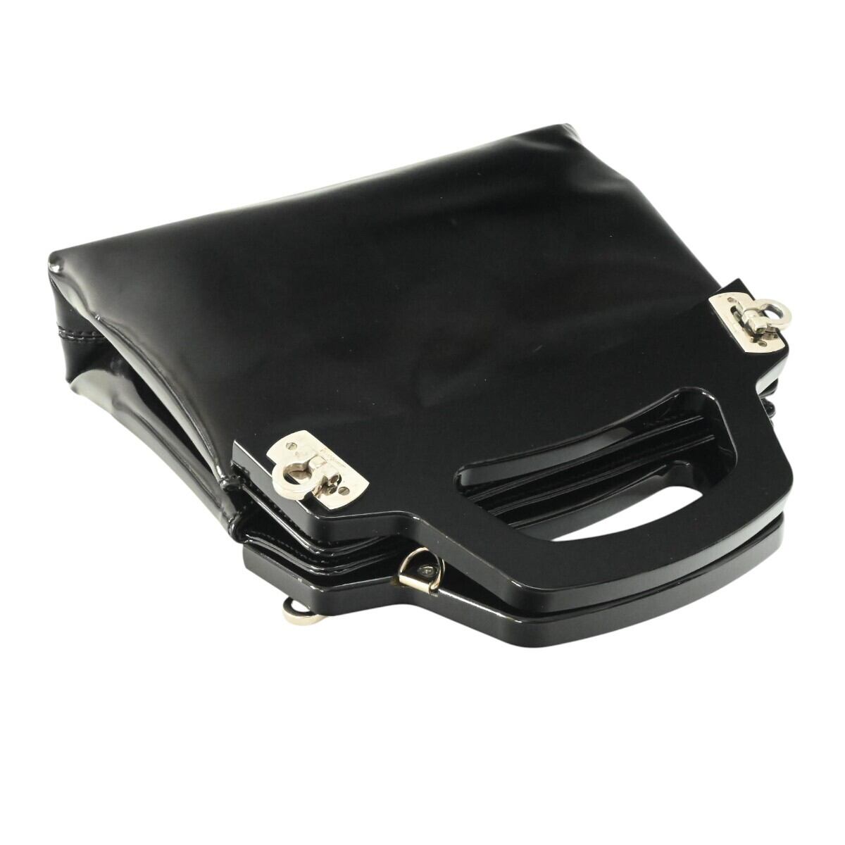 商品名:Salvatore Ferragamo サルヴァトーレフェラガモ ガンチーニ パテントレザ― プラスチックハンドル ハンドバッグ ブラック