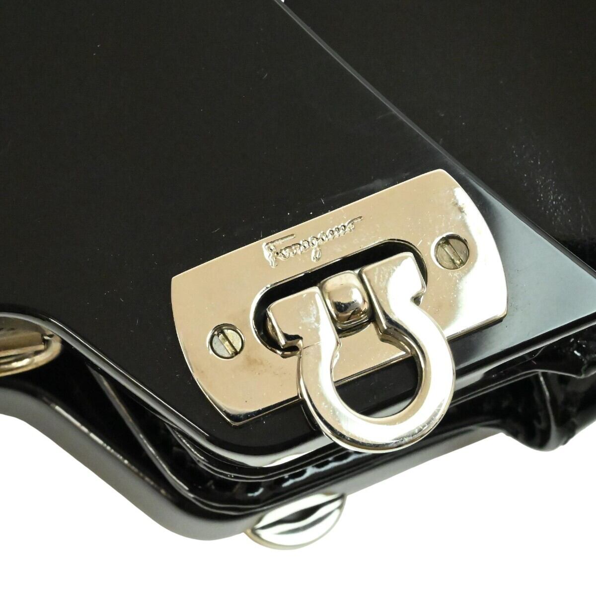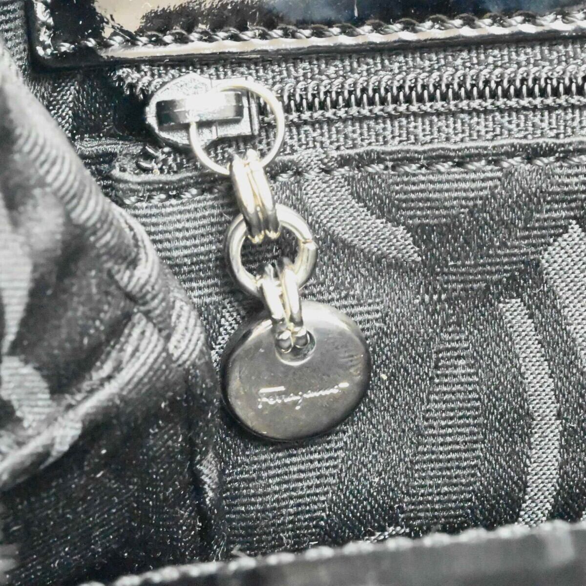 Salvatore Ferragamo サルヴァトーレフェラガモ ガンチーニ パテントレザ― プラスチックハンドル ハンドバッグ ブラック S2601-k021