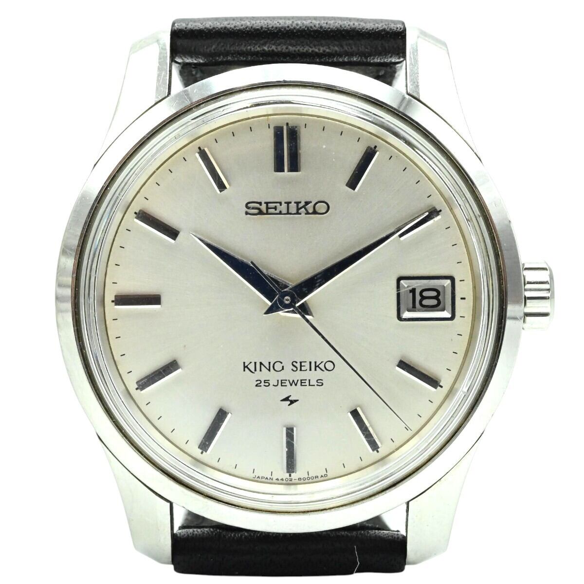 SEIKO KINGSEIKO セイコー キングセイコー メダリオン 25石 デイト SS/革ベルト 手巻き時計 4402-8000 シルバー文字盤 M2601-k073