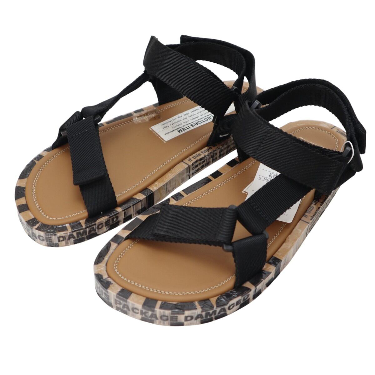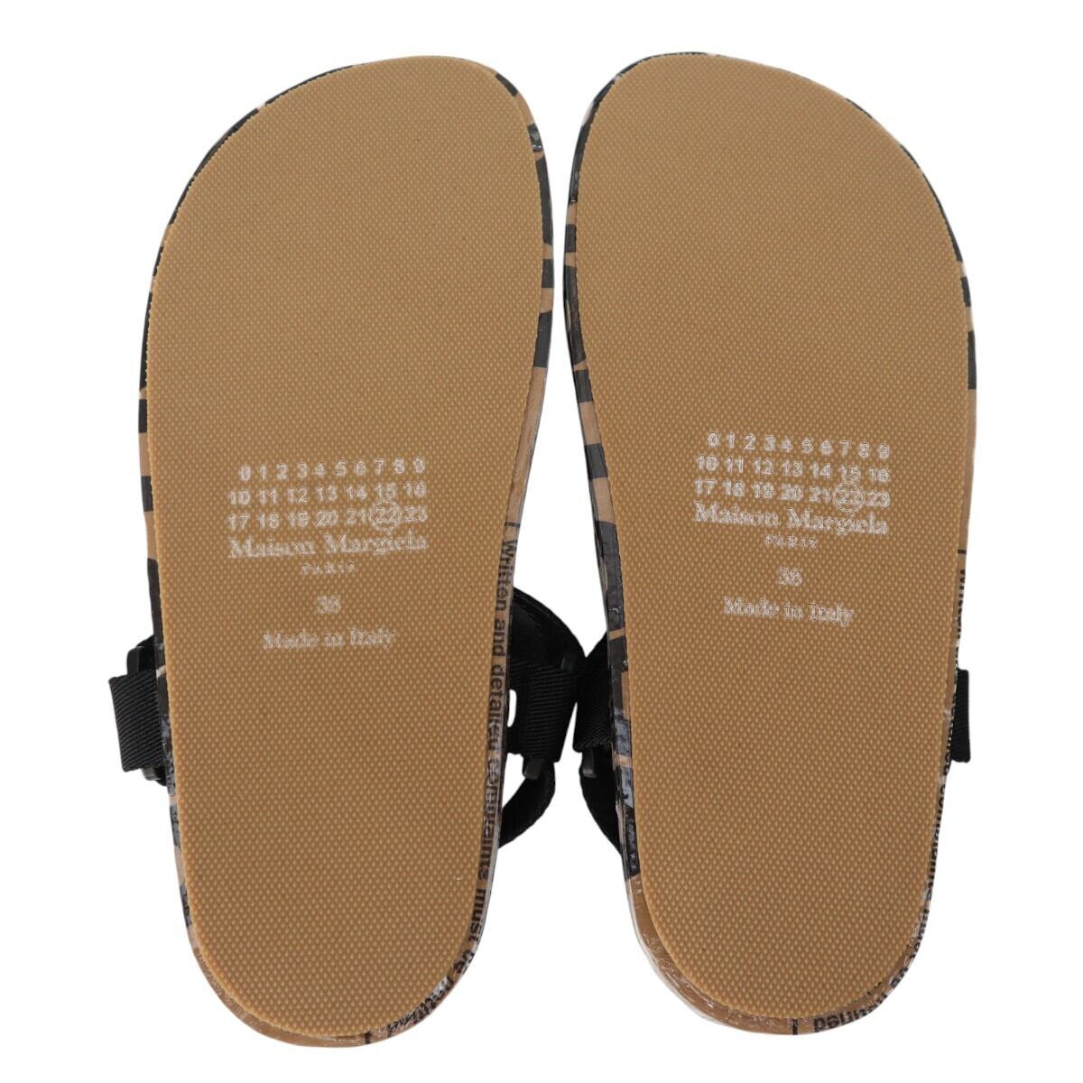 Maison Margiela メゾンマルジェラ レザー/ビニール/キャンバス ストラップ サンダル 38 ベージュ/ブラック S2601-k050