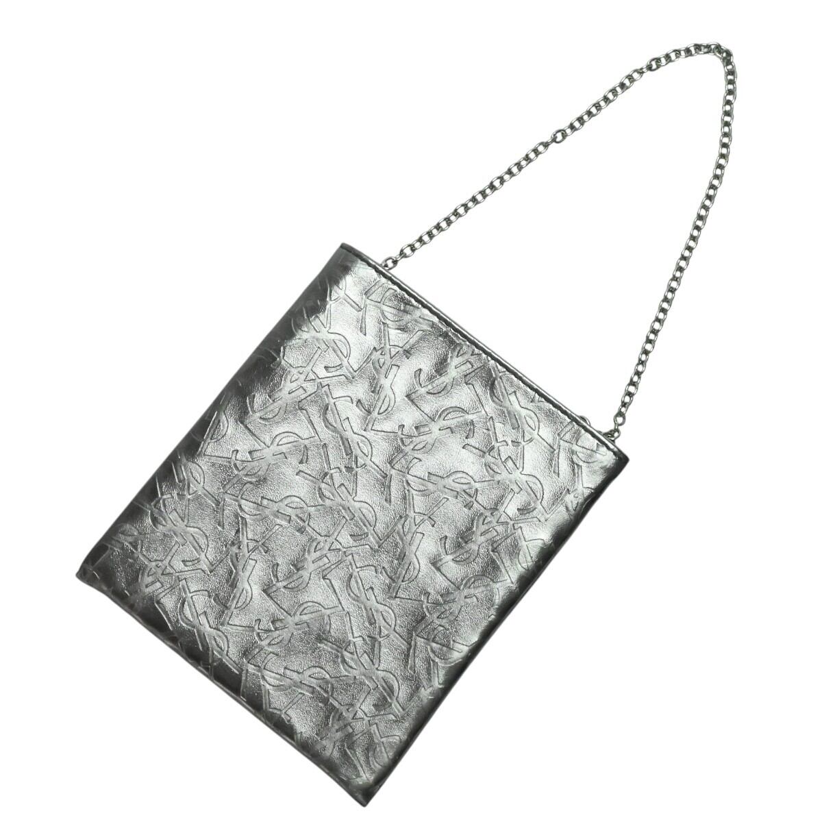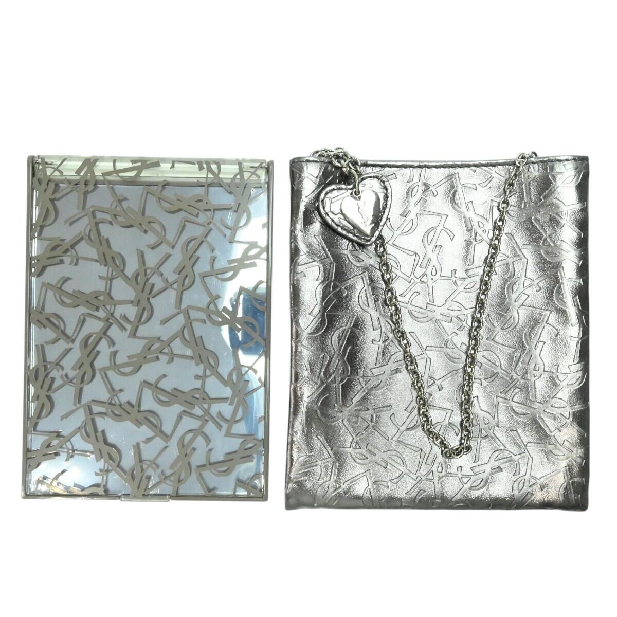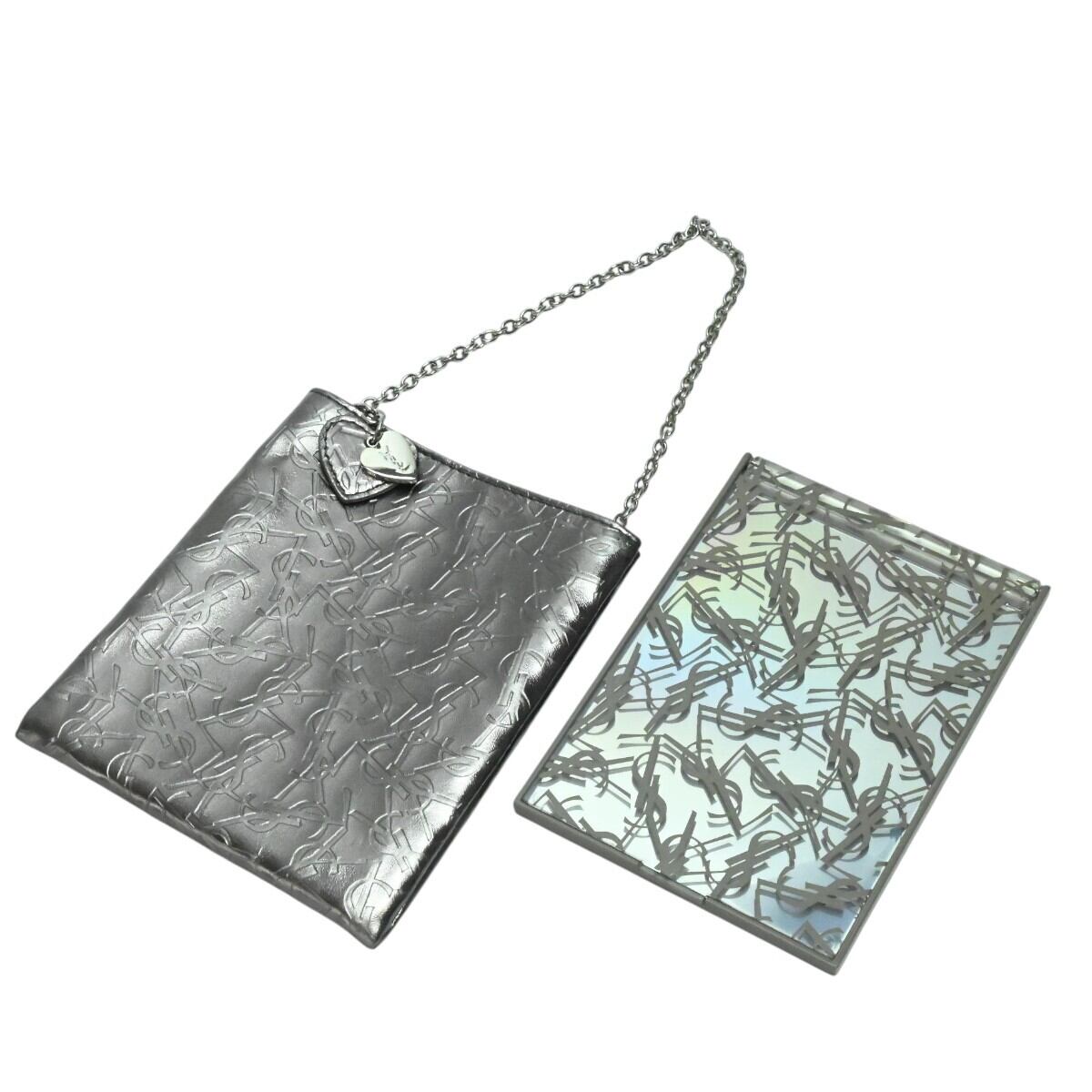 商品名:YVESSAINTLAURENT イヴサンローラン YSLロゴ総柄 ポーチ付き ミラー シルバー/チャ