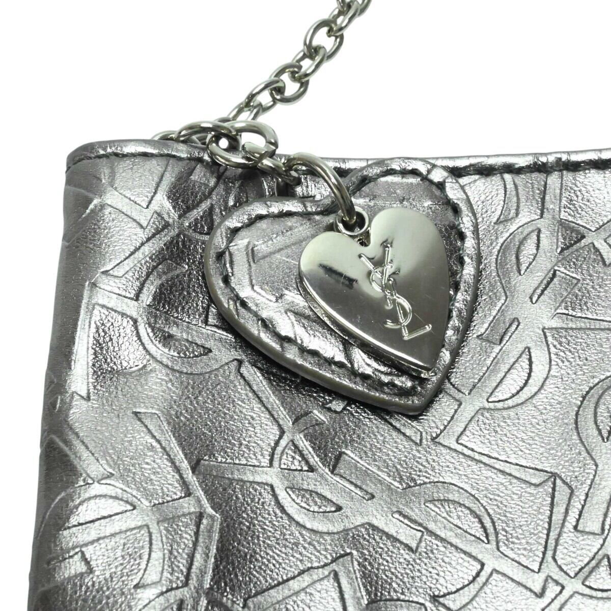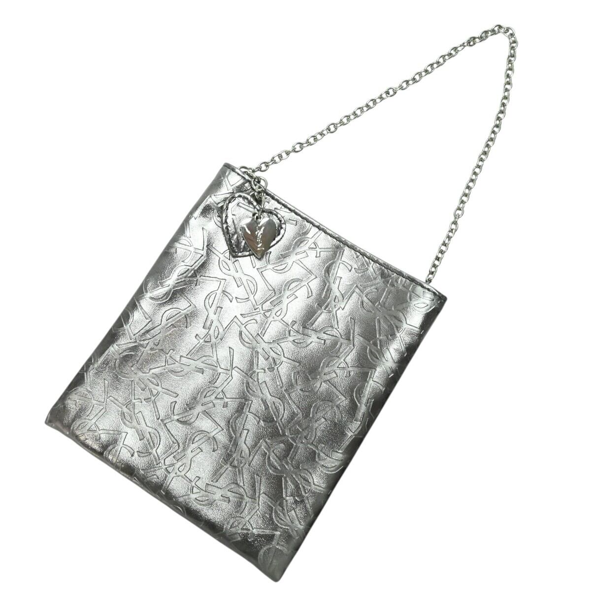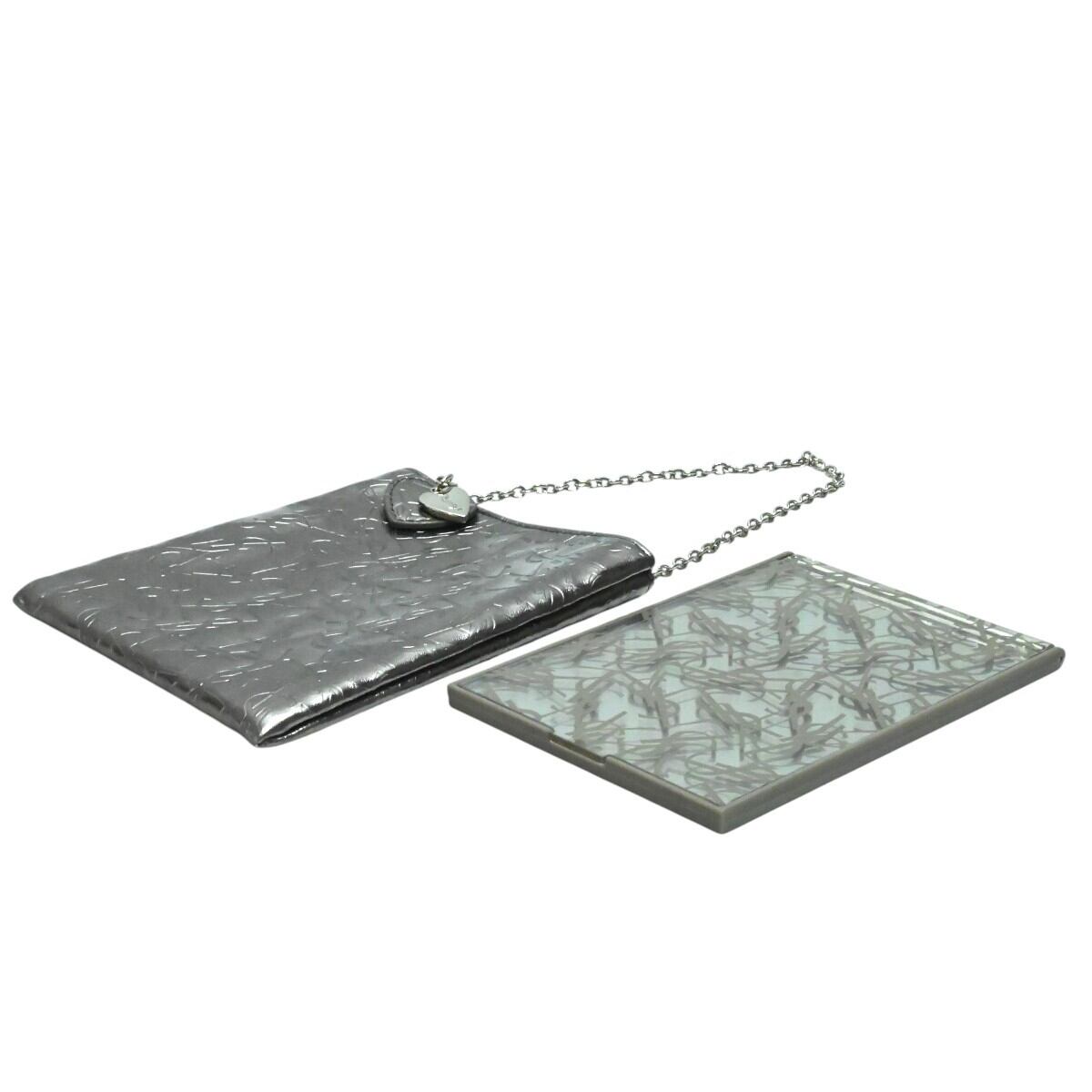 YVESSAINTLAURENT イヴサンローラン YSLロゴ総柄 ポーチ付き ミラー シルバー/チャ K2601-k082NP