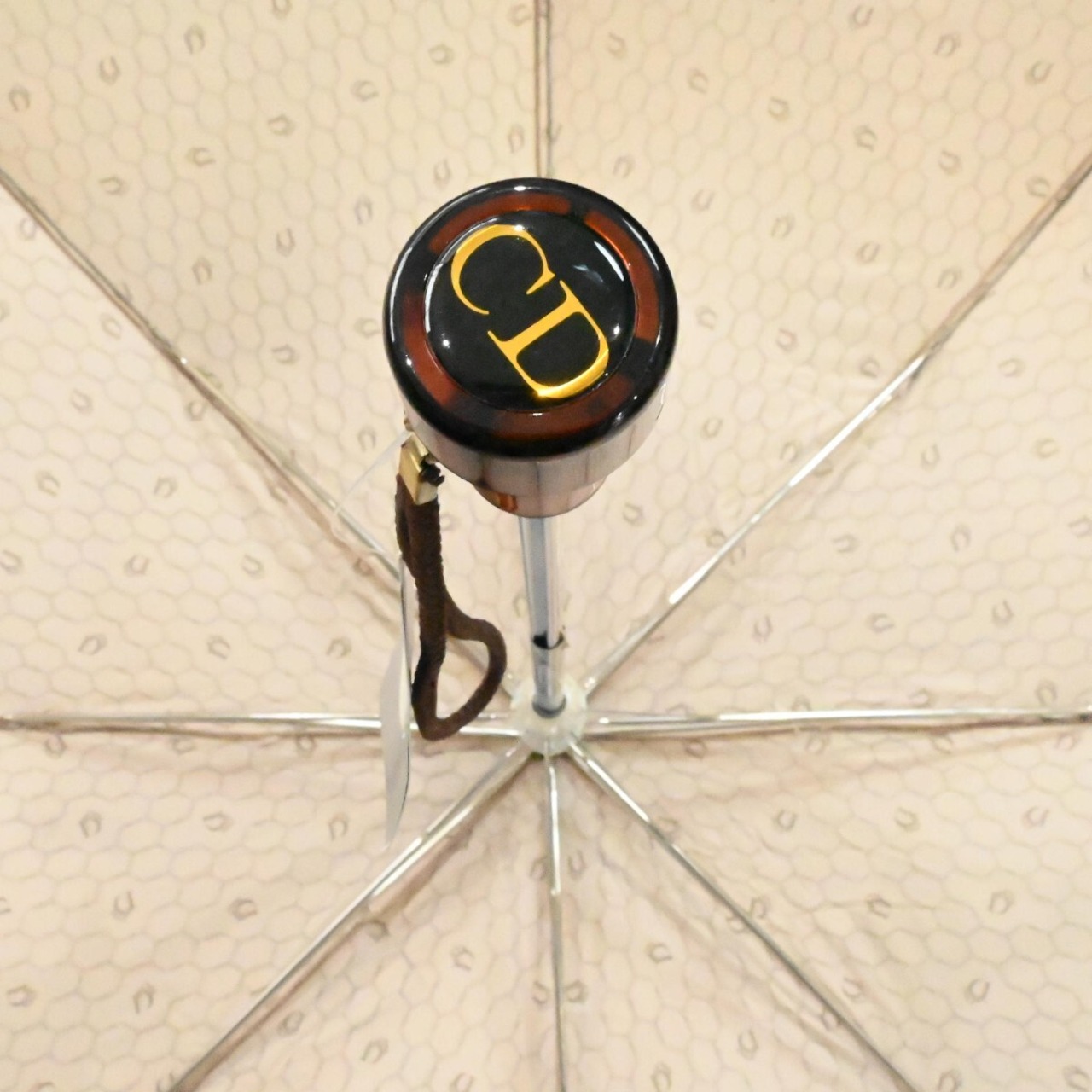 商品名:Christian Dior クリスチャンディオール ハニカム柄 ポリアミド 折りたたみジャンプ傘 雨傘 ベージュ