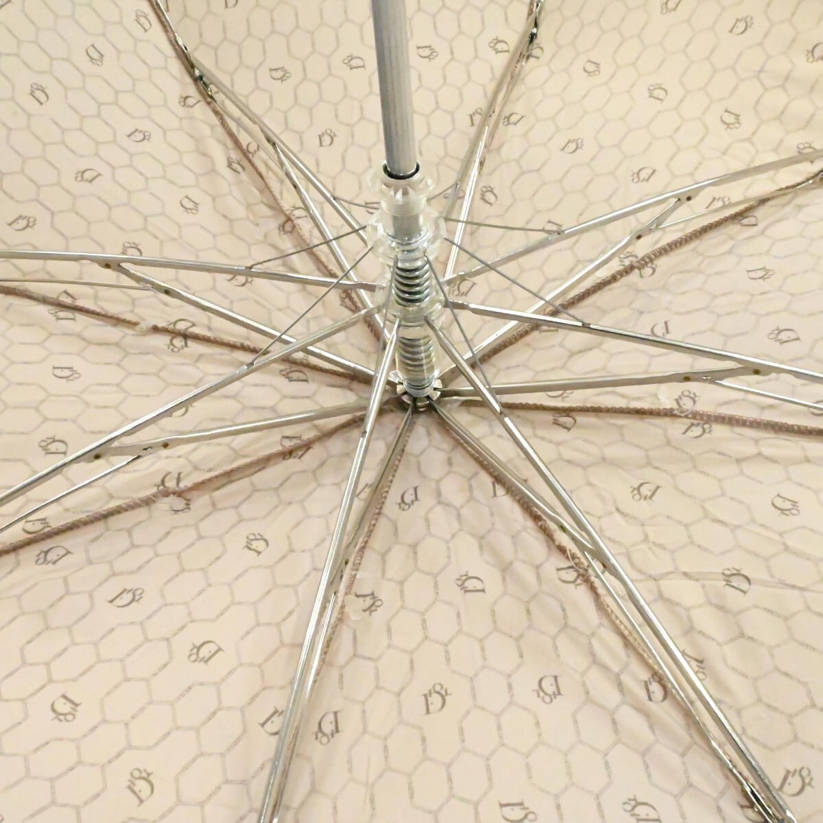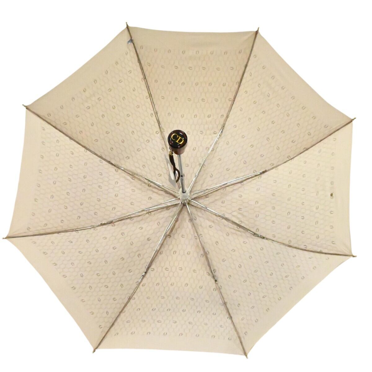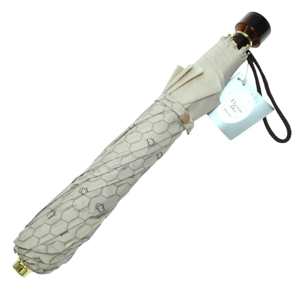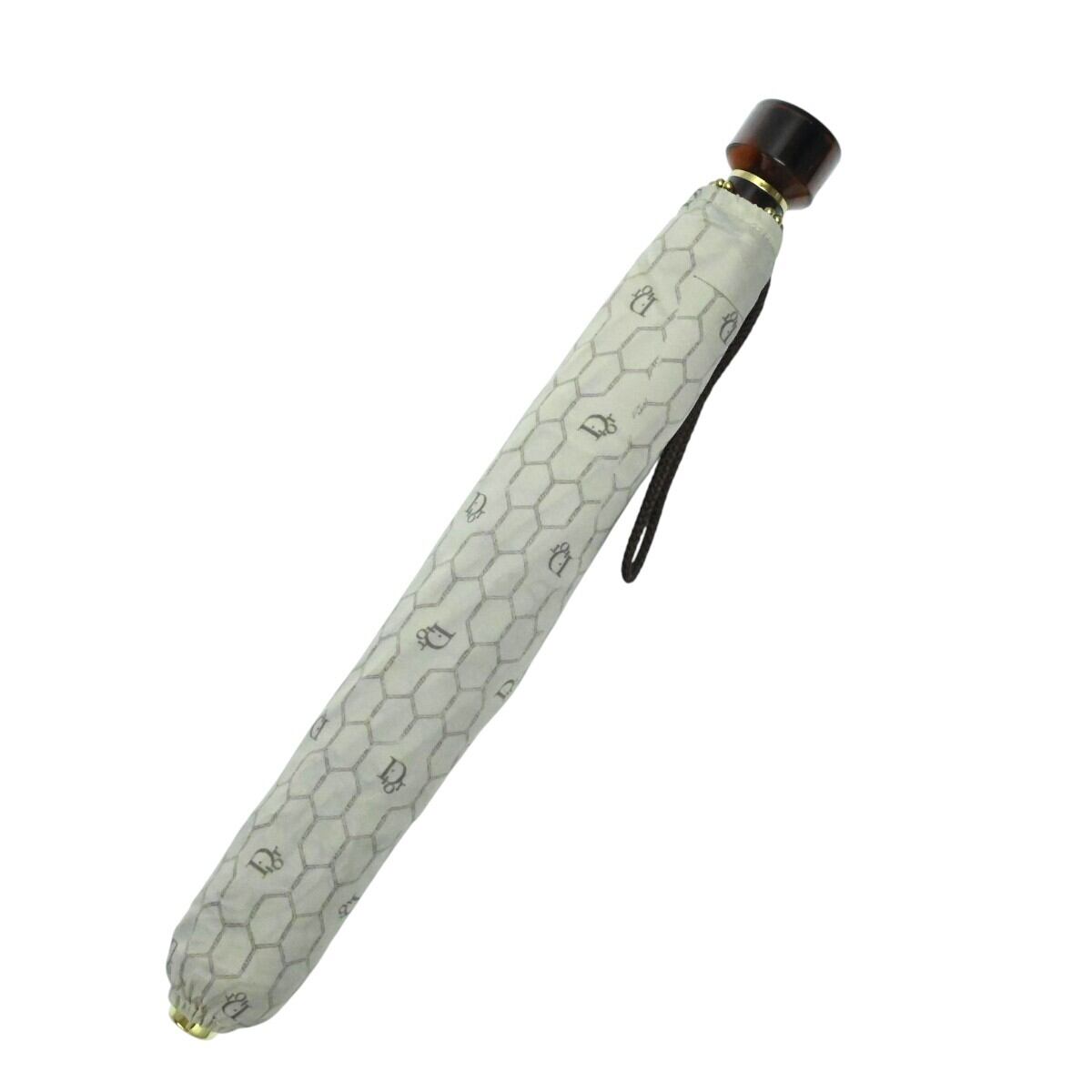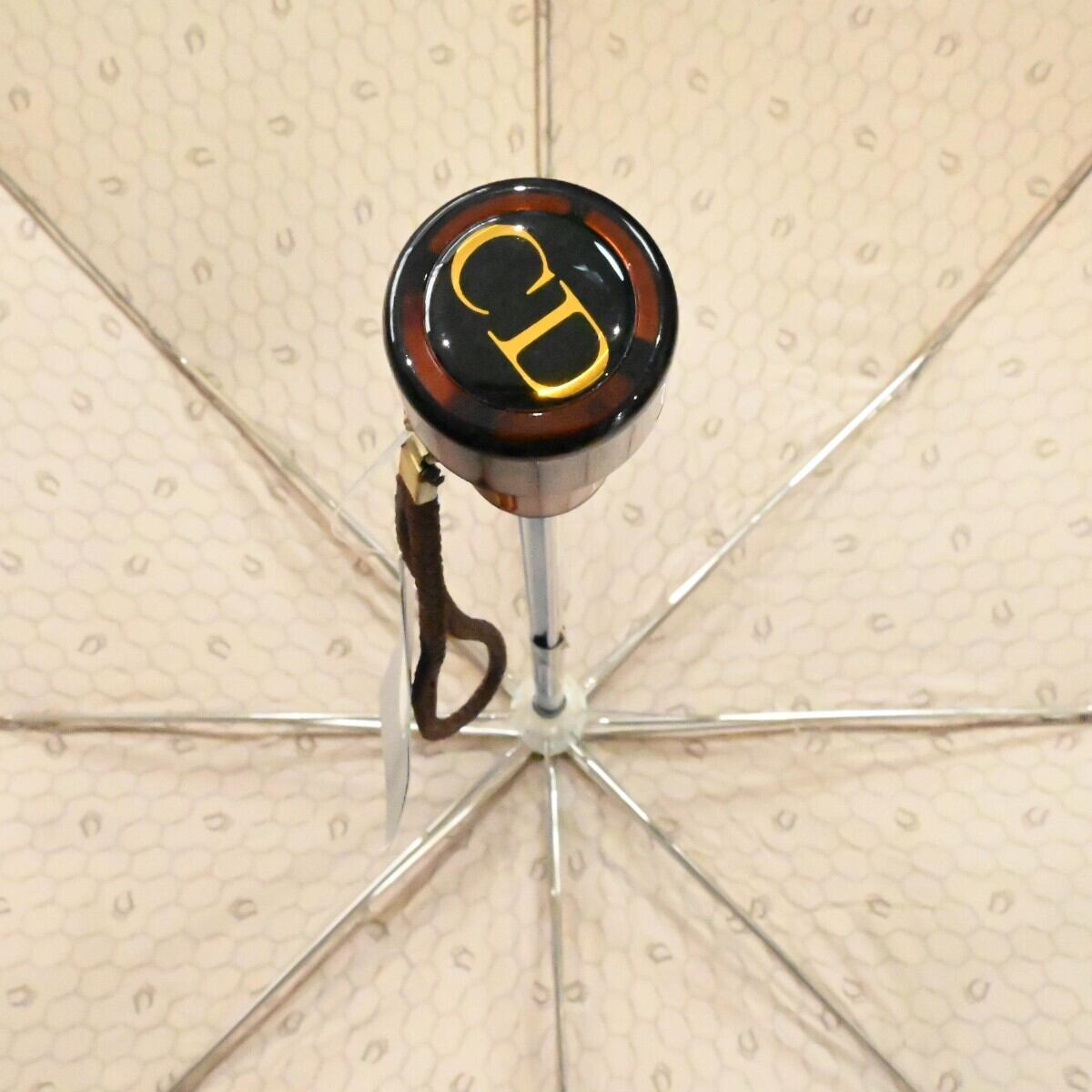 Christian Dior クリスチャンディオール ハニカム柄 ポリアミド 折りたたみジャンプ傘 雨傘 ベージュ K2512-k099