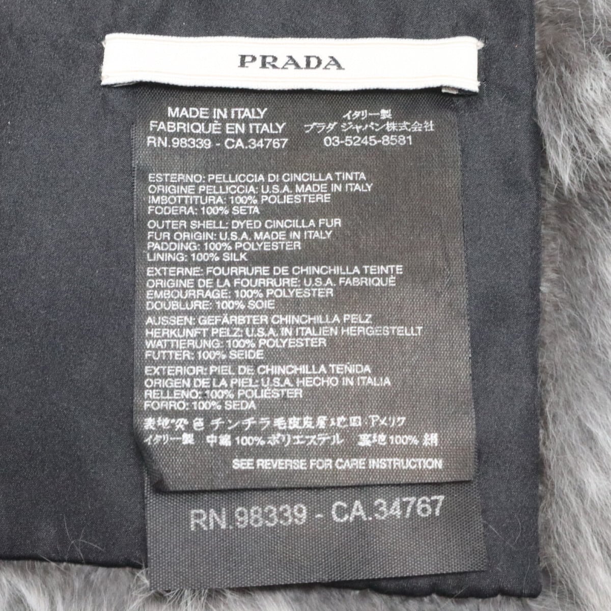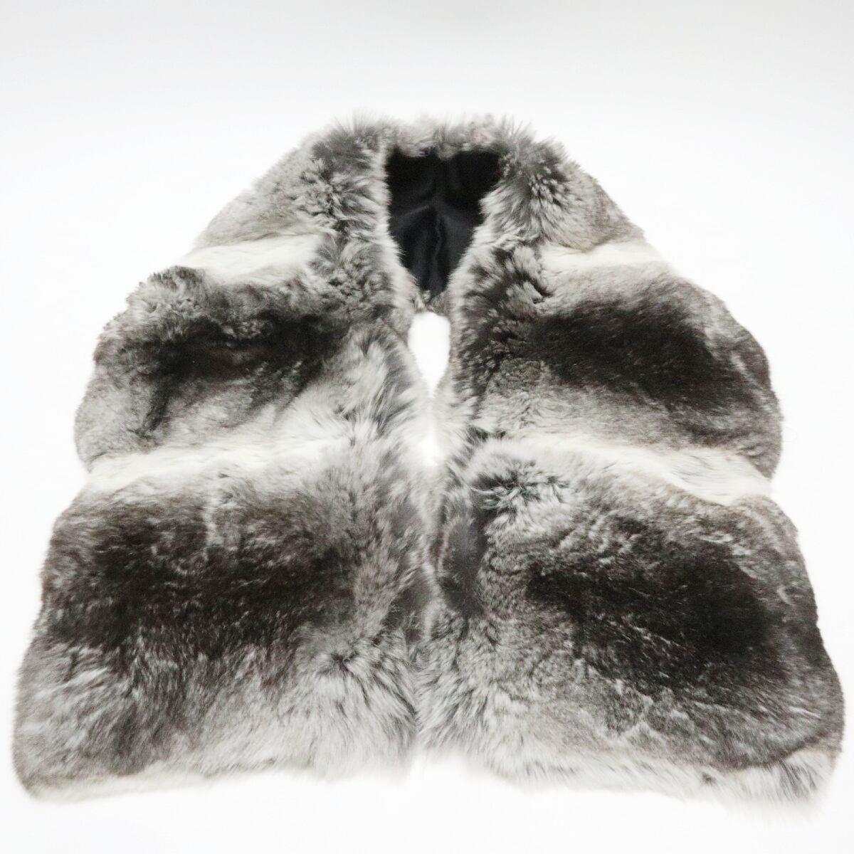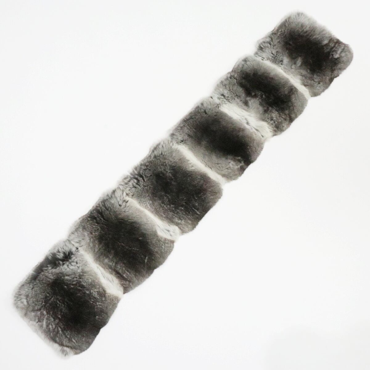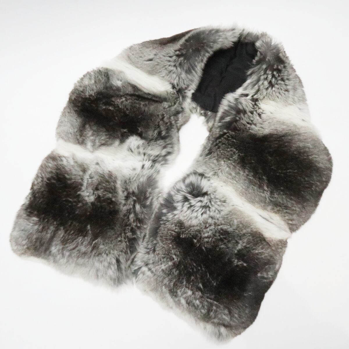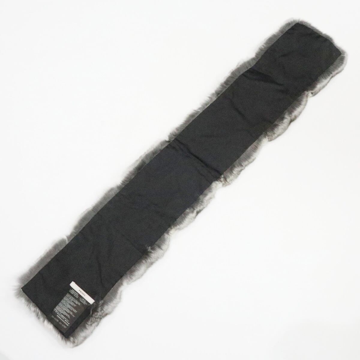 PRADA プラダ ポリエステル/シルク チンチラ毛皮ファー マフラー グレー/ダークブラウン K11-k047