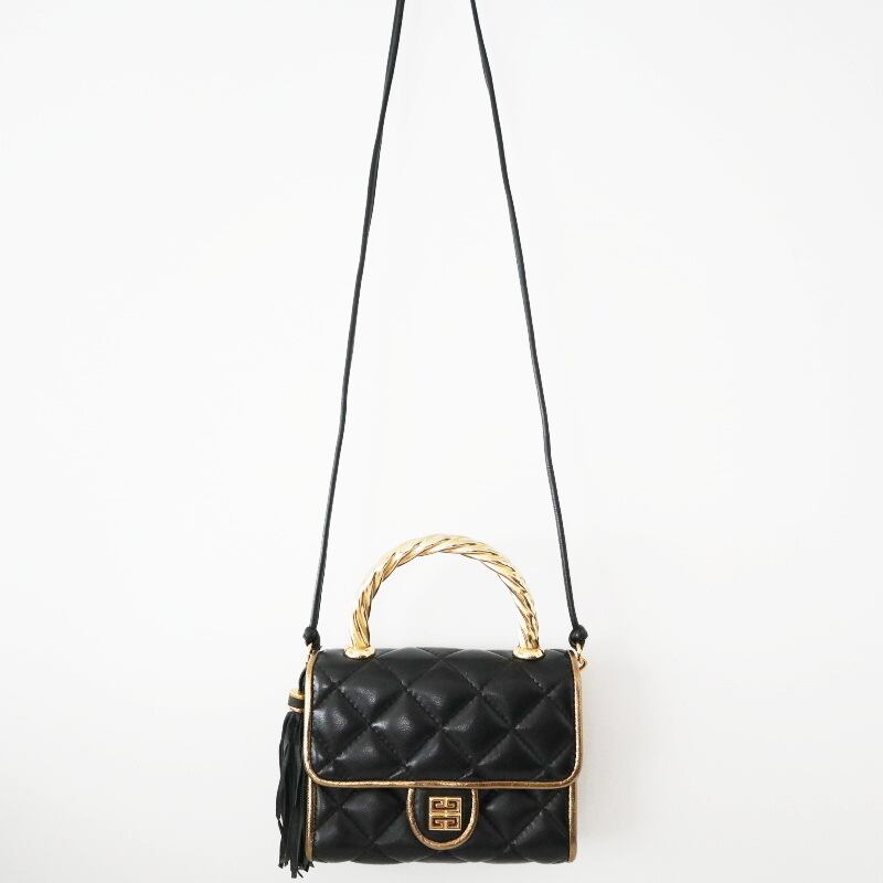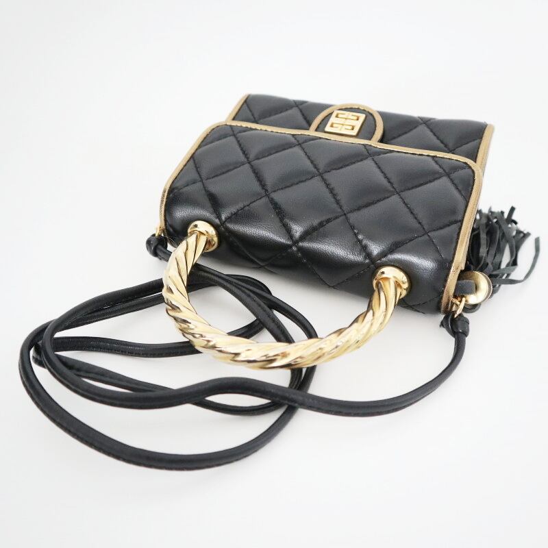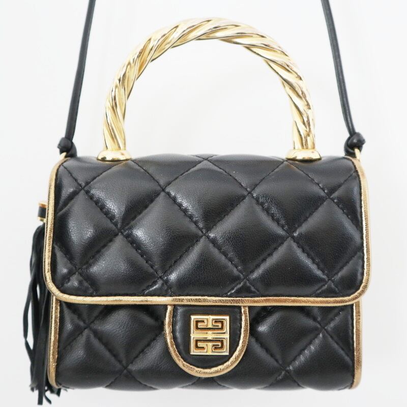 GIVENCHY ジバンシー メタルハンドル キルティング レザ― 2WAY ハンドバッグ ショルダーバッグ ブラック/ゴールド K09-k064