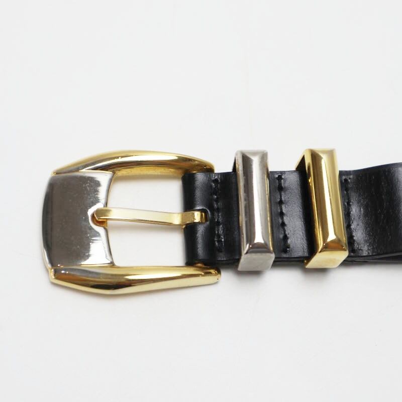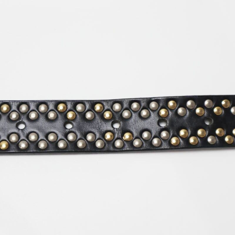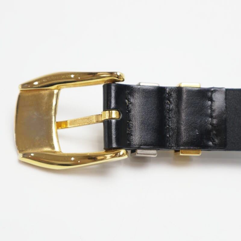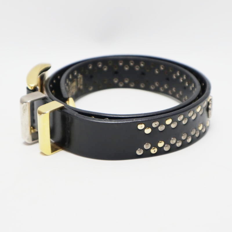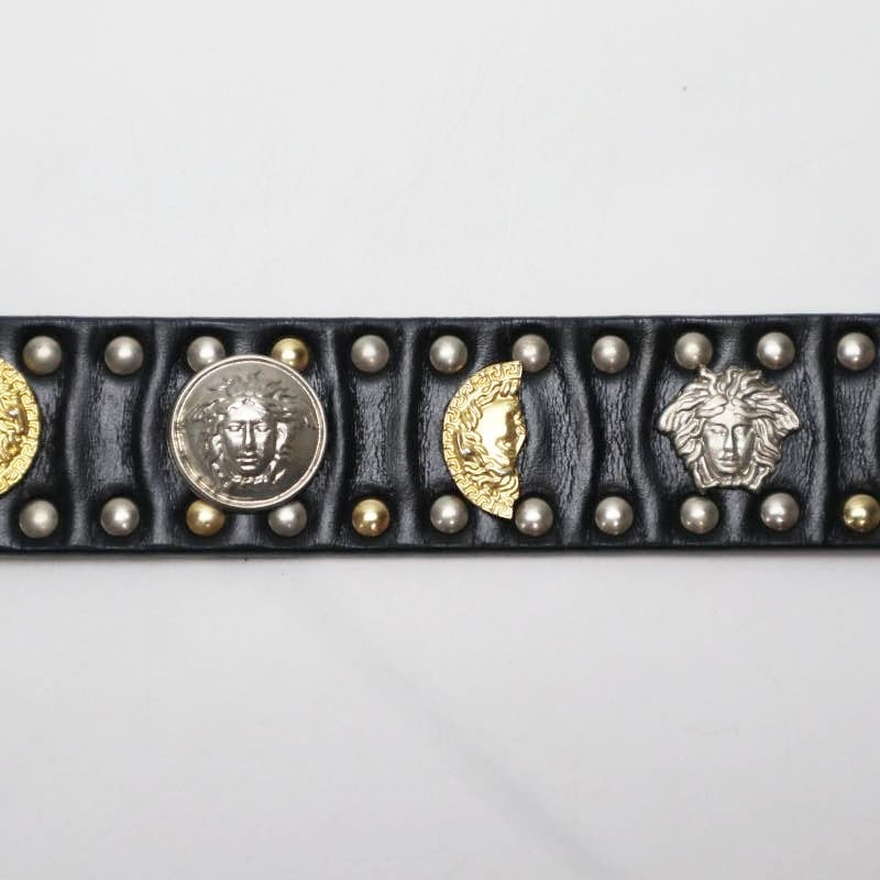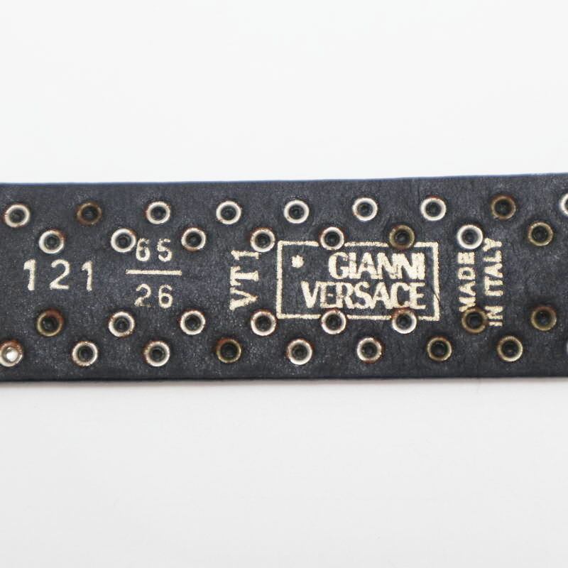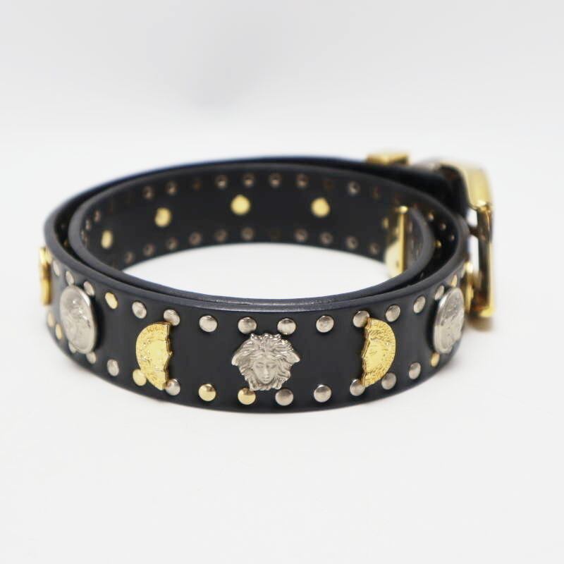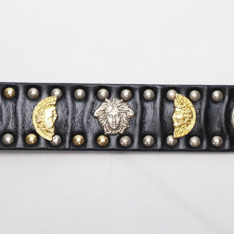 GIANNI VERSACE ジャンニヴェルサーチ メデューサスタッズ レザ― レディース ベルト 65/25 ブラック/ゴールドxシルバー M08-k129