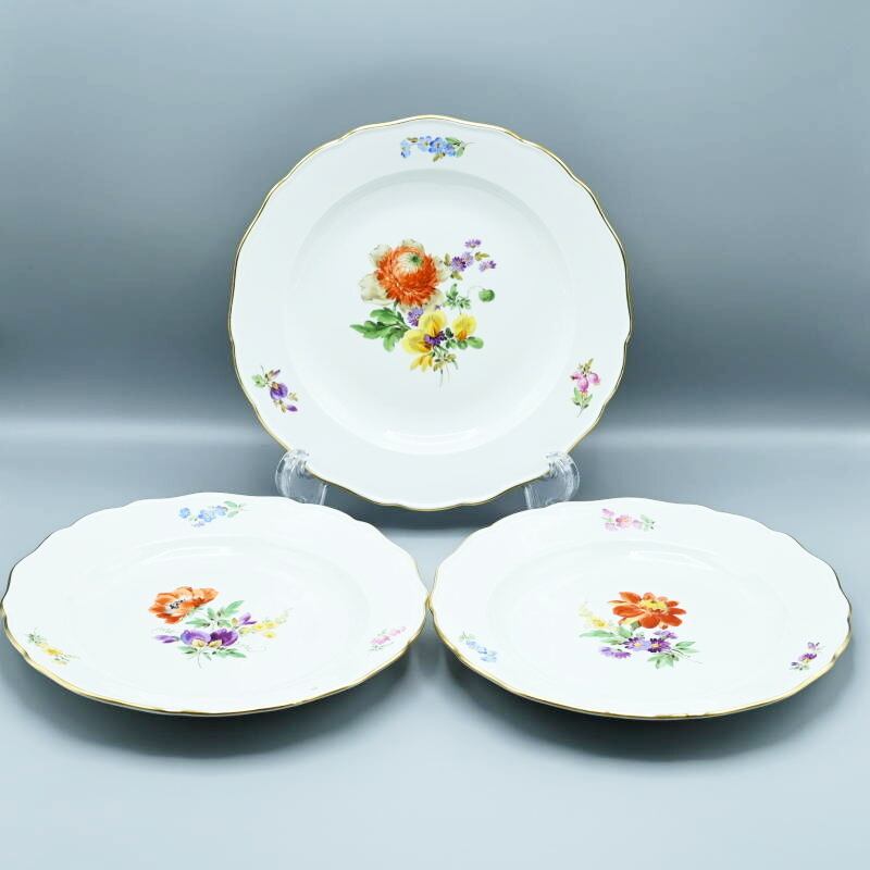 Meissen マイセン ベーシックフラワー 三つ花 ディナープレート 約25.5cm 3枚まとめ ケシ/キンポウゲ/マリーゴールド 金彩 一級品 M02-t041