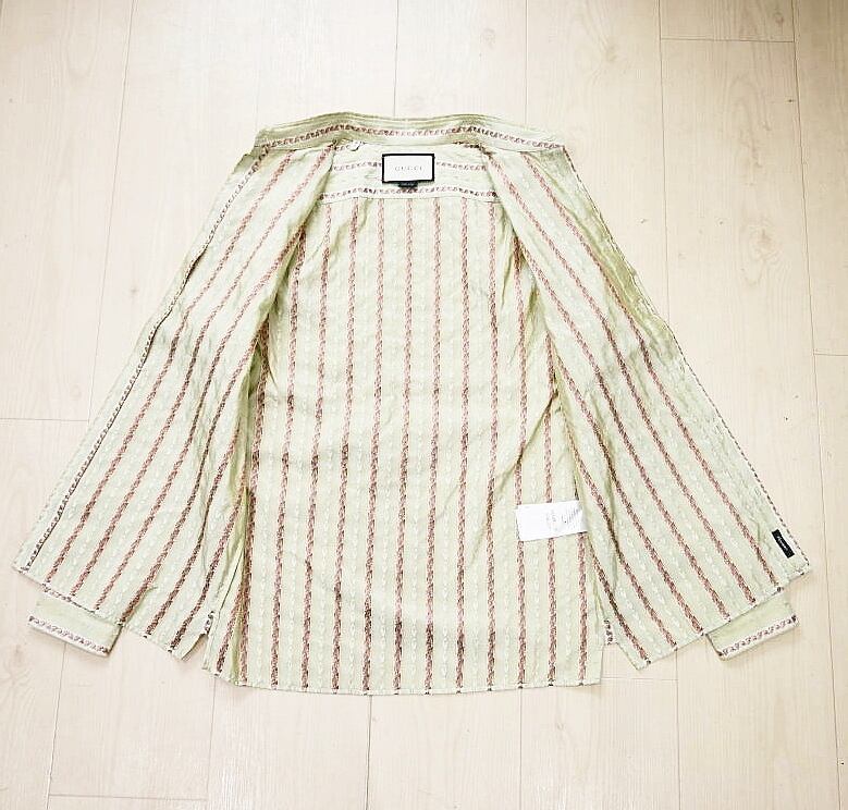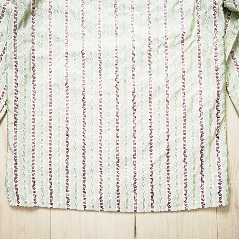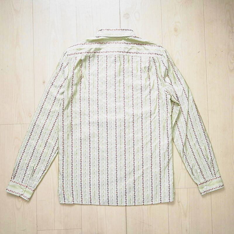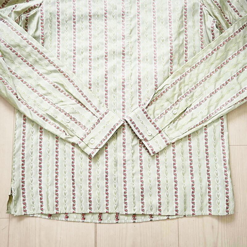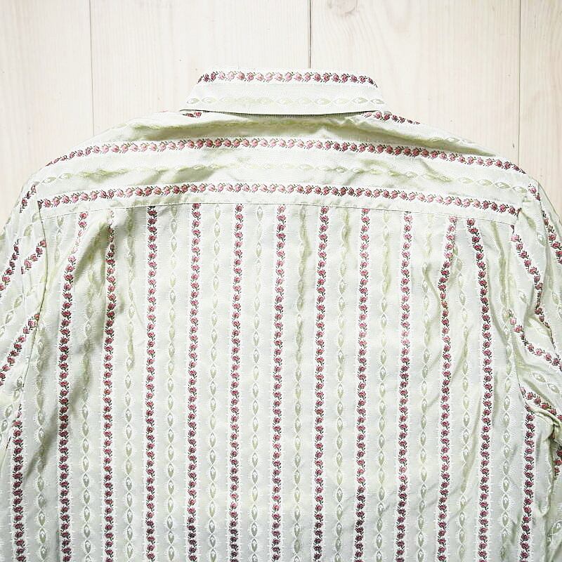 GUCCI グッチ フラワー刺繍総柄 シルク 長袖シャツ 38/15 カーキ T07-k164