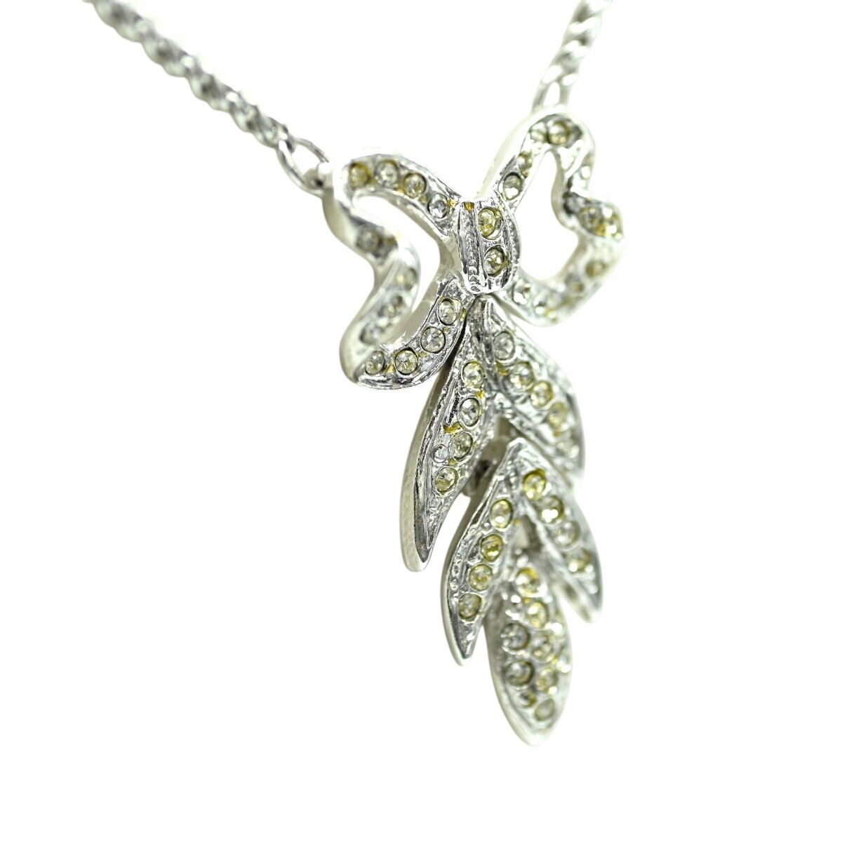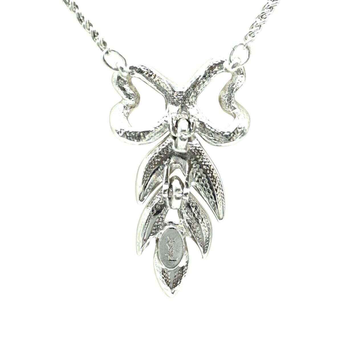 商品名:美品 YVESSAINTLAURENT イヴサンローラン ヴィンテージ リボンモチーフ ラインストーン GP ネックレス シルバー