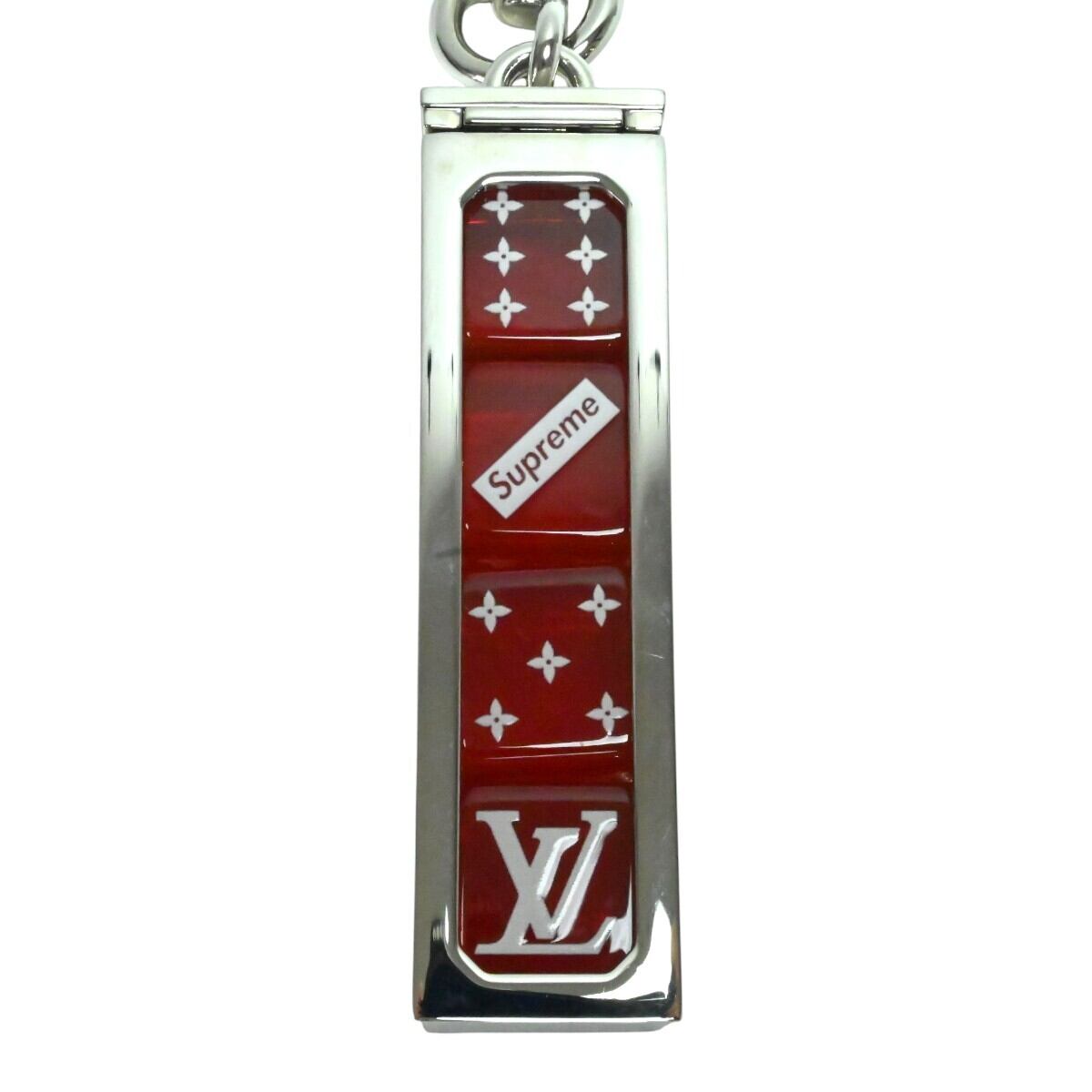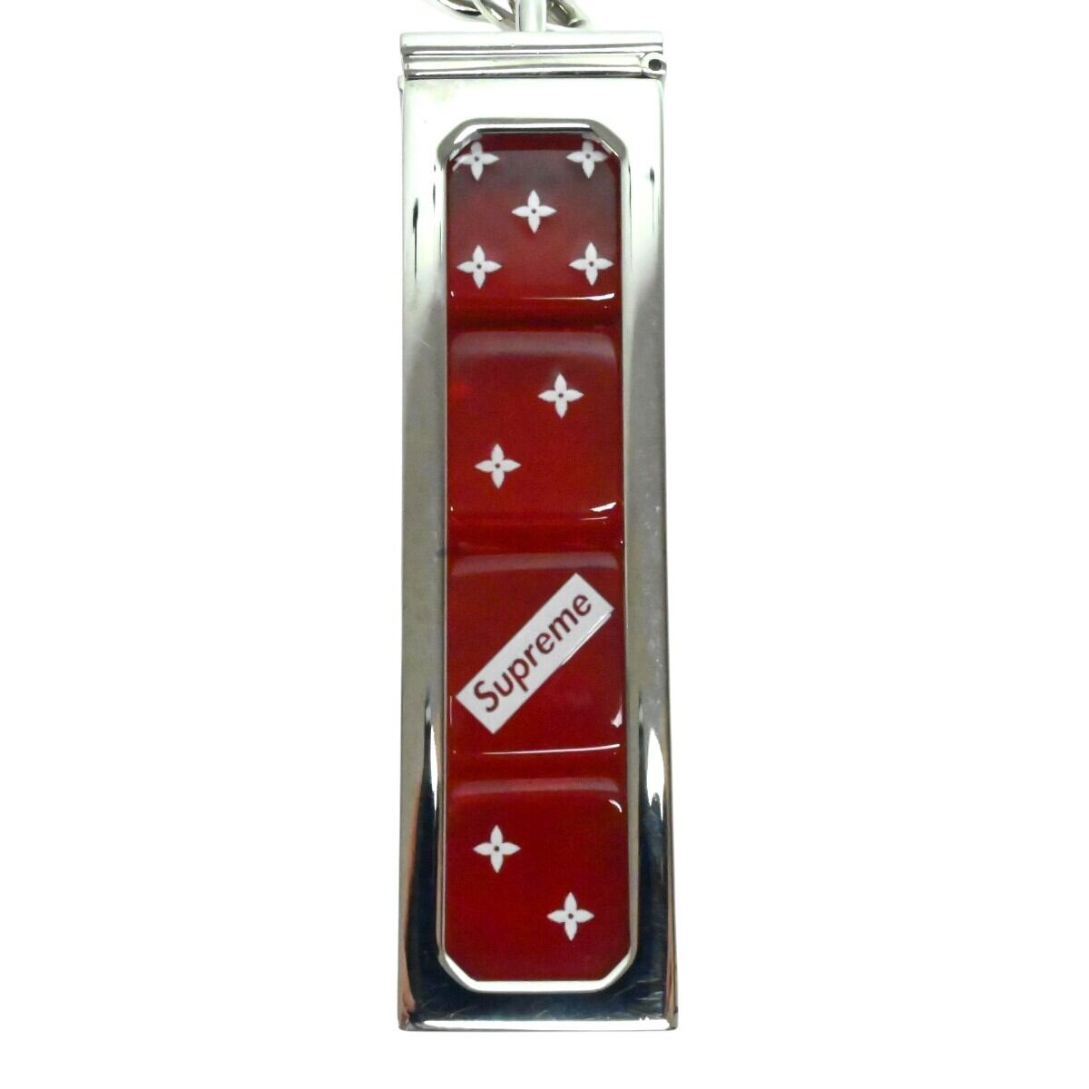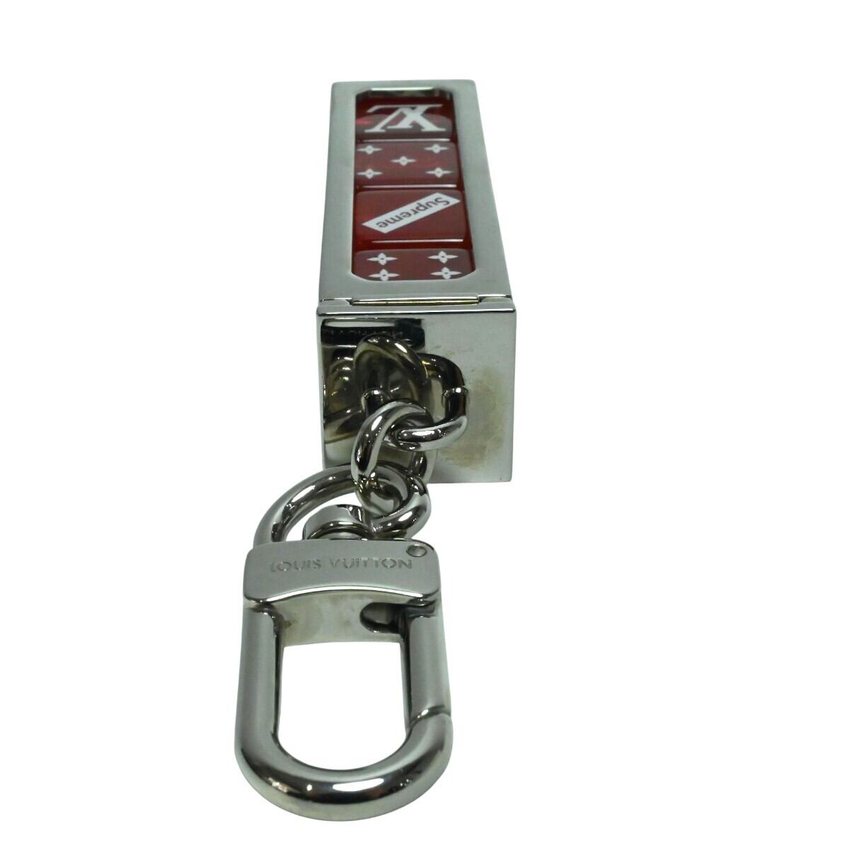 LOUIS VUITTONxSupreme ルイヴィトンxシュプリーム ダイス メタル/プラスチック ロゴ キーホルダー MP2073 シルバー/レッド M2602-k022