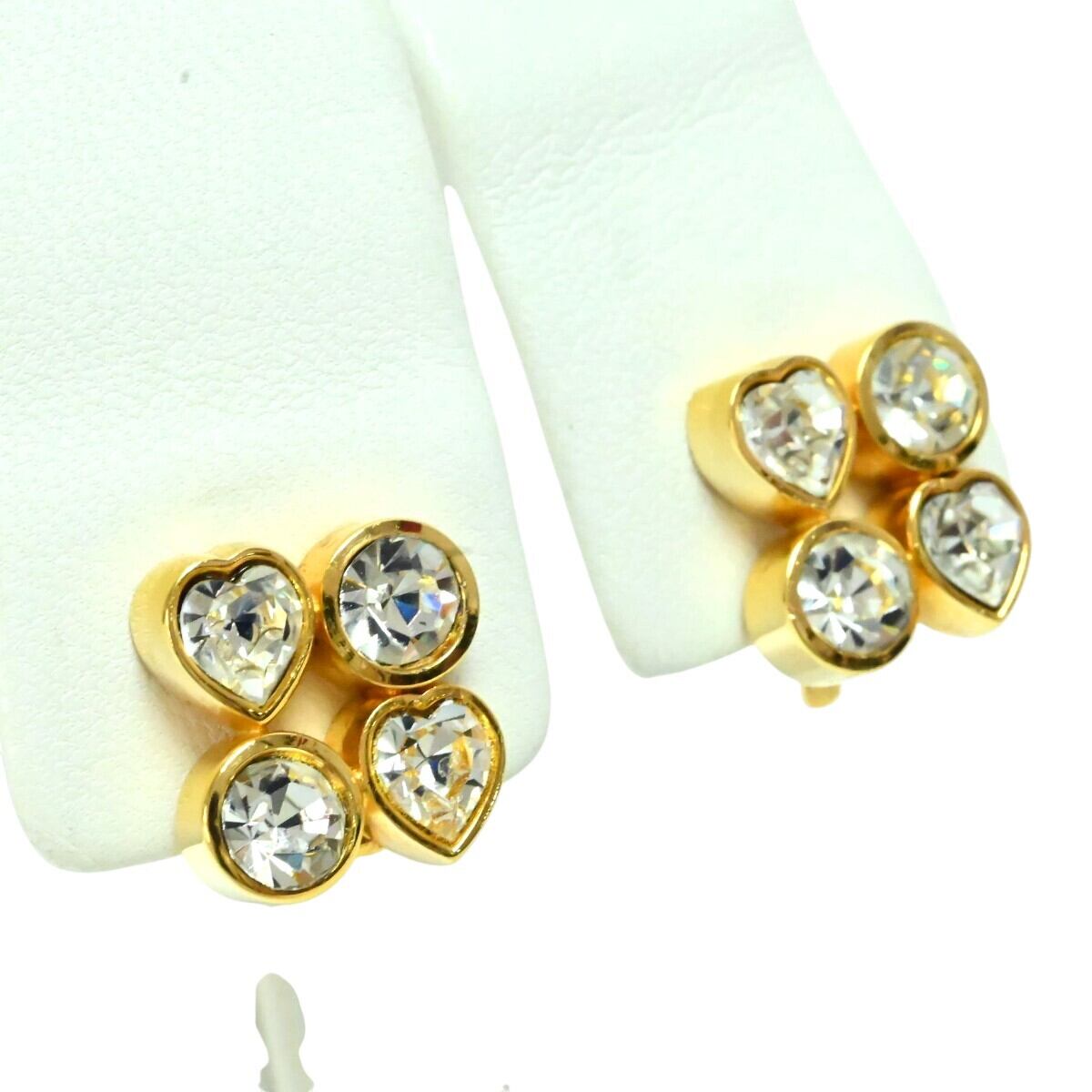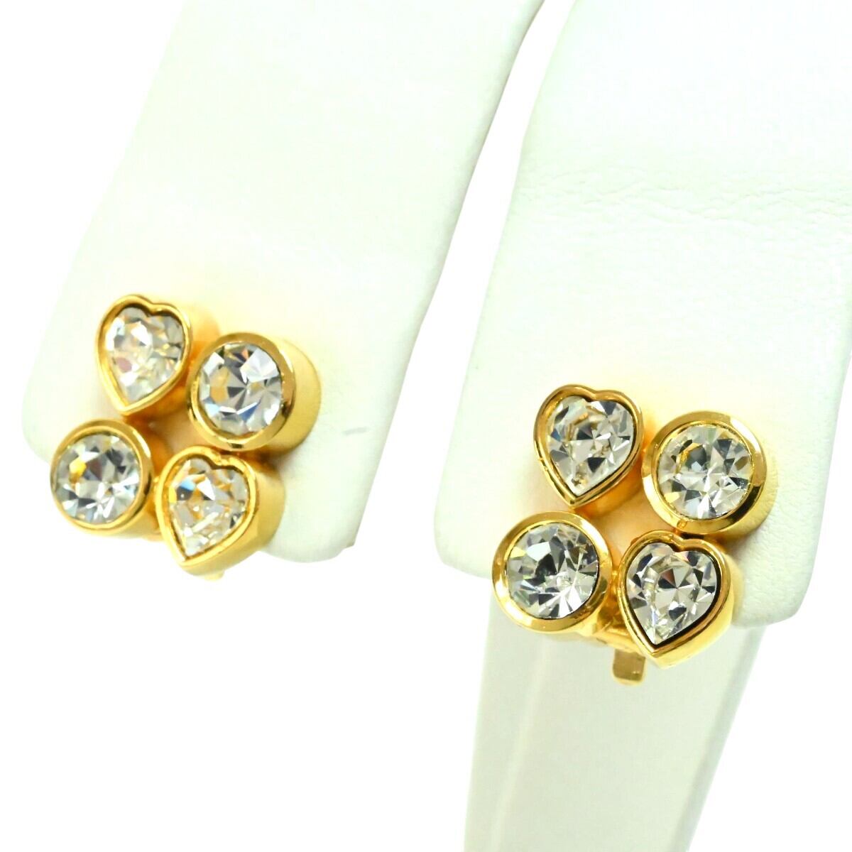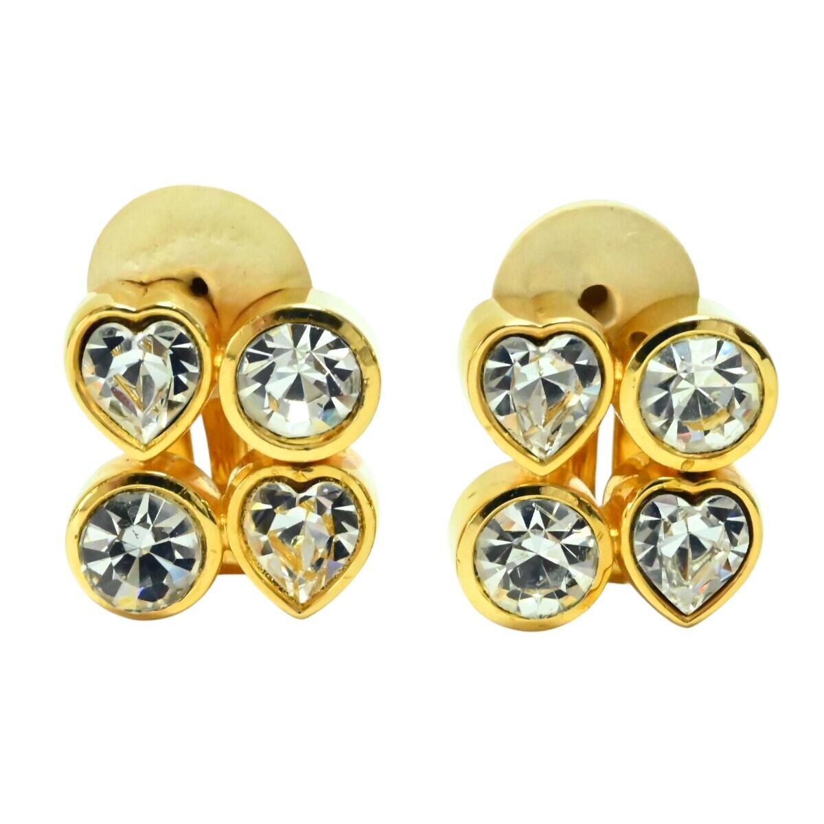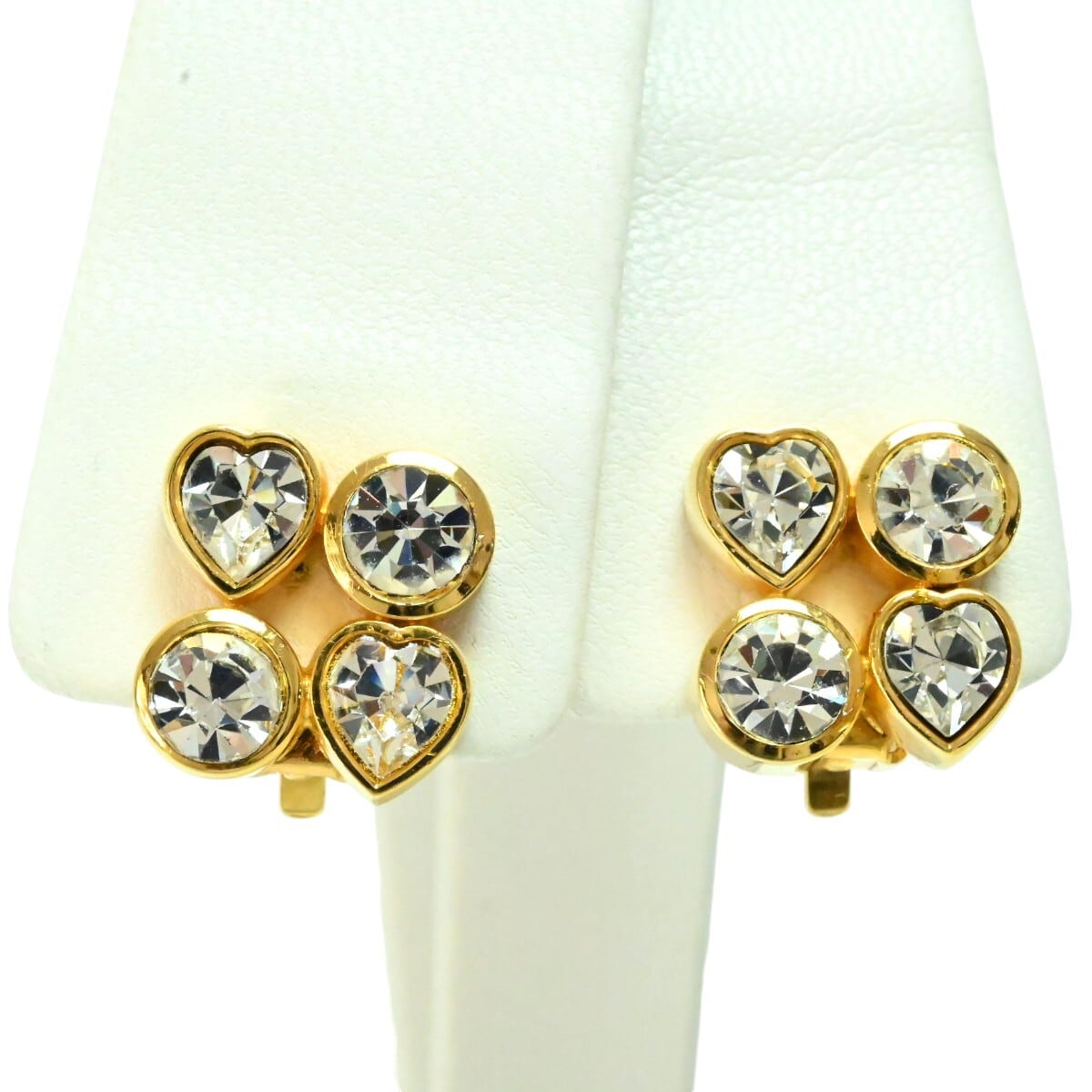 美品 YVESSAINTLAURENT イヴサンローラン ヴィンテージ ハート/ラウンド ラインストーン GP イヤリング ゴールド K2602-k024NP