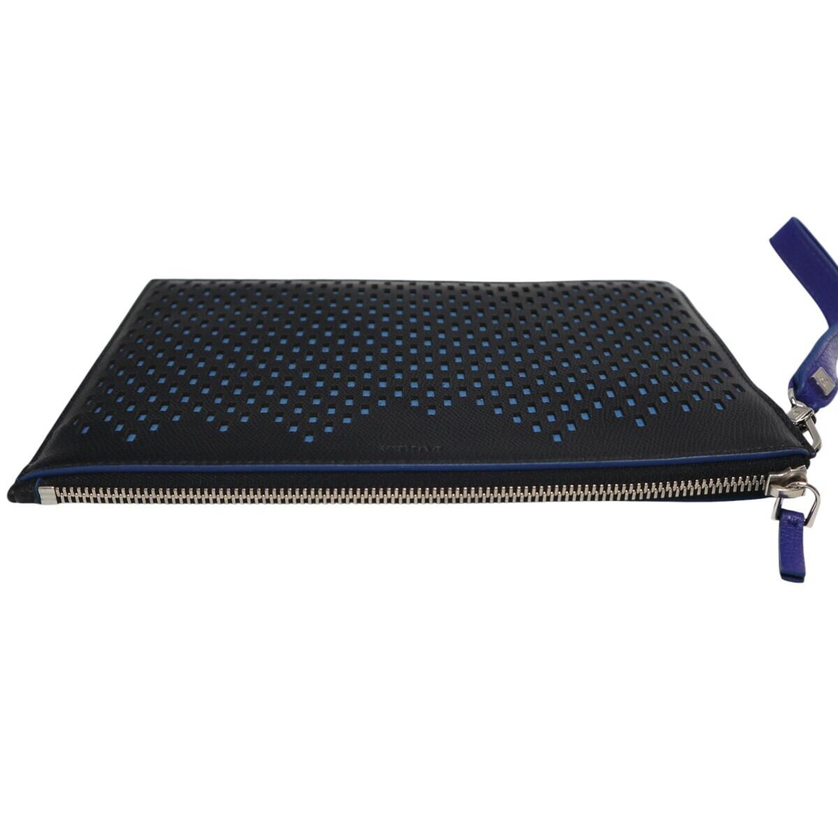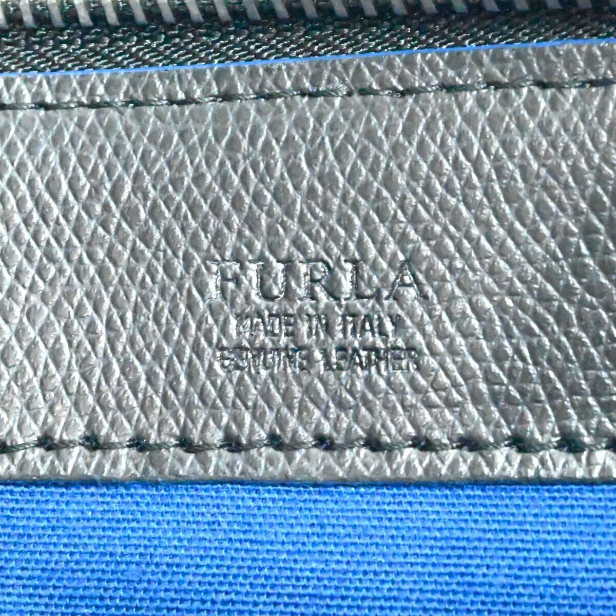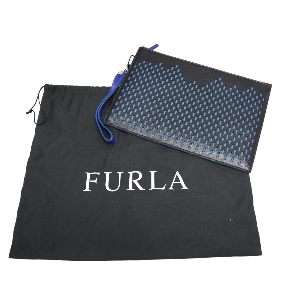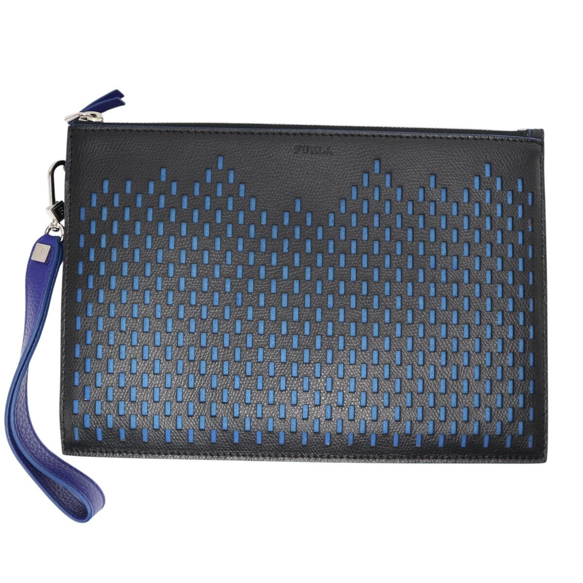 FURLA フルラ ストラップ付き パンチング レザ― クラッチバッグ セカンドバッグ ブラック/ブルー M2602-k021