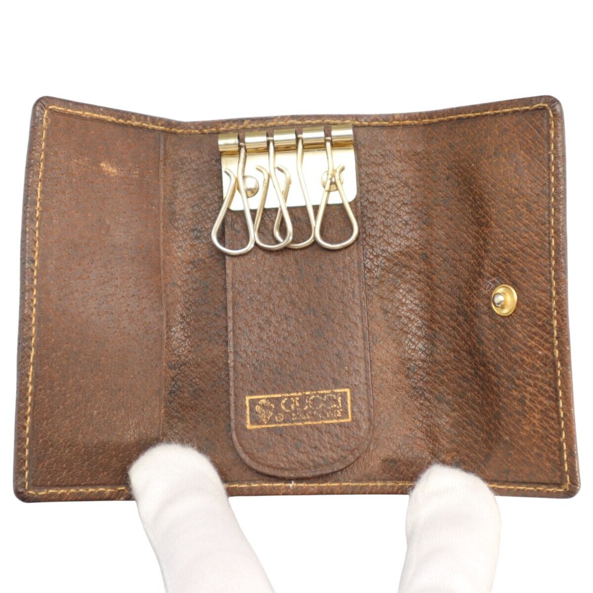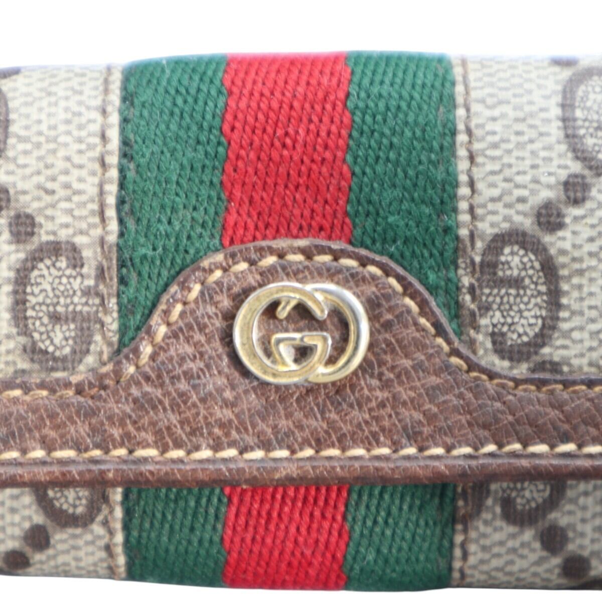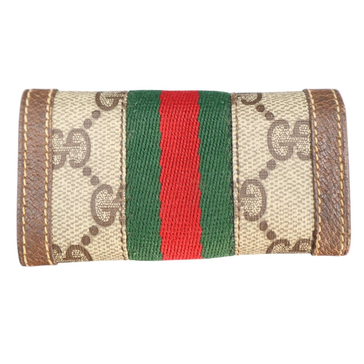 GUCCI オールドグッチ GGスプリーム シェリーライン PVC/レザー 4連キーケース ベージュ/グリーン/レッド S2602-k048NP