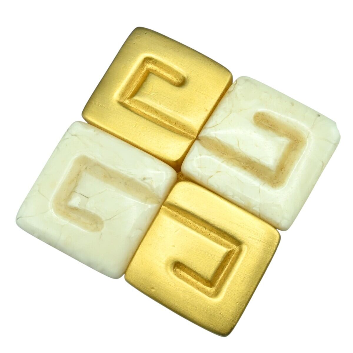 GIVENCHY ジバンシー ロゴ スクエア GP/マーブルルーサイト ブローチ ゴールド/ベージュ K2602-k027NP