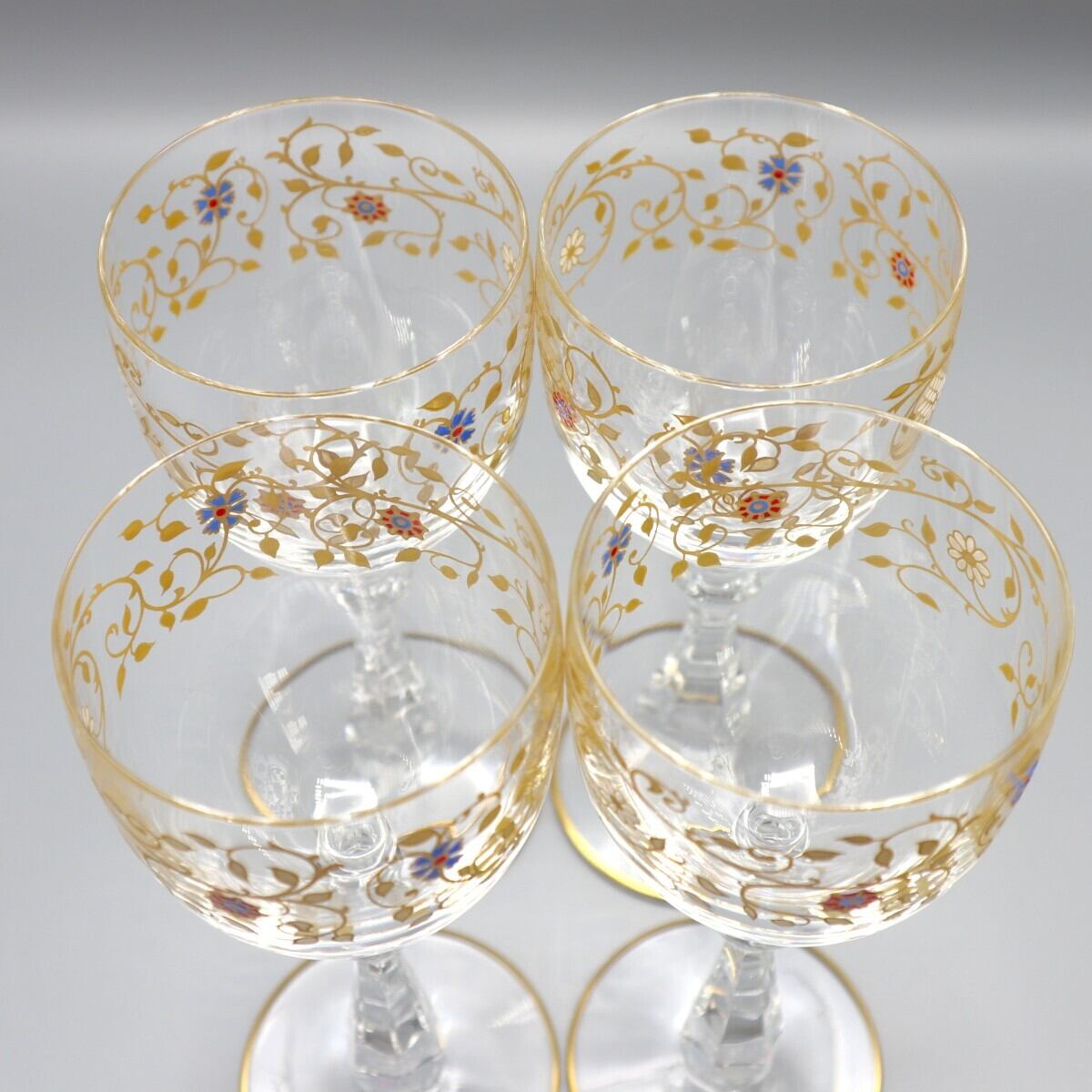 商品名:希少/美品 Baccarat オールドバカラ 草花文ワイングラス 4客セット 金彩 エナメル彩 約20.5cm