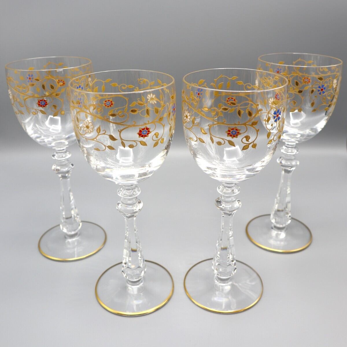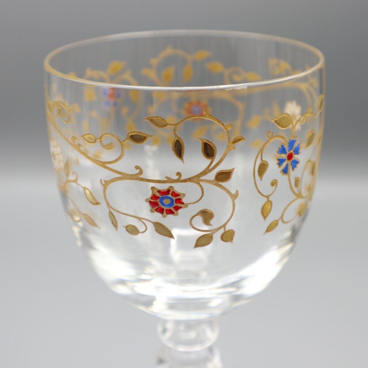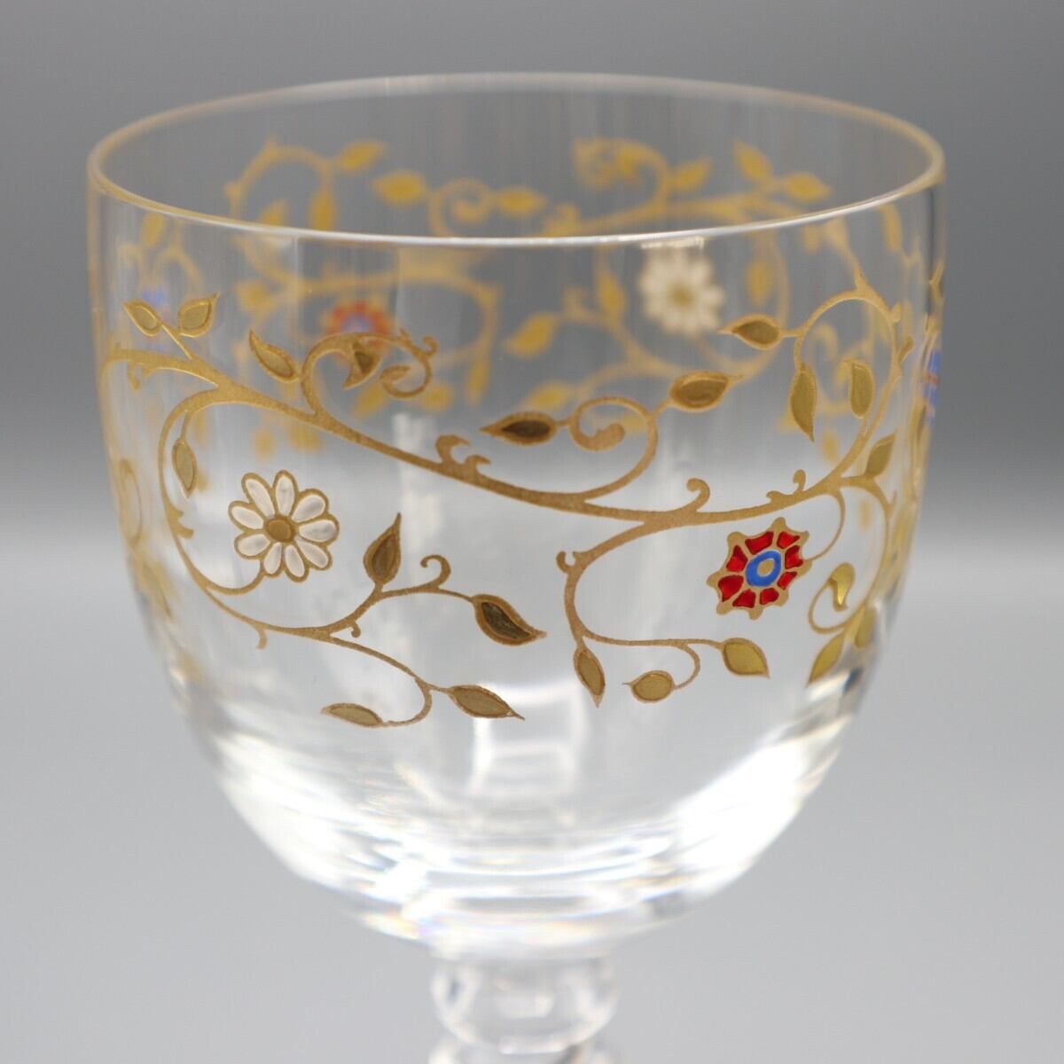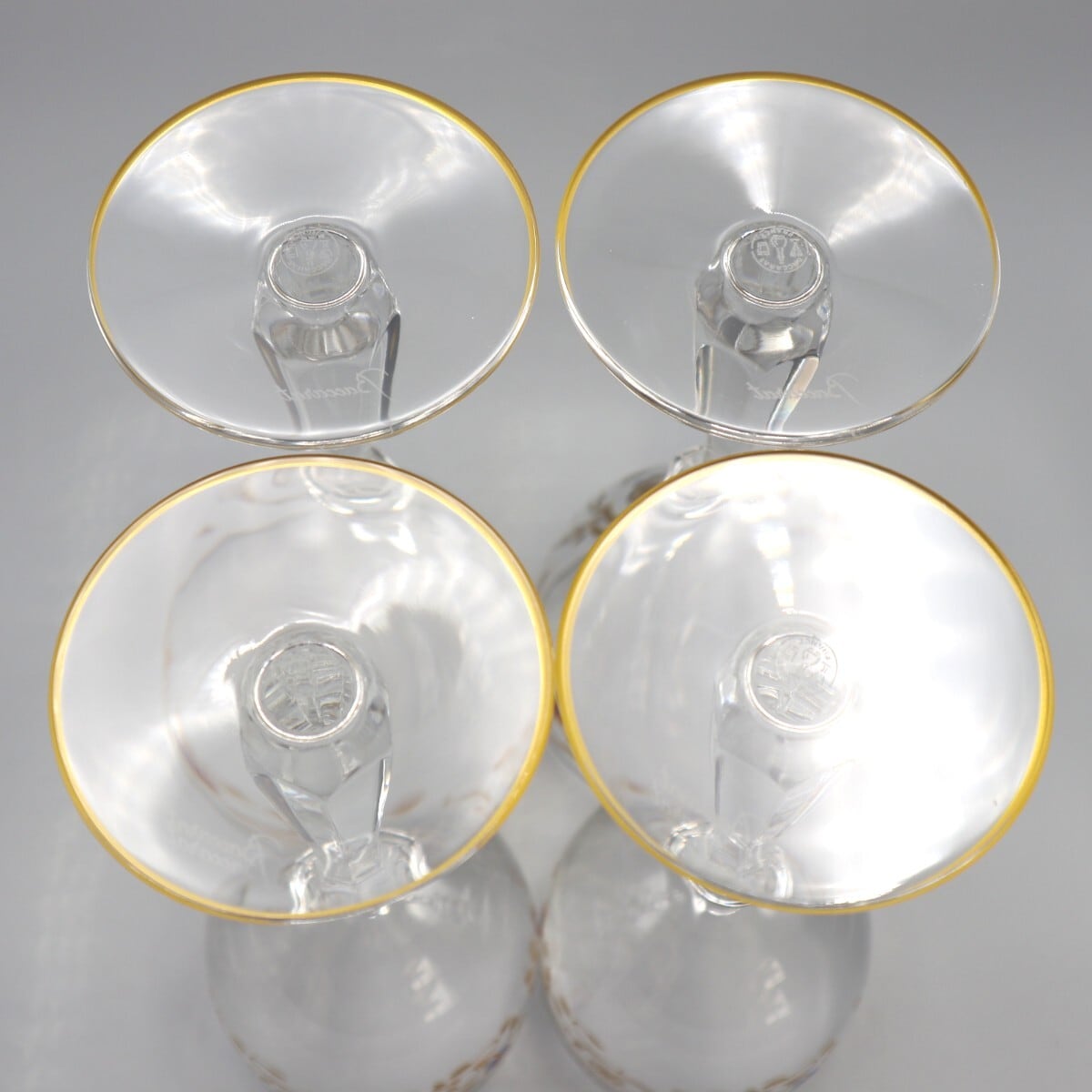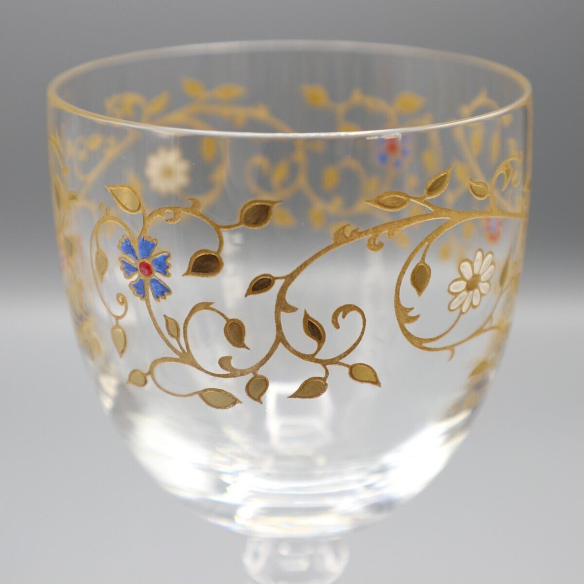 希少/美品 Baccarat オールドバカラ 草花文ワイングラス 4客セット 金彩 エナメル彩 約20.5cm S2602-t021SG