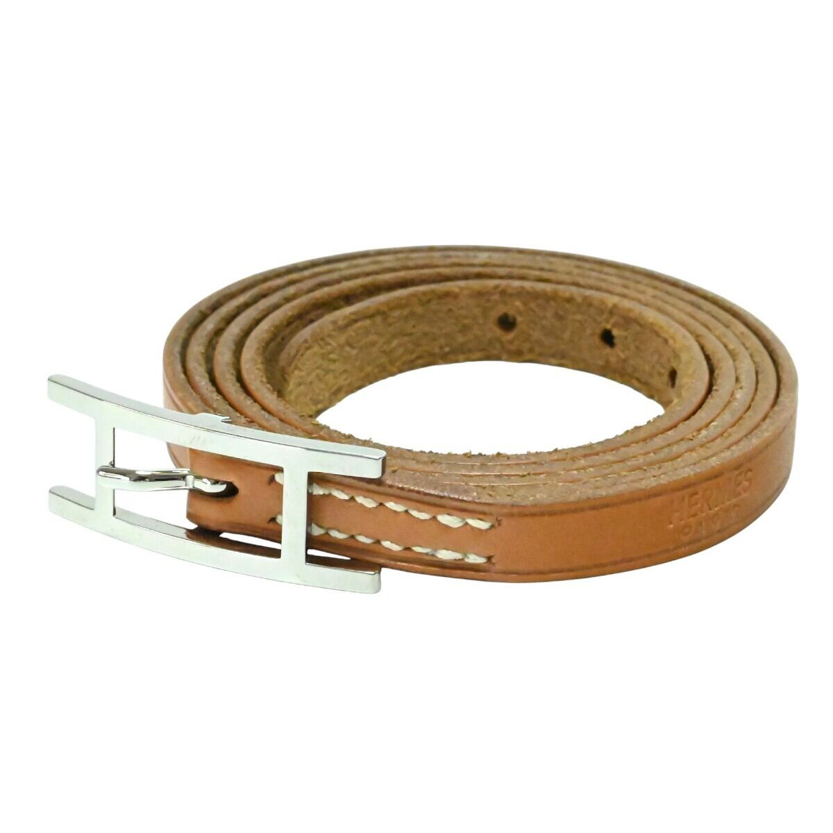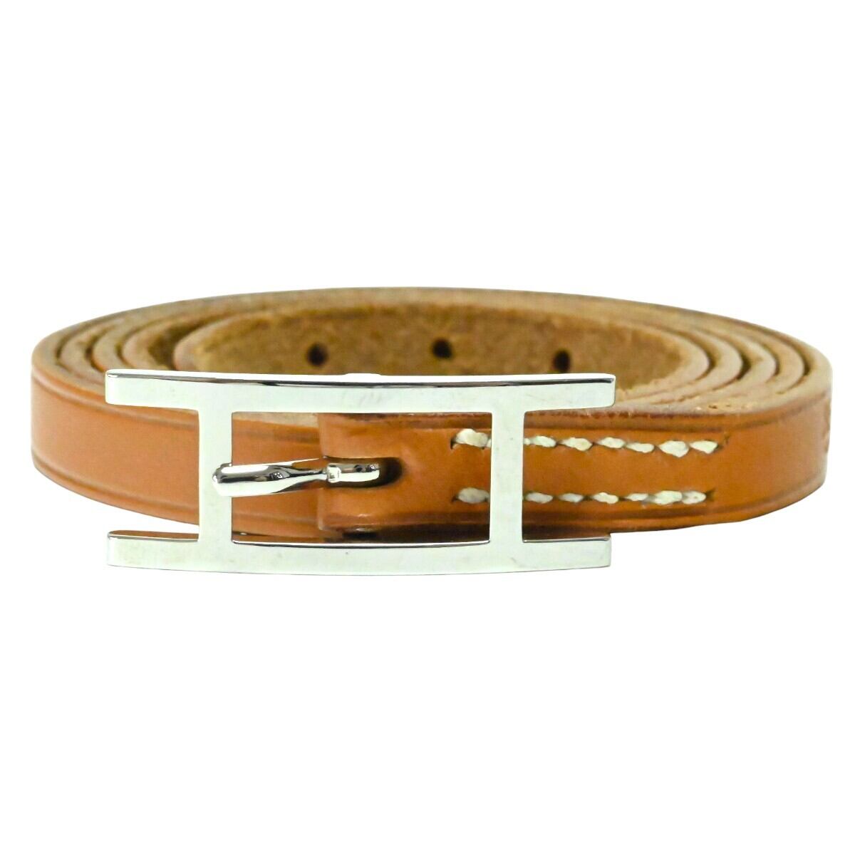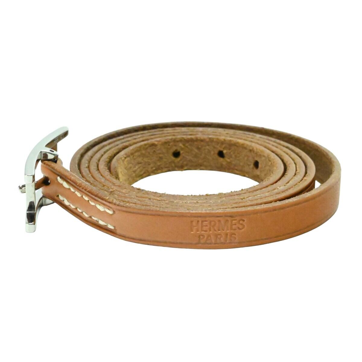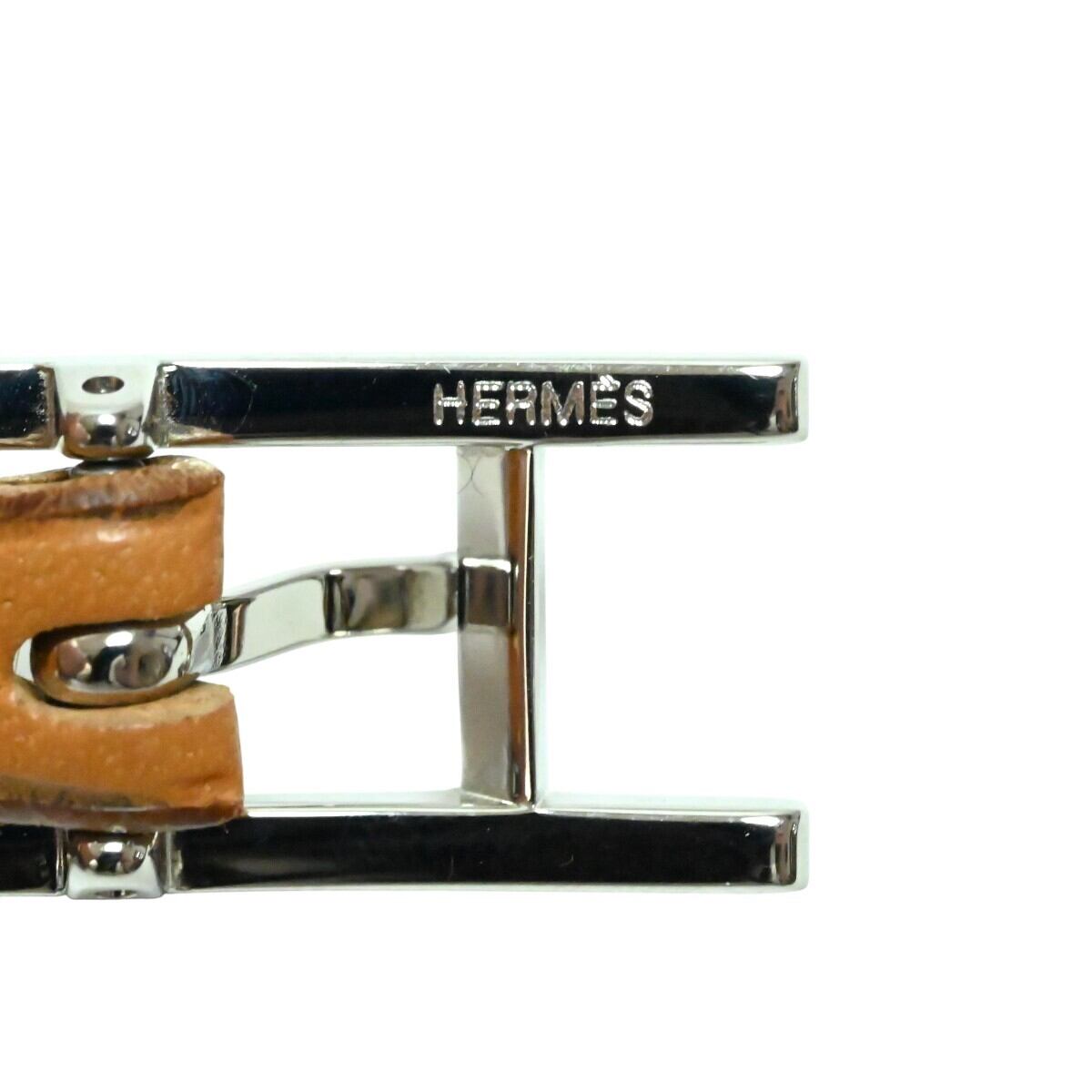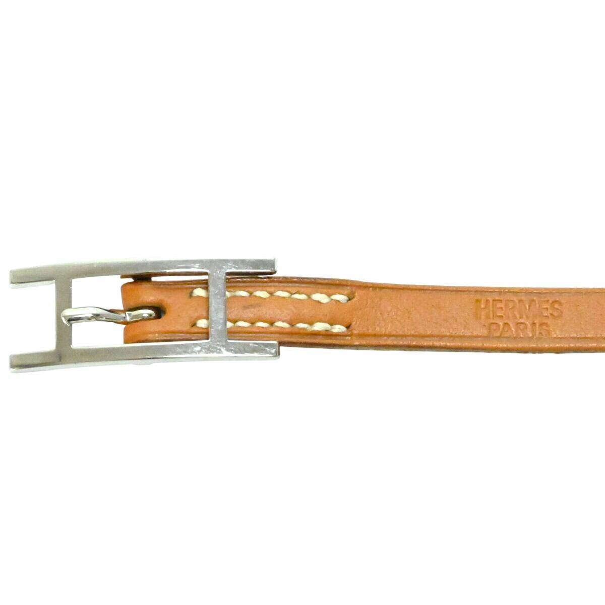 美品 HERMES エルメス アピⅢ ロングレザ― ブレスレット □H チャ/シルバー K2602-k033NP