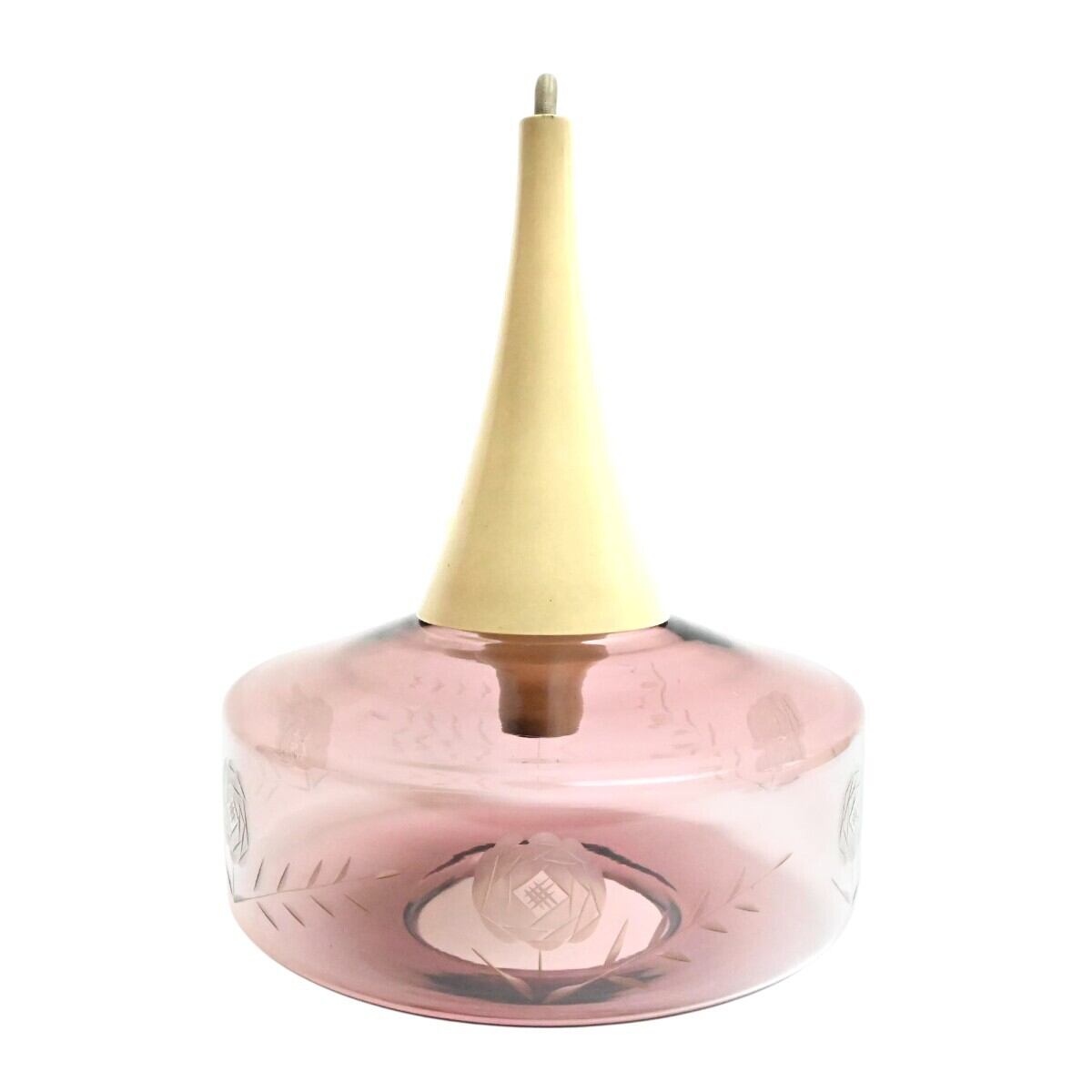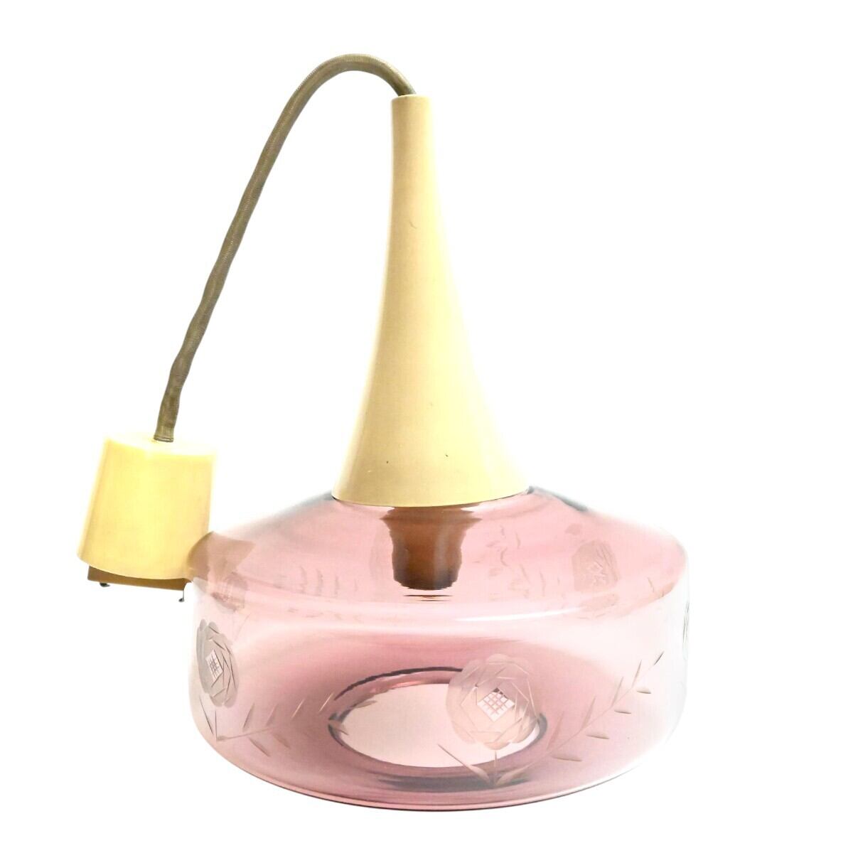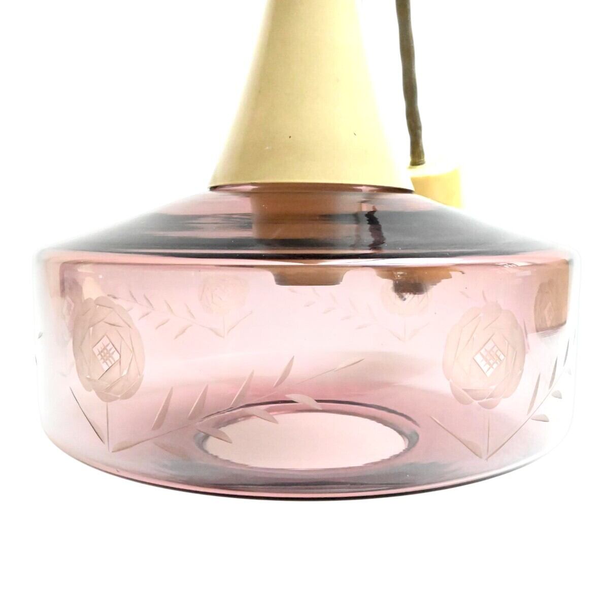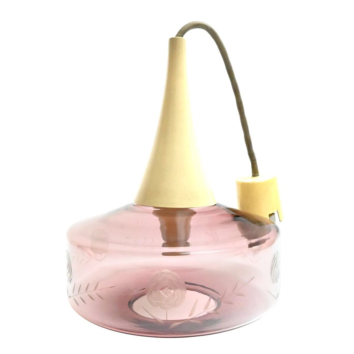 希少 National ナショナル ペンダントライト 切子ガラスシェード LB16215 赤紫系 松下電工 昭和レトロ 点灯確認済 T2602-t032