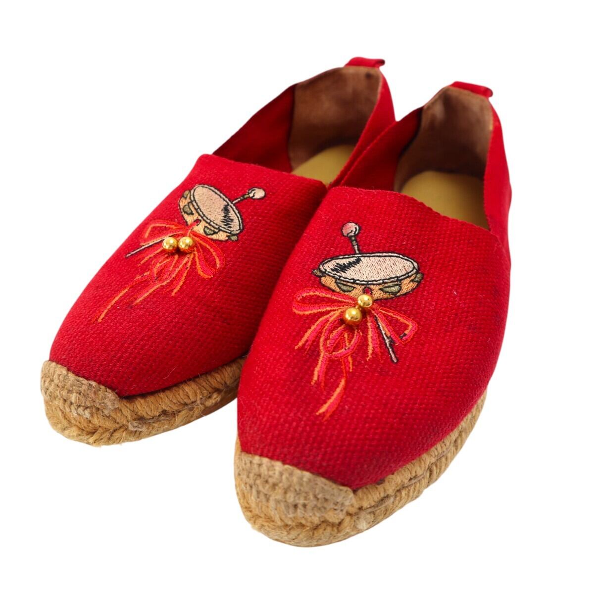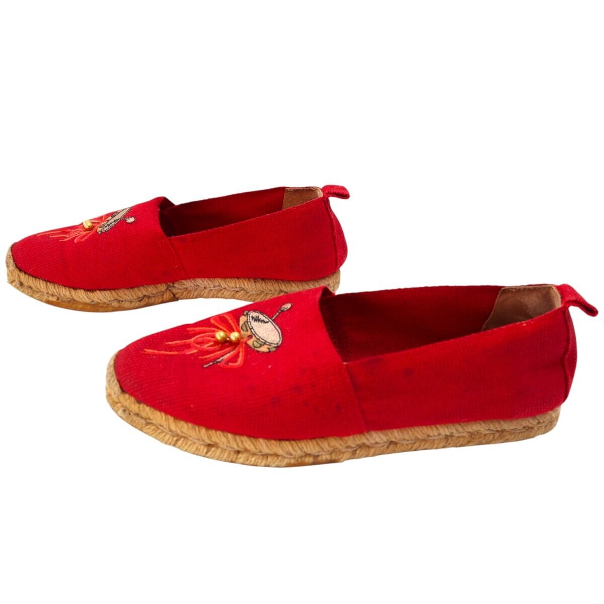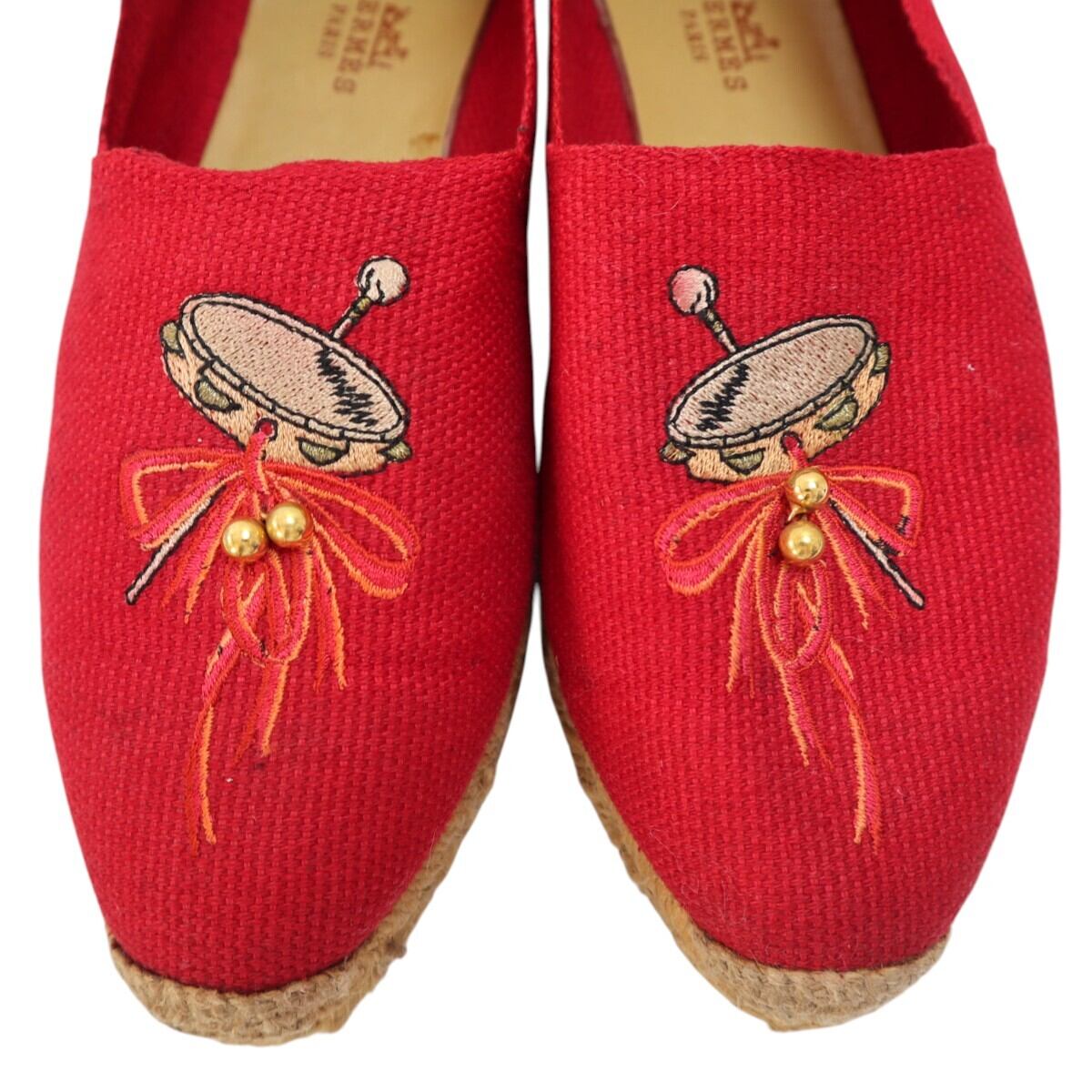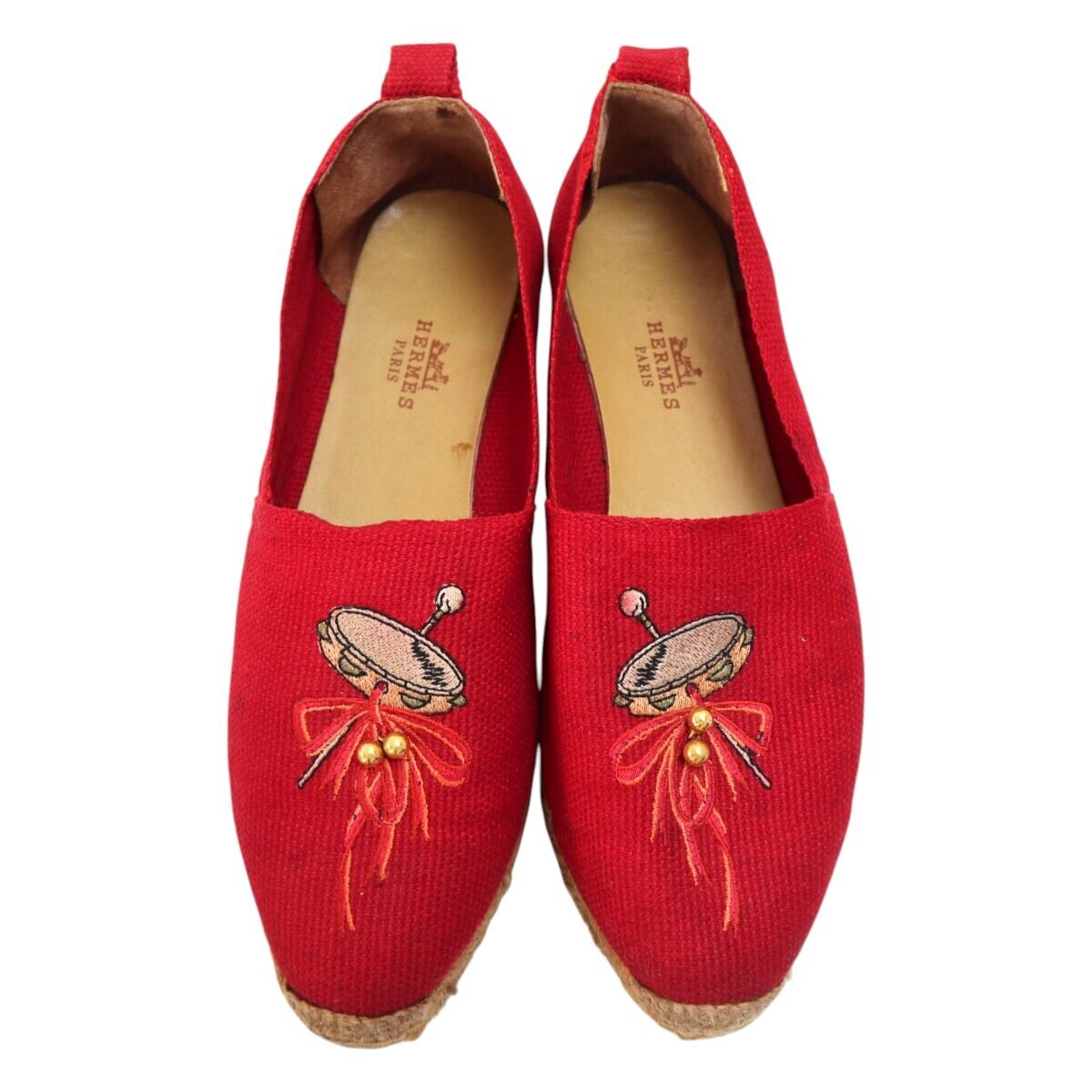 商品名:HERMES エルメス エスパドリーユ デザイン刺繍 キャンバス スリッポン シューズ 37 レッド