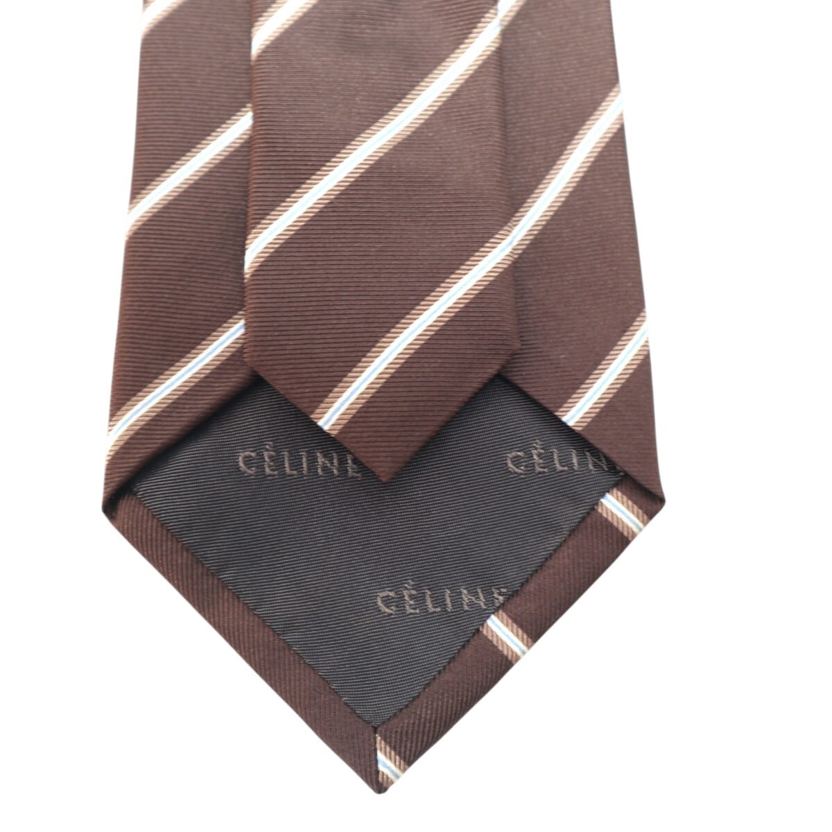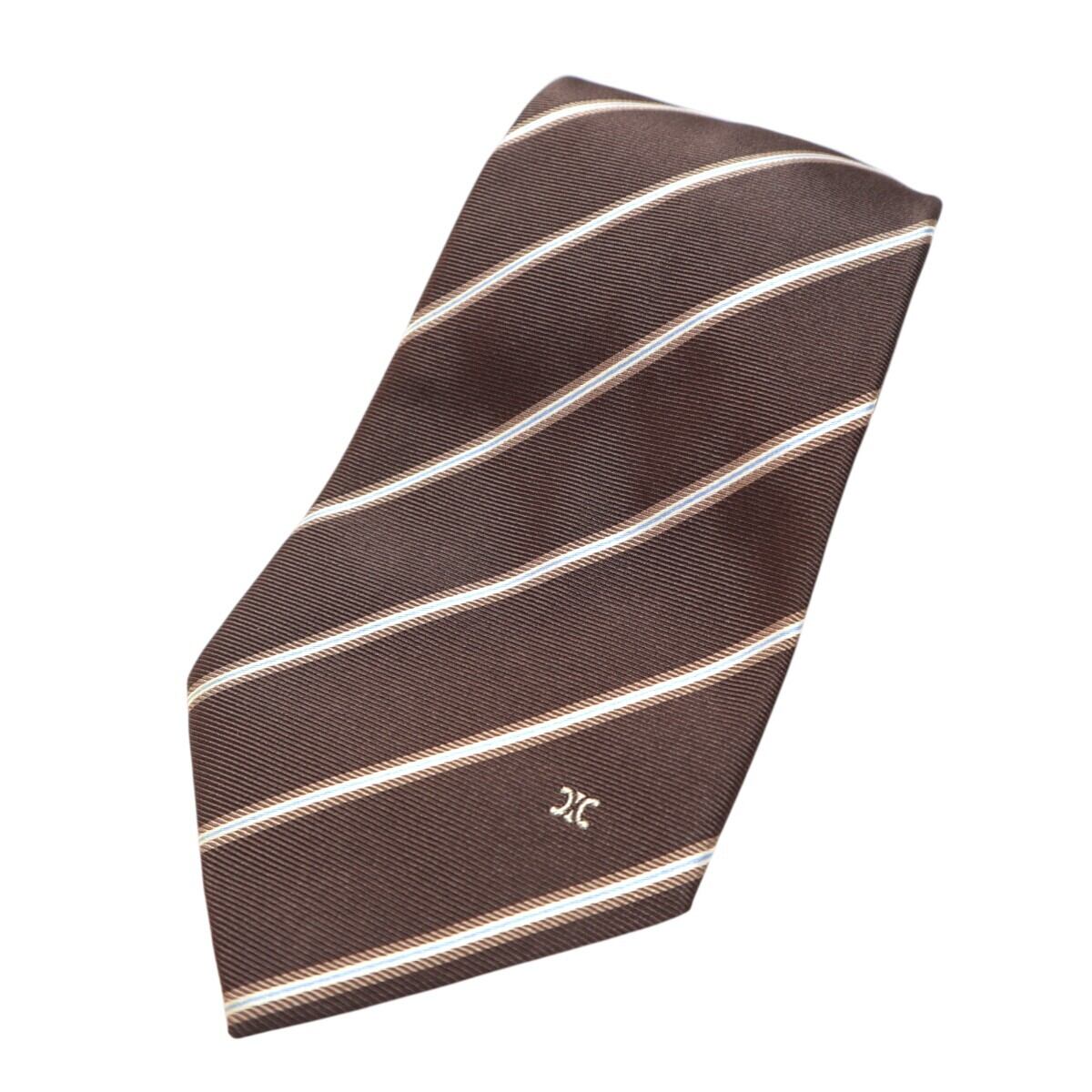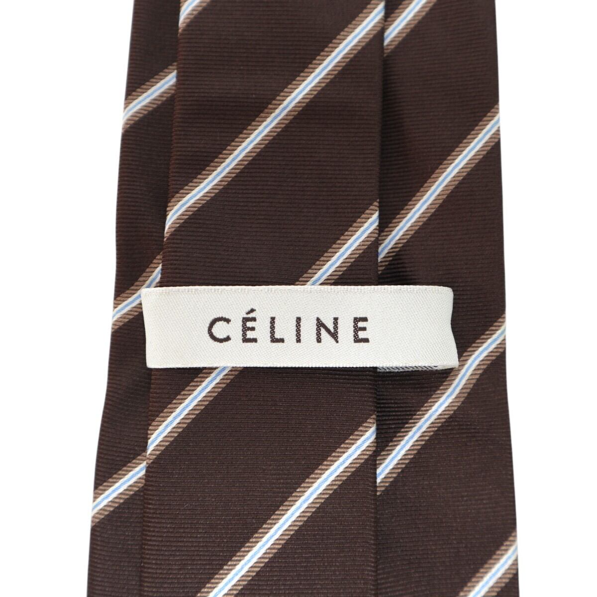 CELINE セリーヌ ストライプ シルク ネクタイ ブラウン M2602-k066