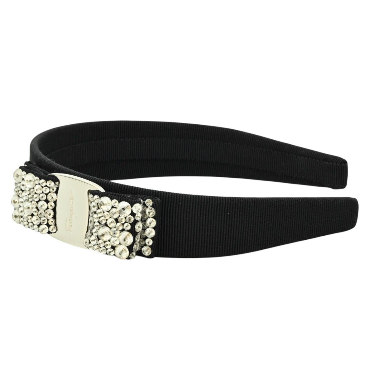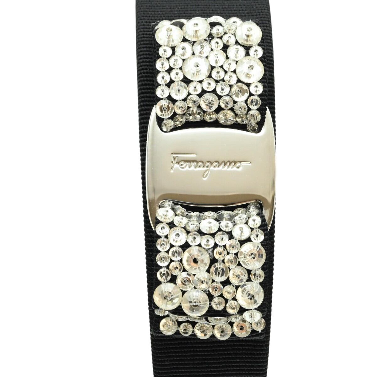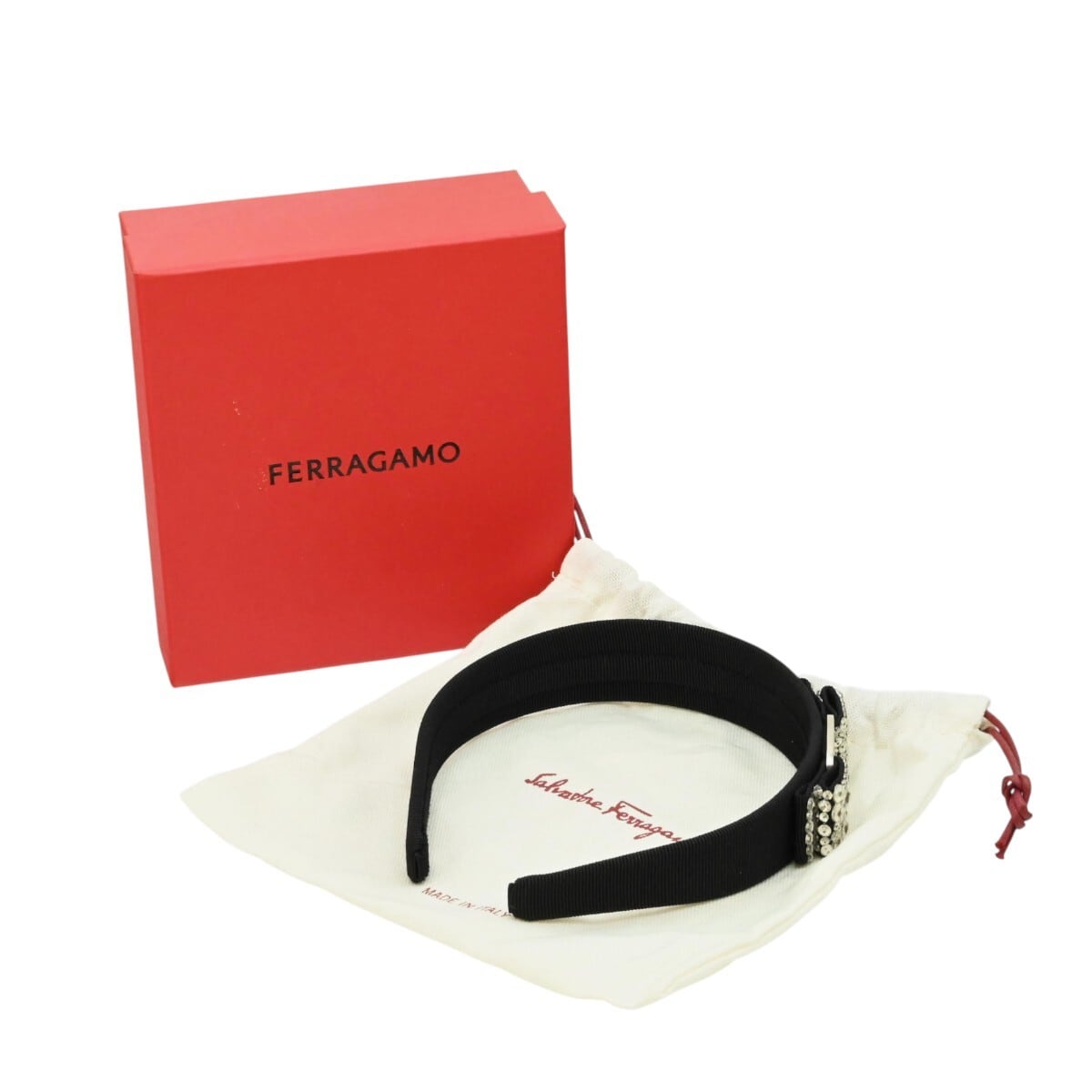 商品名:美品 Salvatore Ferragamo サルヴァトーレフェラガモ ヴァラ ビジュー ナイロンキャンバス カチューシャ ブラック/シルバー