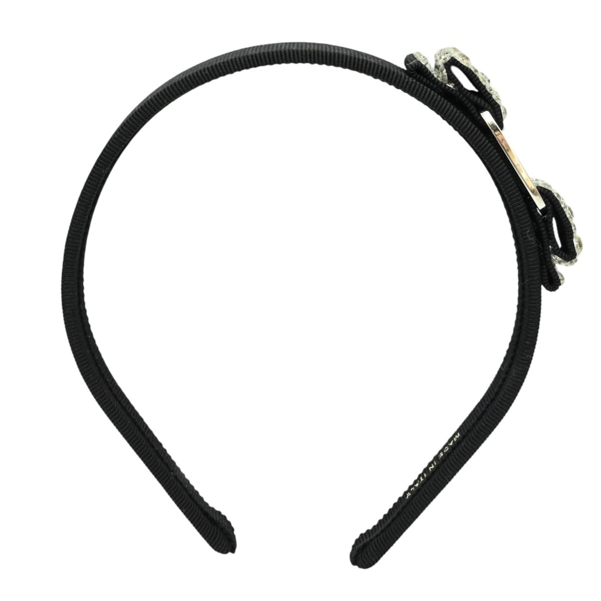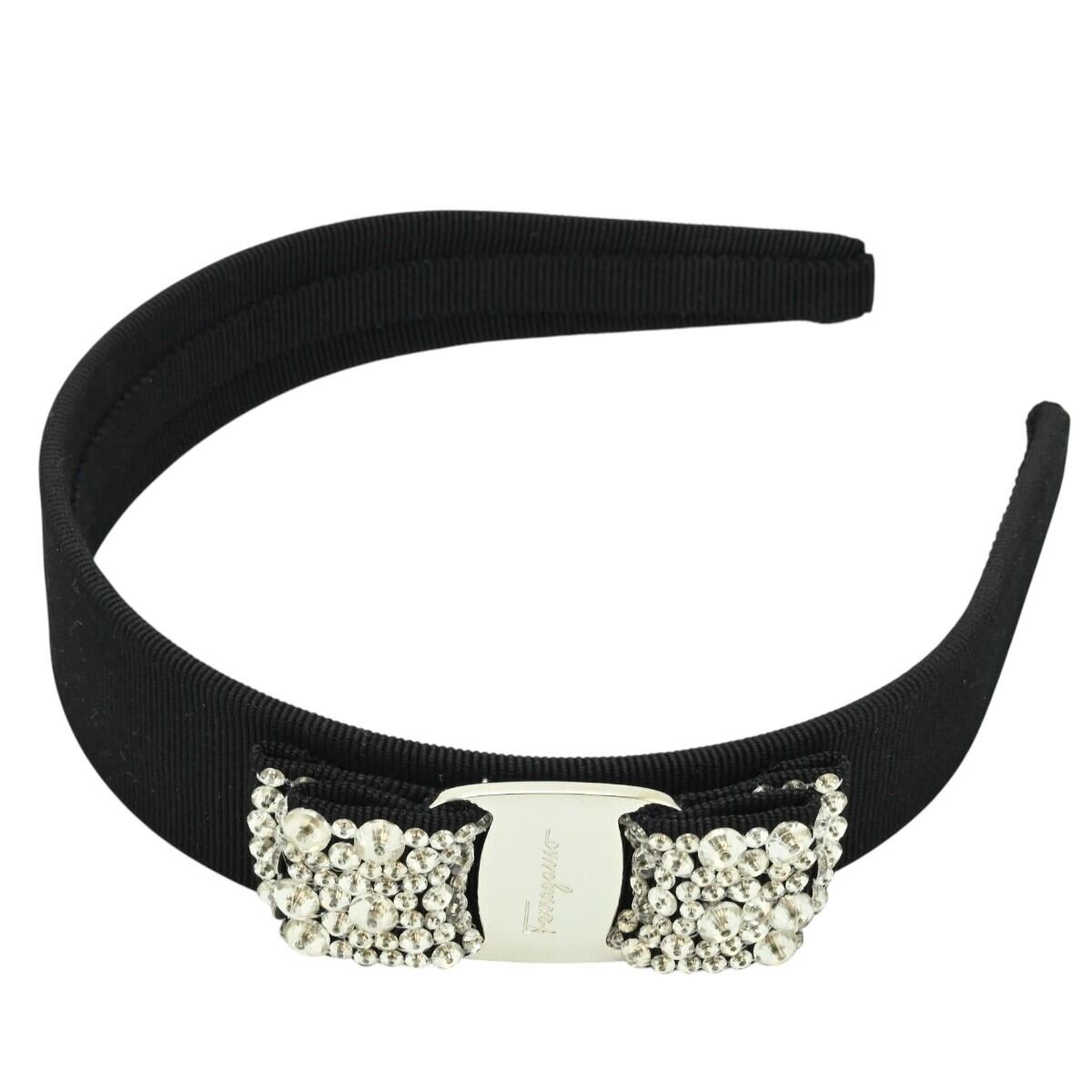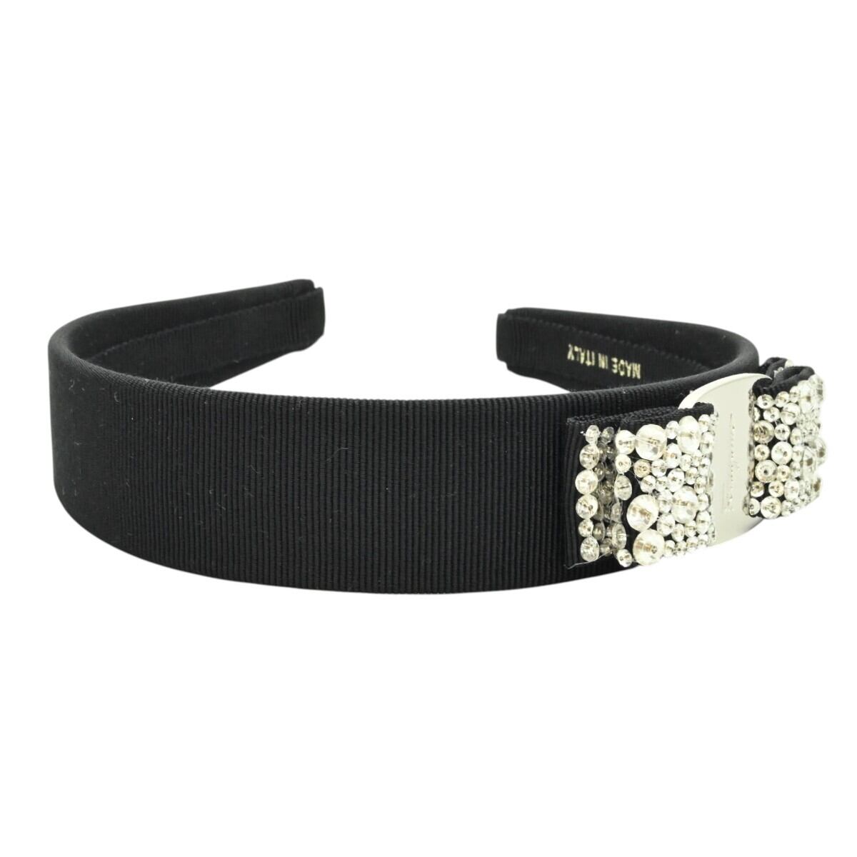 商品名:美品 Salvatore Ferragamo サルヴァトーレフェラガモ ヴァラ ビジュー ナイロンキャンバス カチューシャ ブラック/シルバー