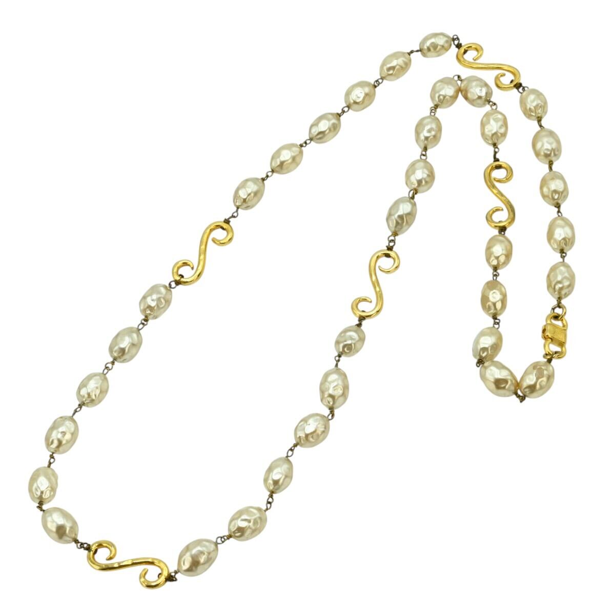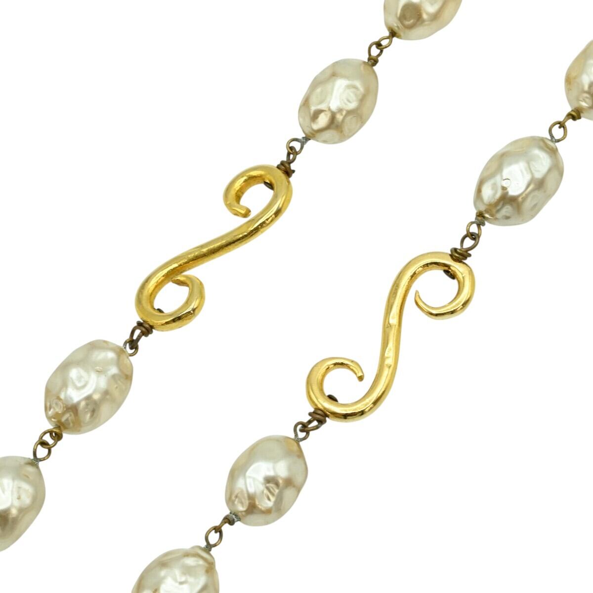 商品名:CELINE セリーヌ バロックフェイクパール/デザインメタル GP ロングネックレス パール/ゴールド