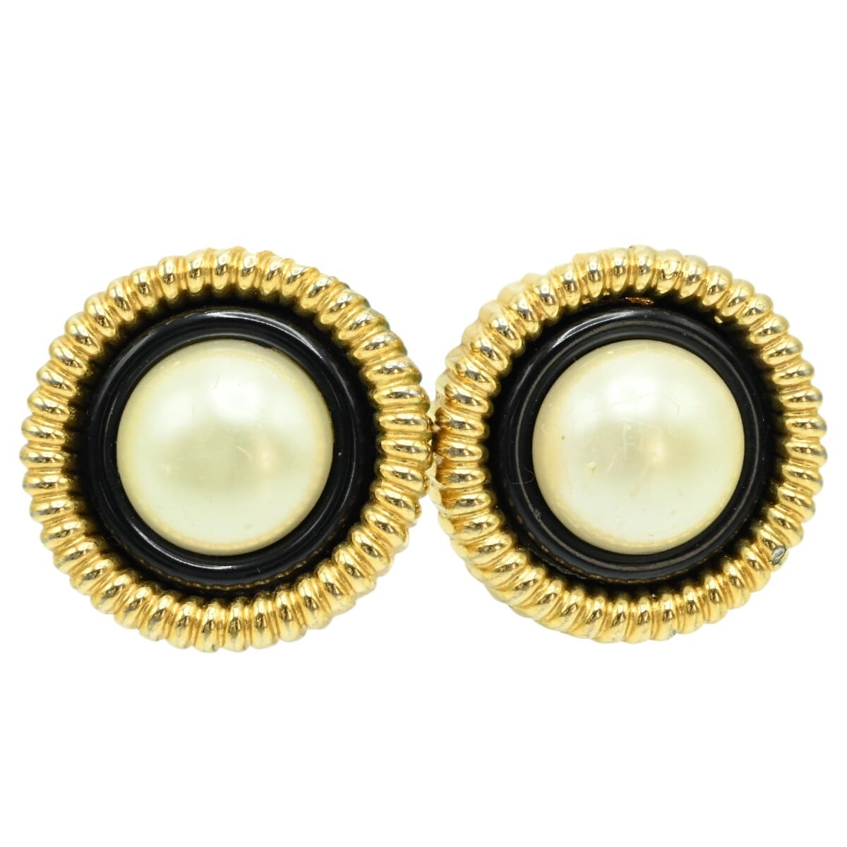CHANEL シャネル ヴィンテージ フェイクパール GP イヤリング ゴールド/ブラック K2602-k082NP