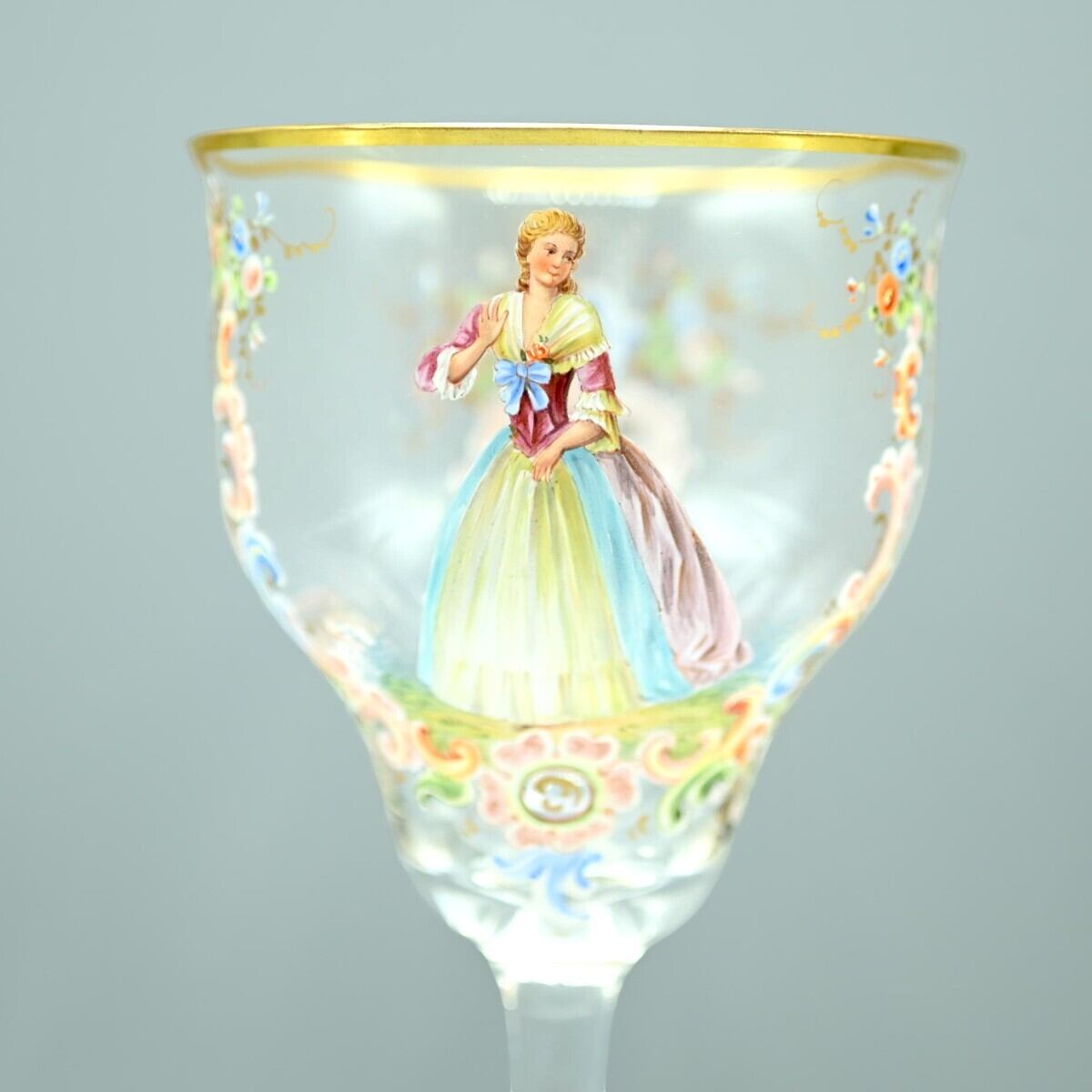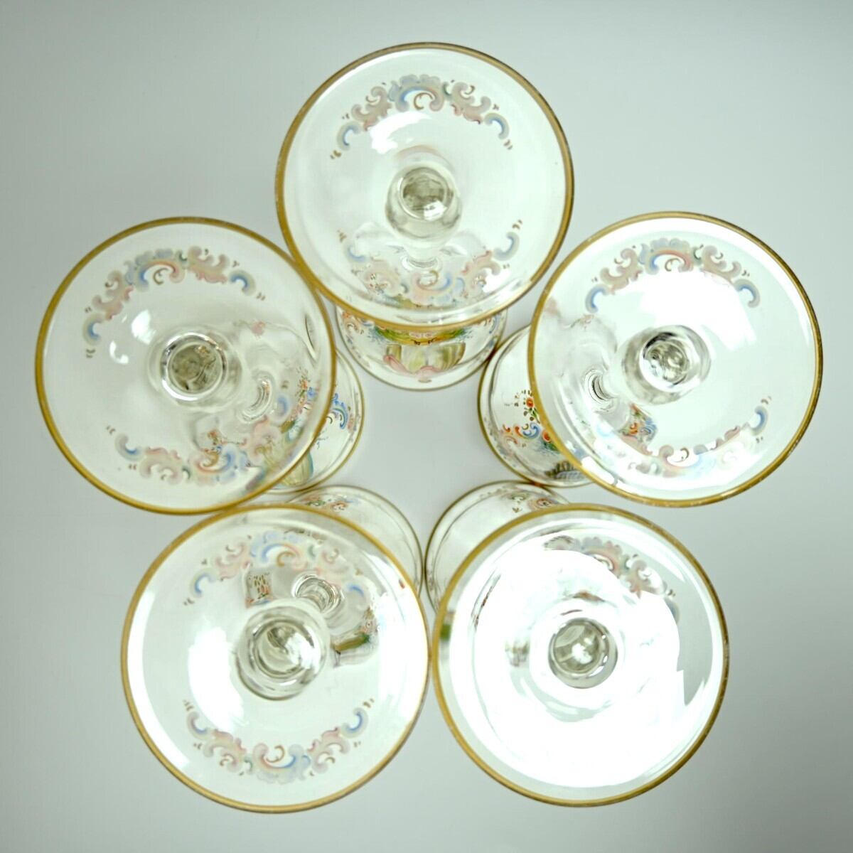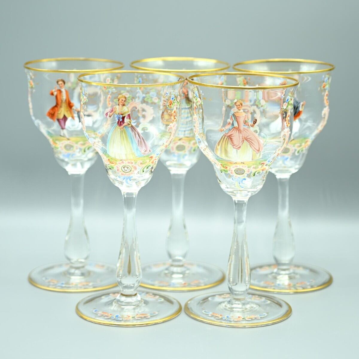 商品名:希少 LOBMEYR ロブマイヤー 中世貴人文ワイングラス 5客セット 金彩 エナメル彩 約20cm アンティーク