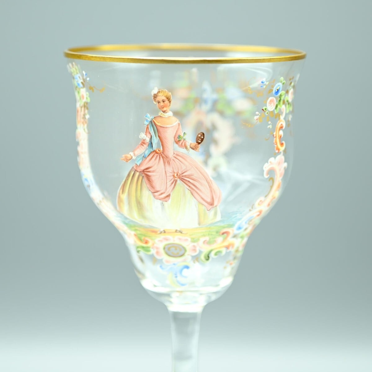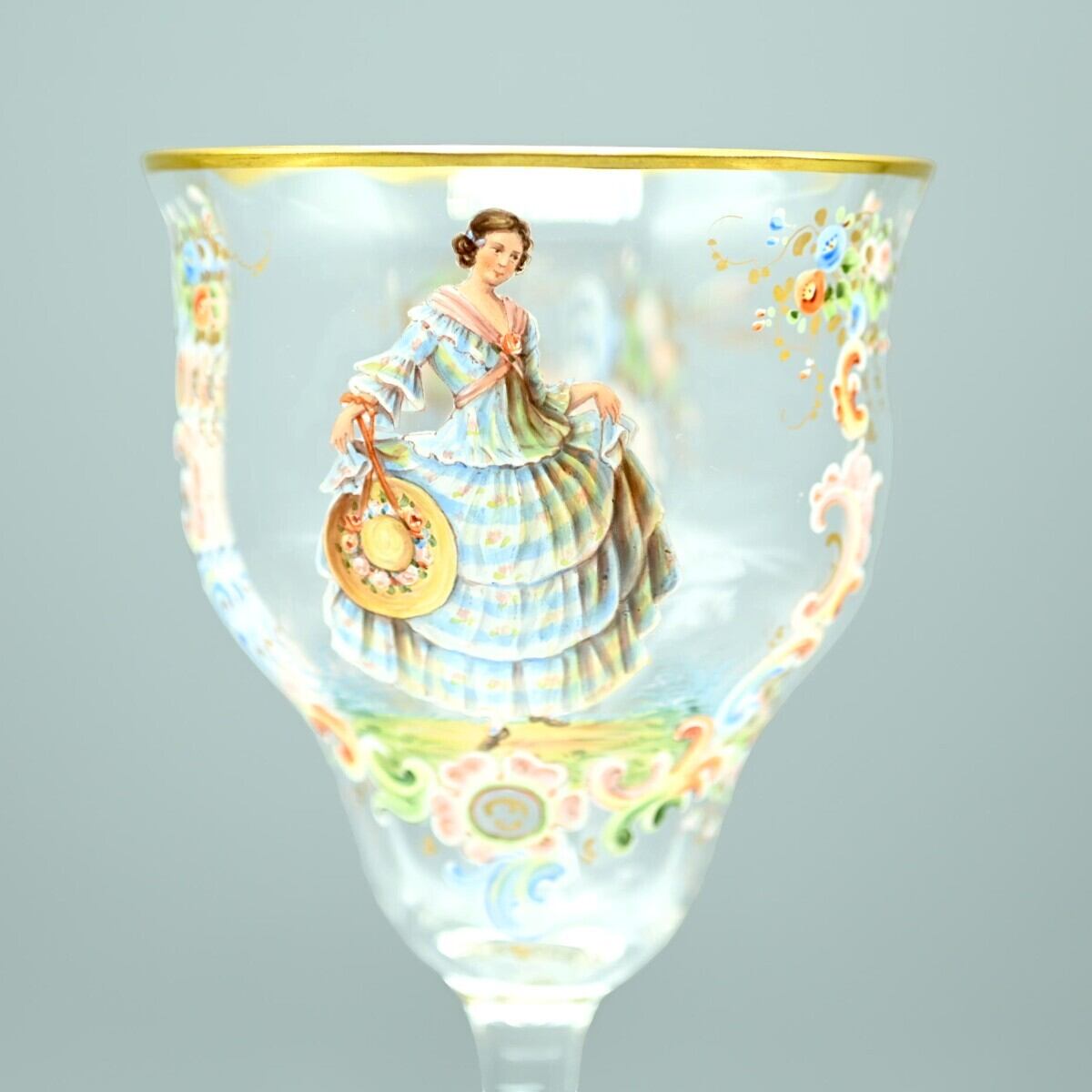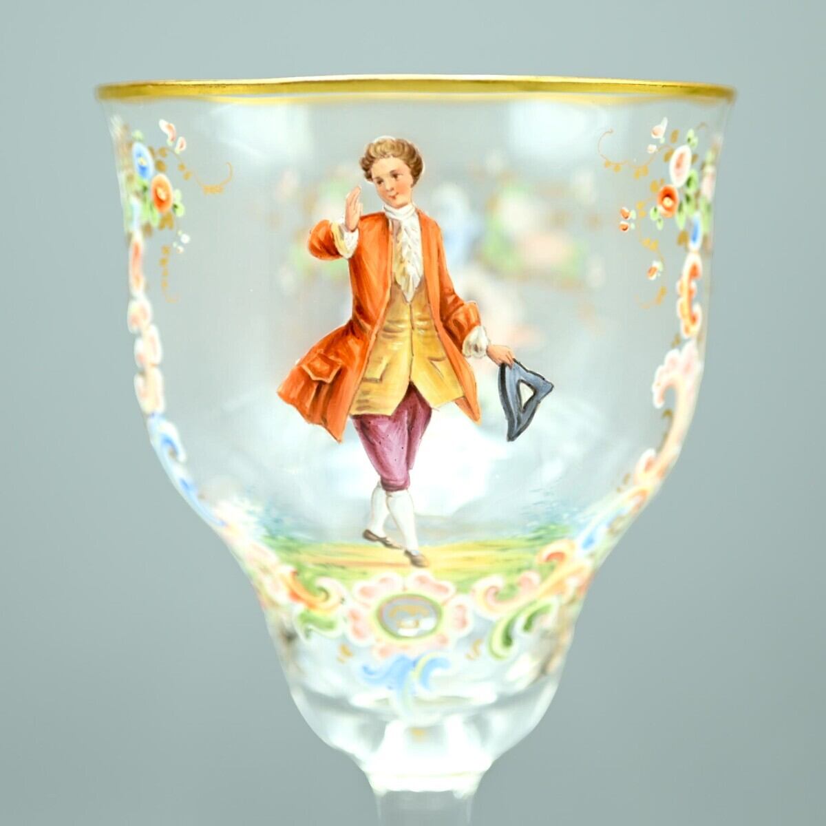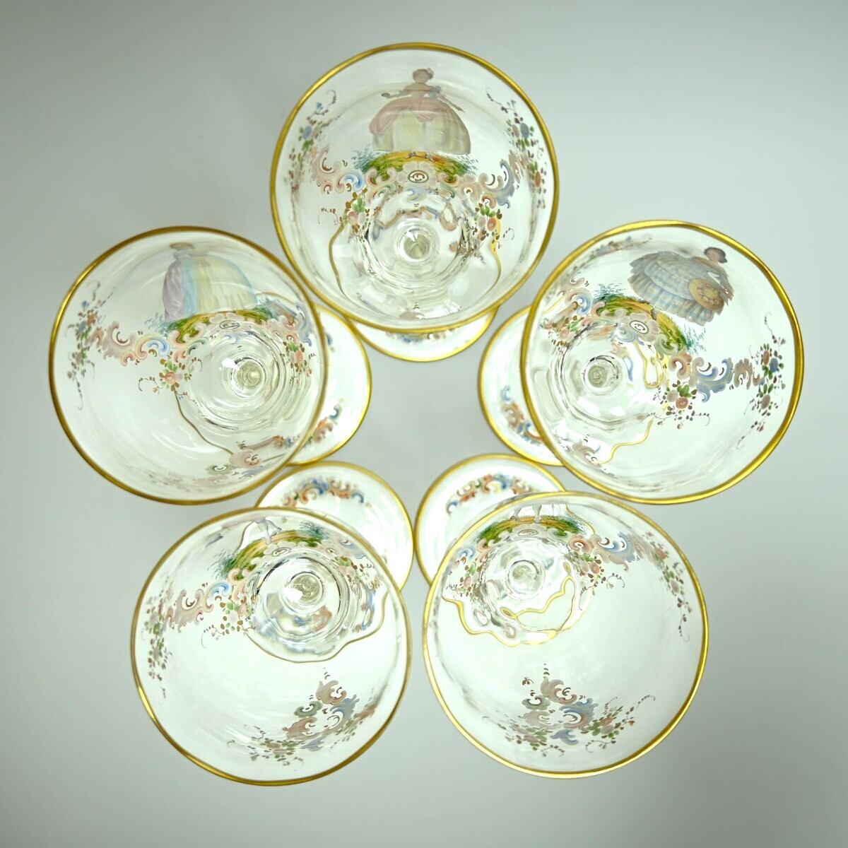 商品名:希少 LOBMEYR ロブマイヤー 中世貴人文ワイングラス 5客セット 金彩 エナメル彩 約20cm アンティーク