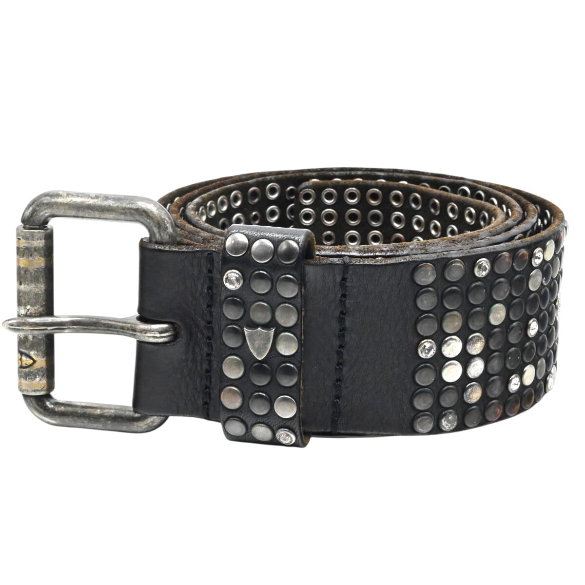 商品名:HTC エイチティーシー スタッズ/ラインストーン ブラスバックル レザーベルト 85/34 ブラック