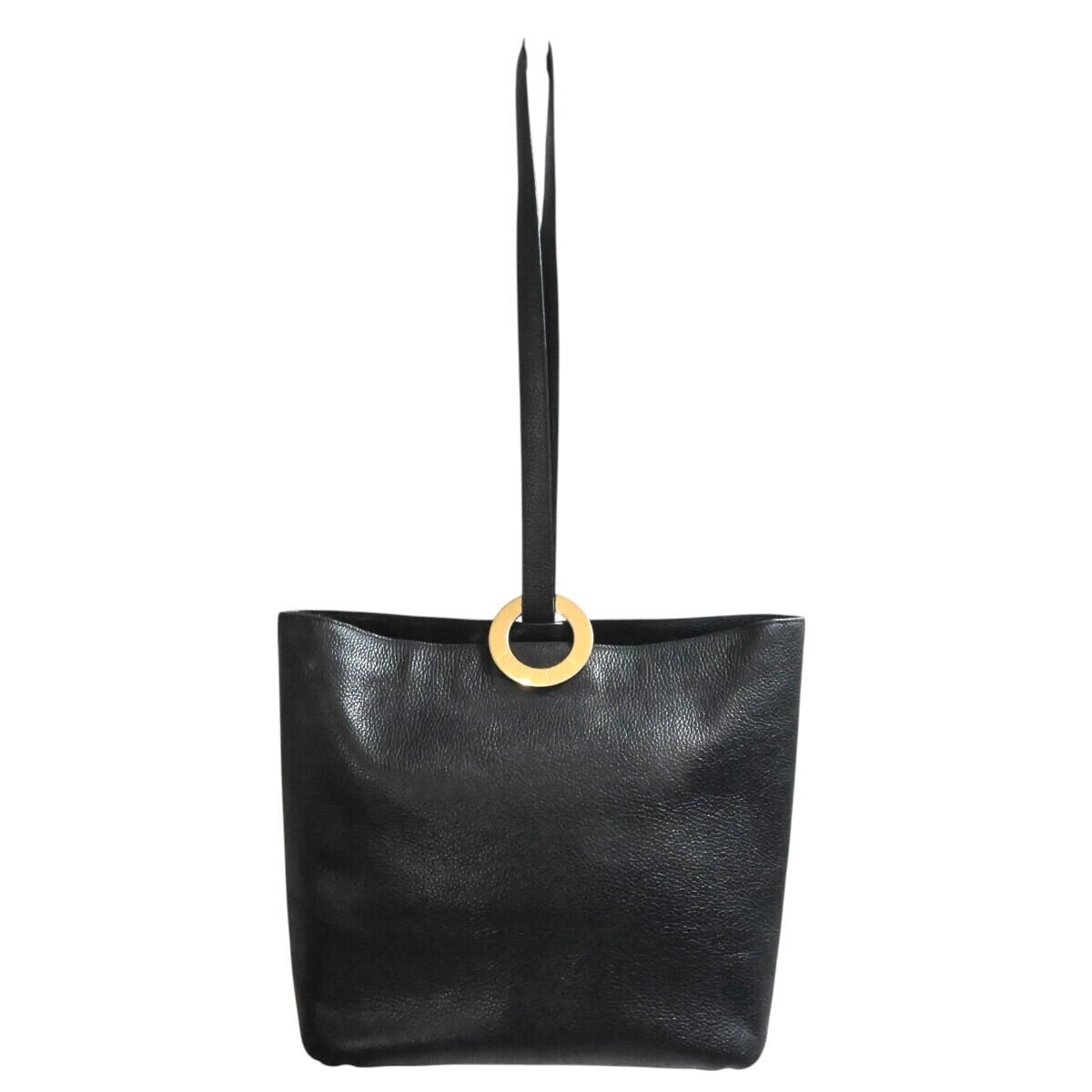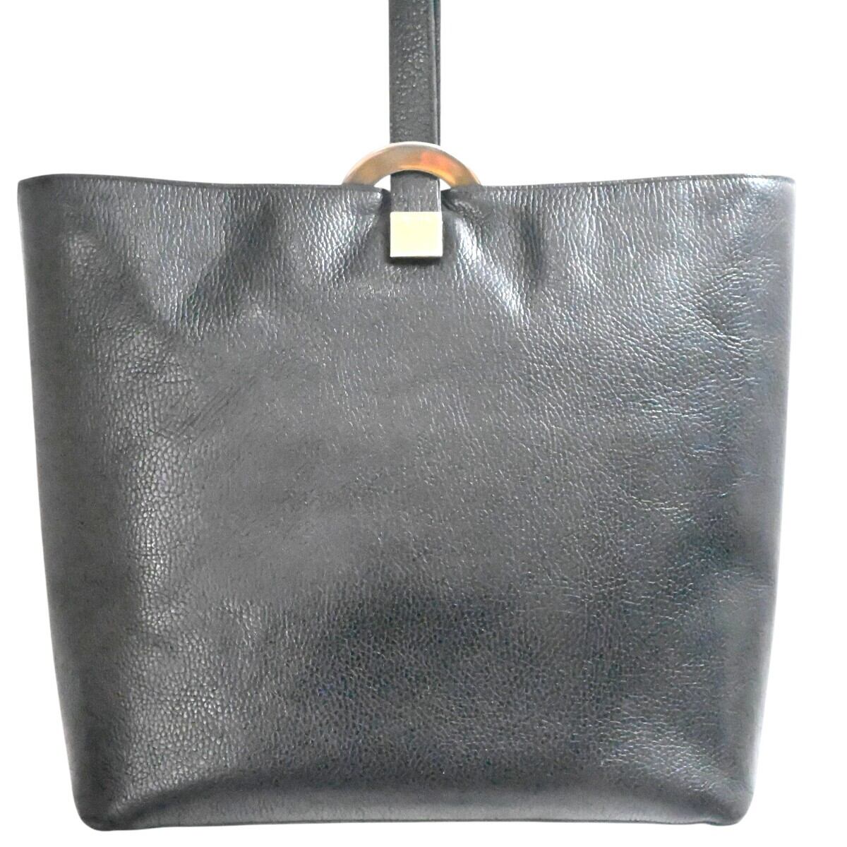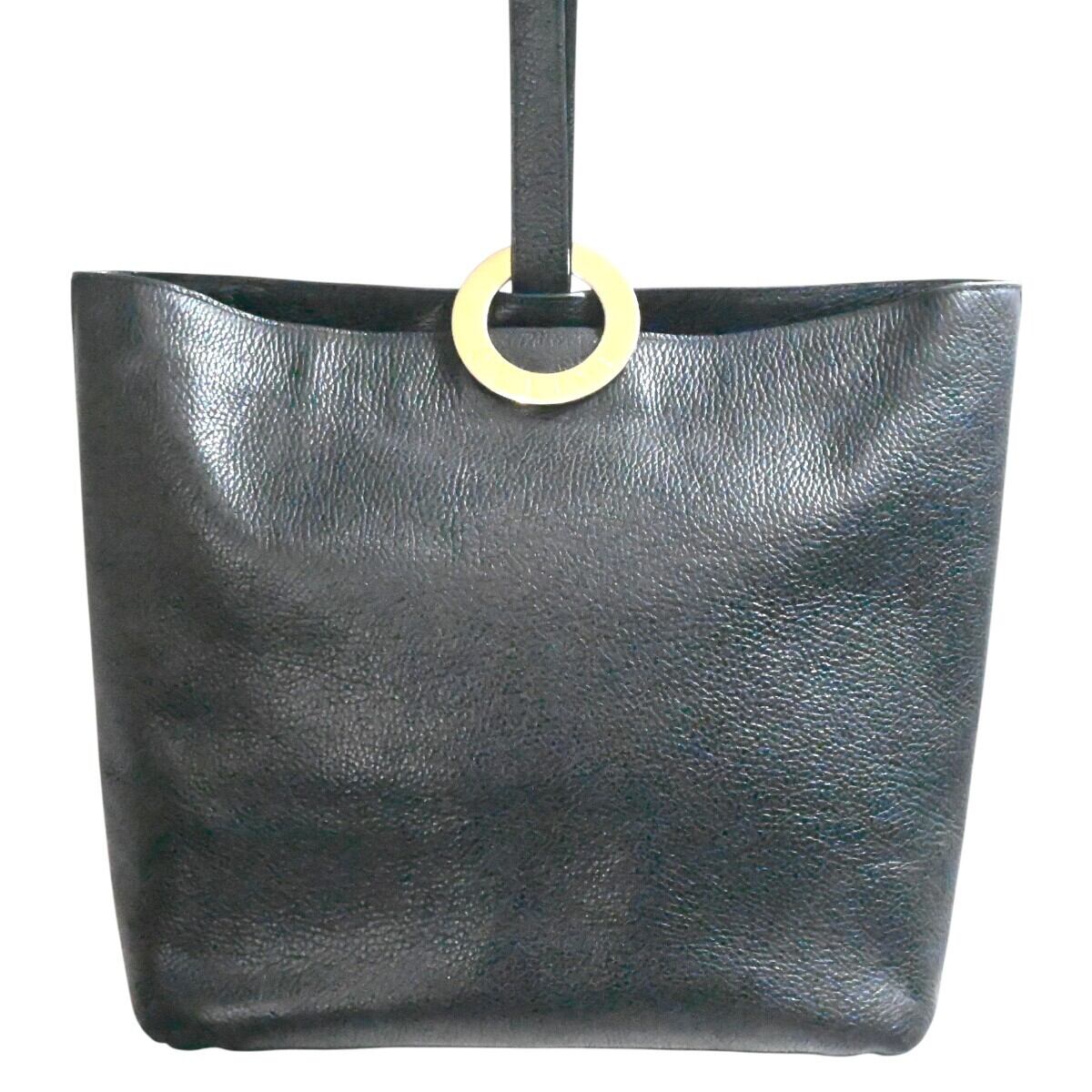 CELINE セリーヌ サークルロゴ金具 レザー ショルダーバッグ トートバッグ ブラック/ゴールド M2602-k128