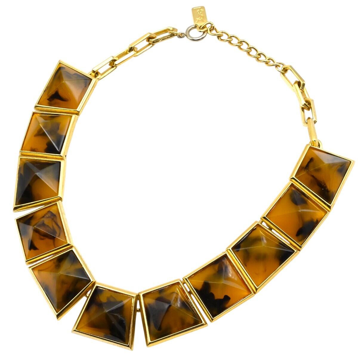 YVESSAINTLAURENT イヴサンローラン ヴィンテージ べっ甲柄 GP ネックレス ブラウン/ゴールド K2602-k163