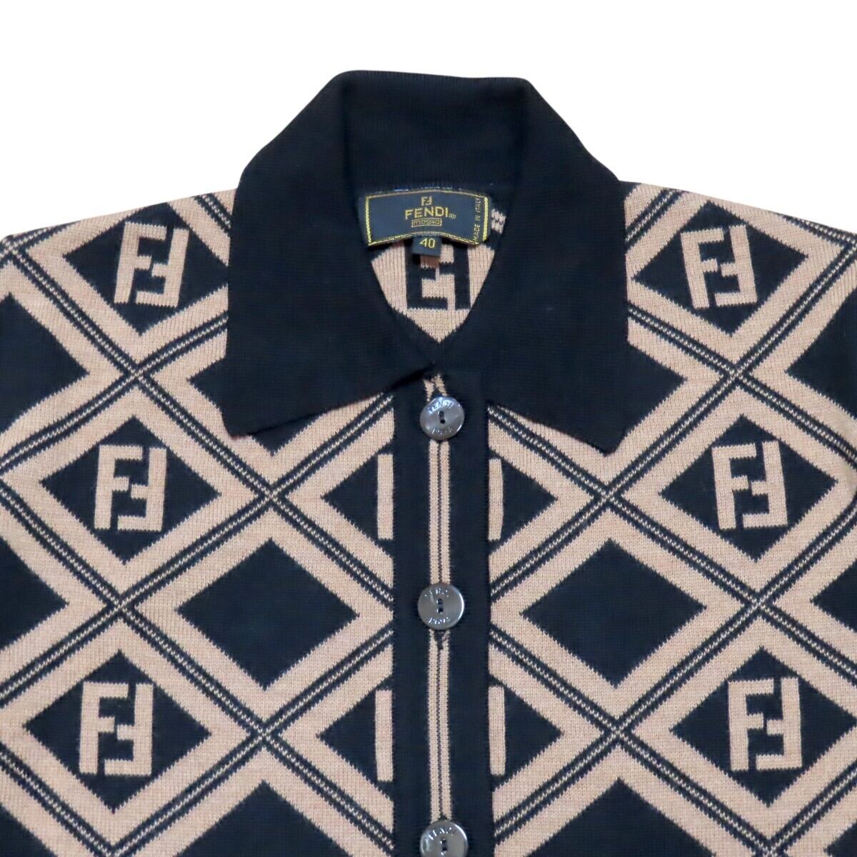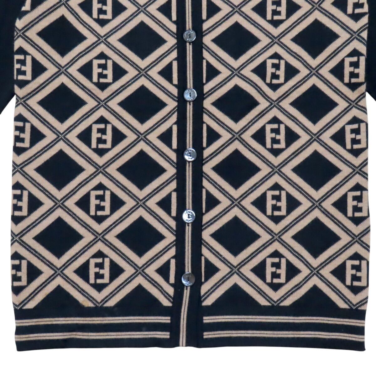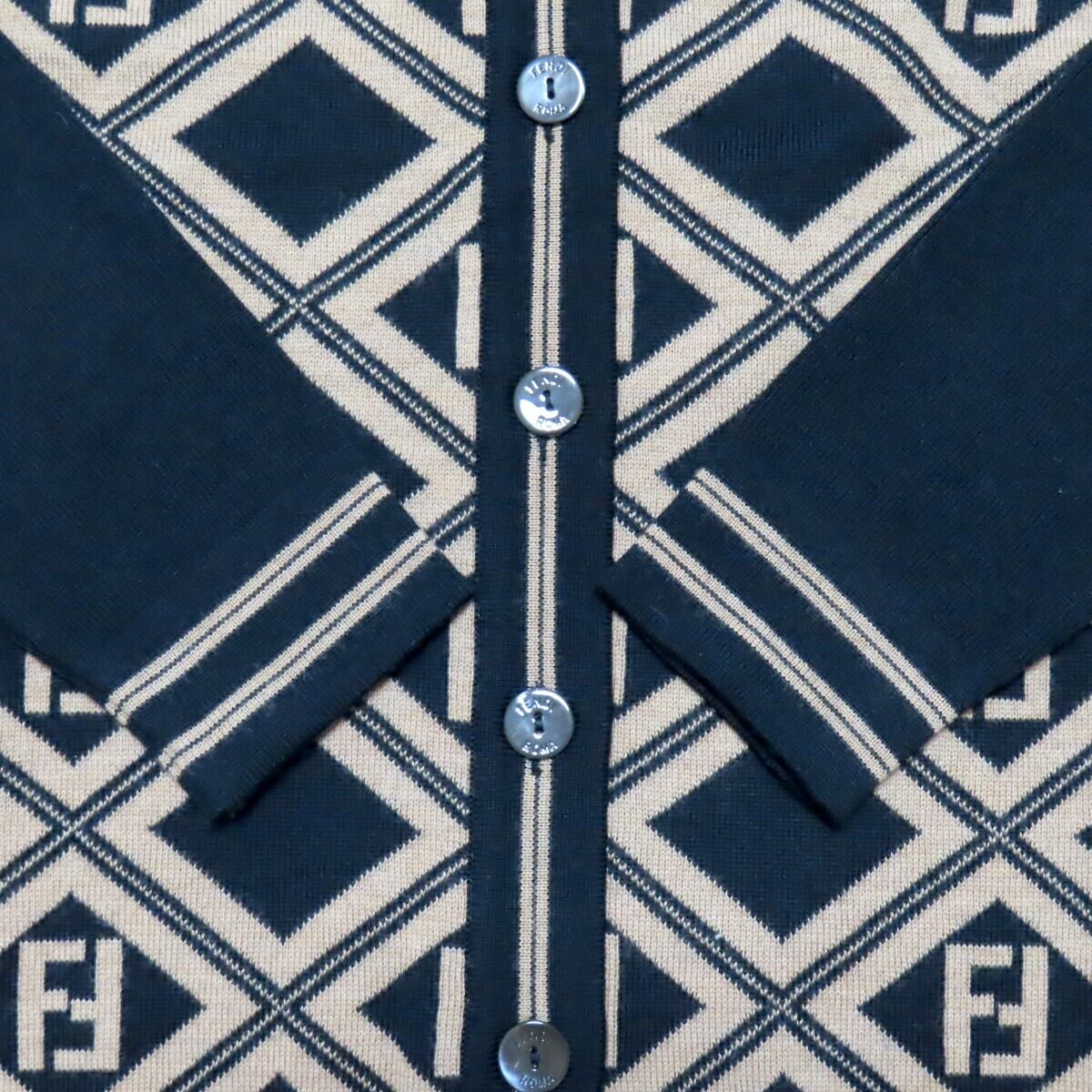 商品名:FENDI フェンディ ズッカ ロゴボタン ウール 長袖ニットセーター カーディガン 40 チャ/ブラック