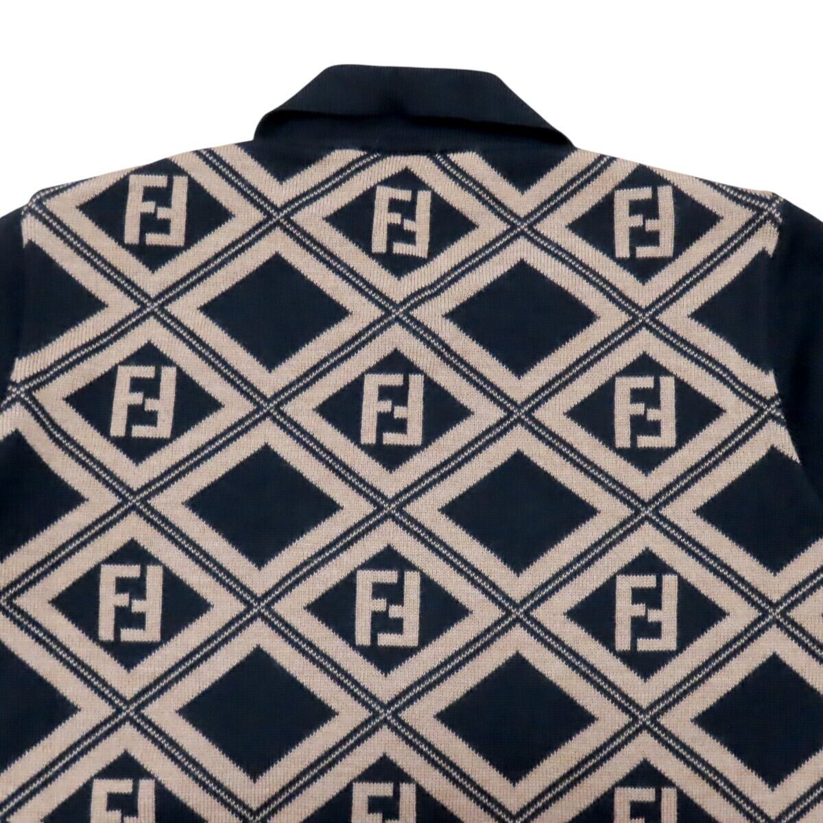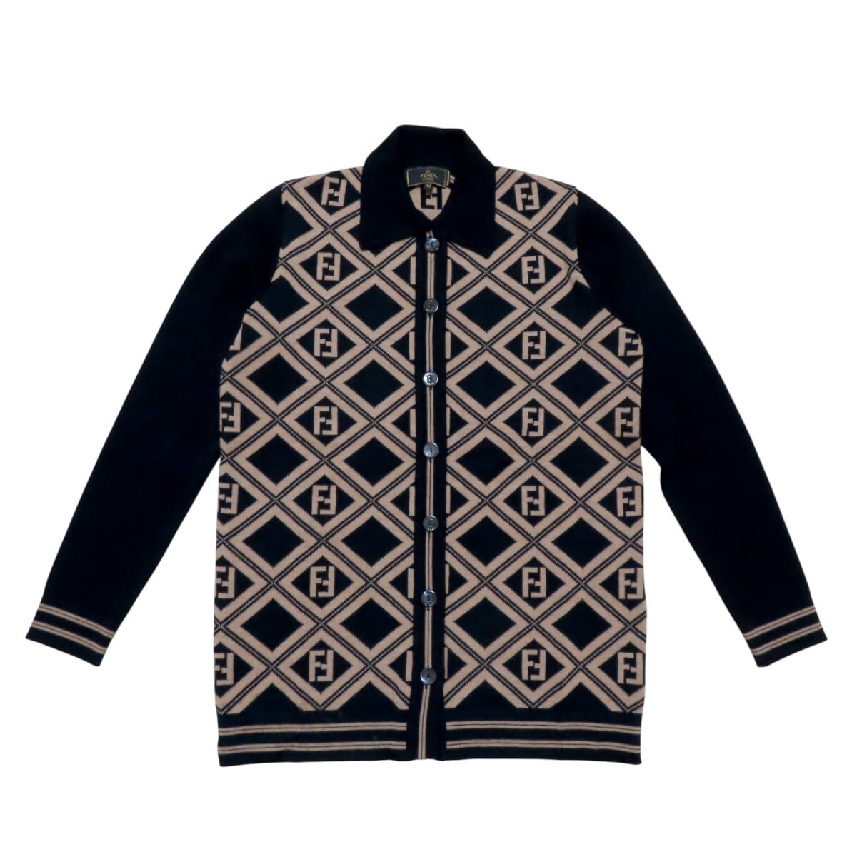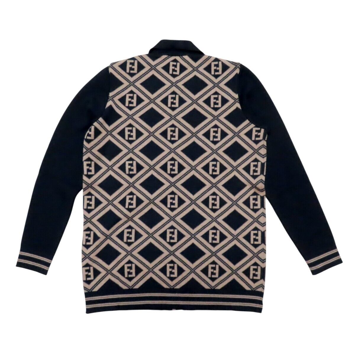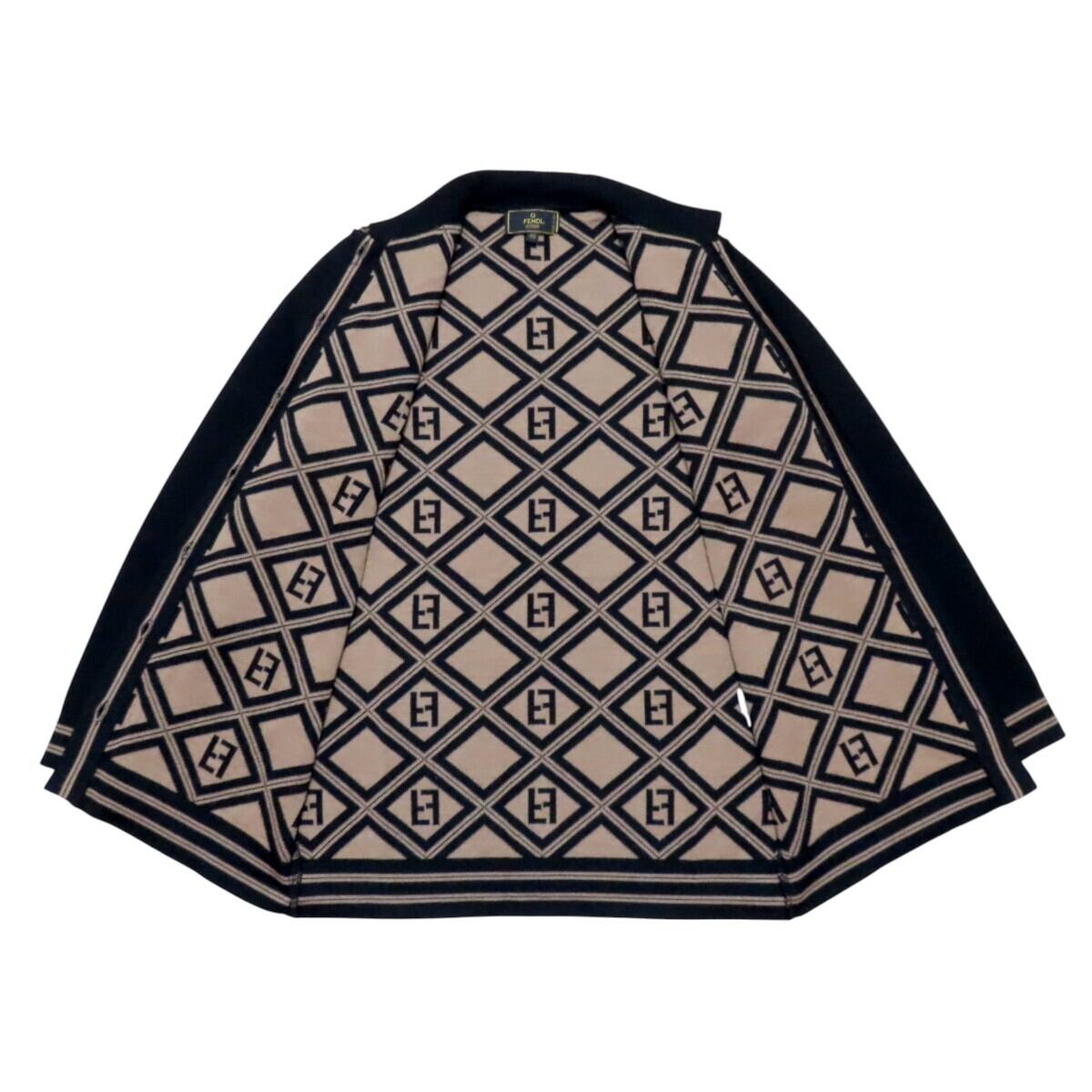商品名:FENDI フェンディ ズッカ ロゴボタン ウール 長袖ニットセーター カーディガン 40 チャ/ブラック