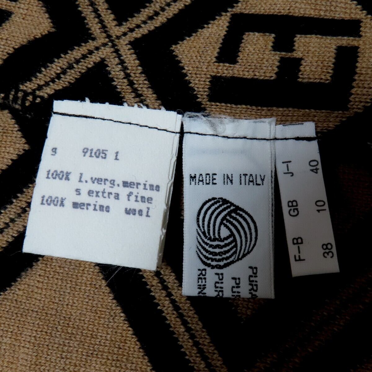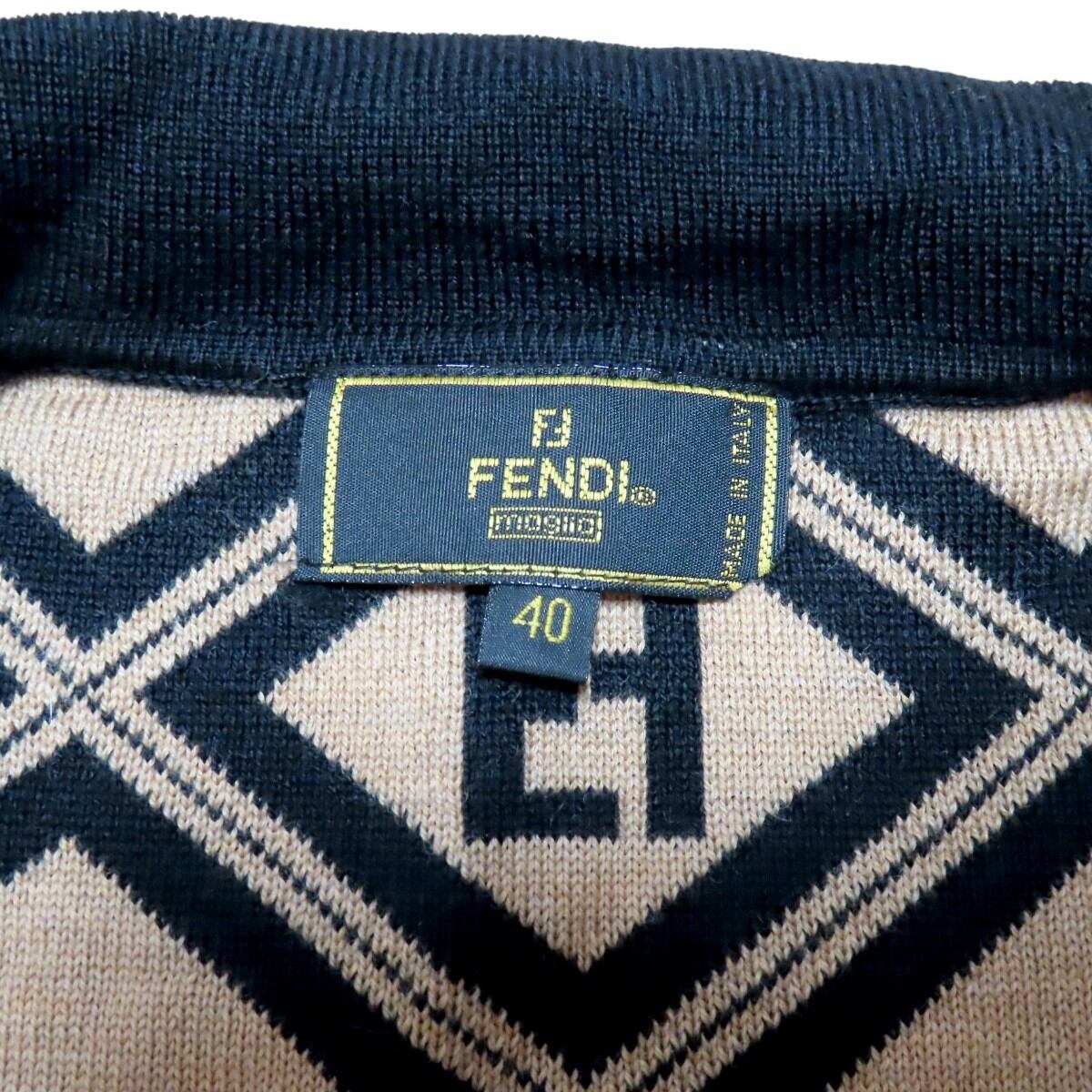 FENDI フェンディ ズッカ ロゴボタン ウール 長袖ニットセーター カーディガン 40 チャ/ブラック T2602-k133