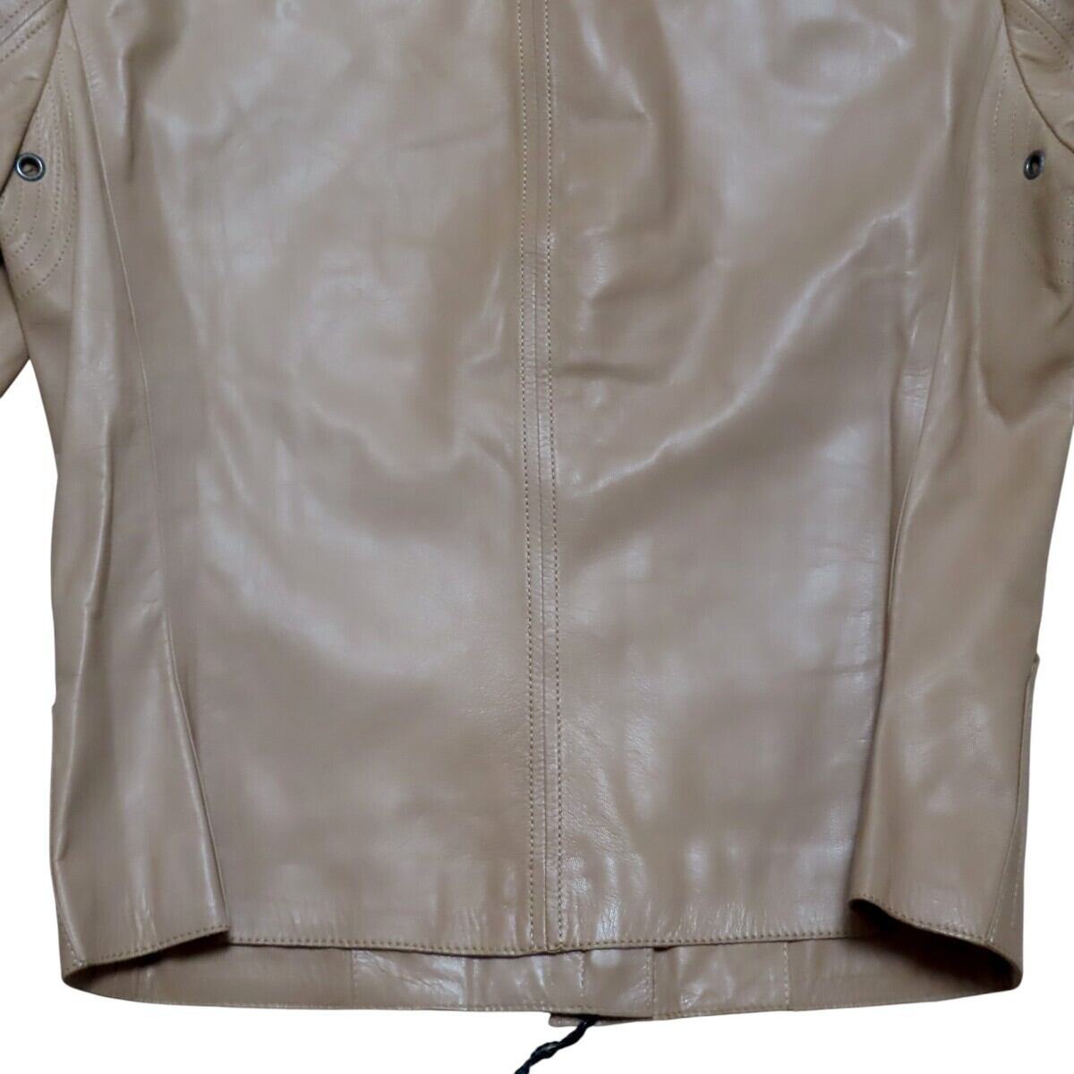GUCCI グッチ 袖ストラップ ジップアップ シングル ゴートレザージャット 38 ベージュ T2602-k129