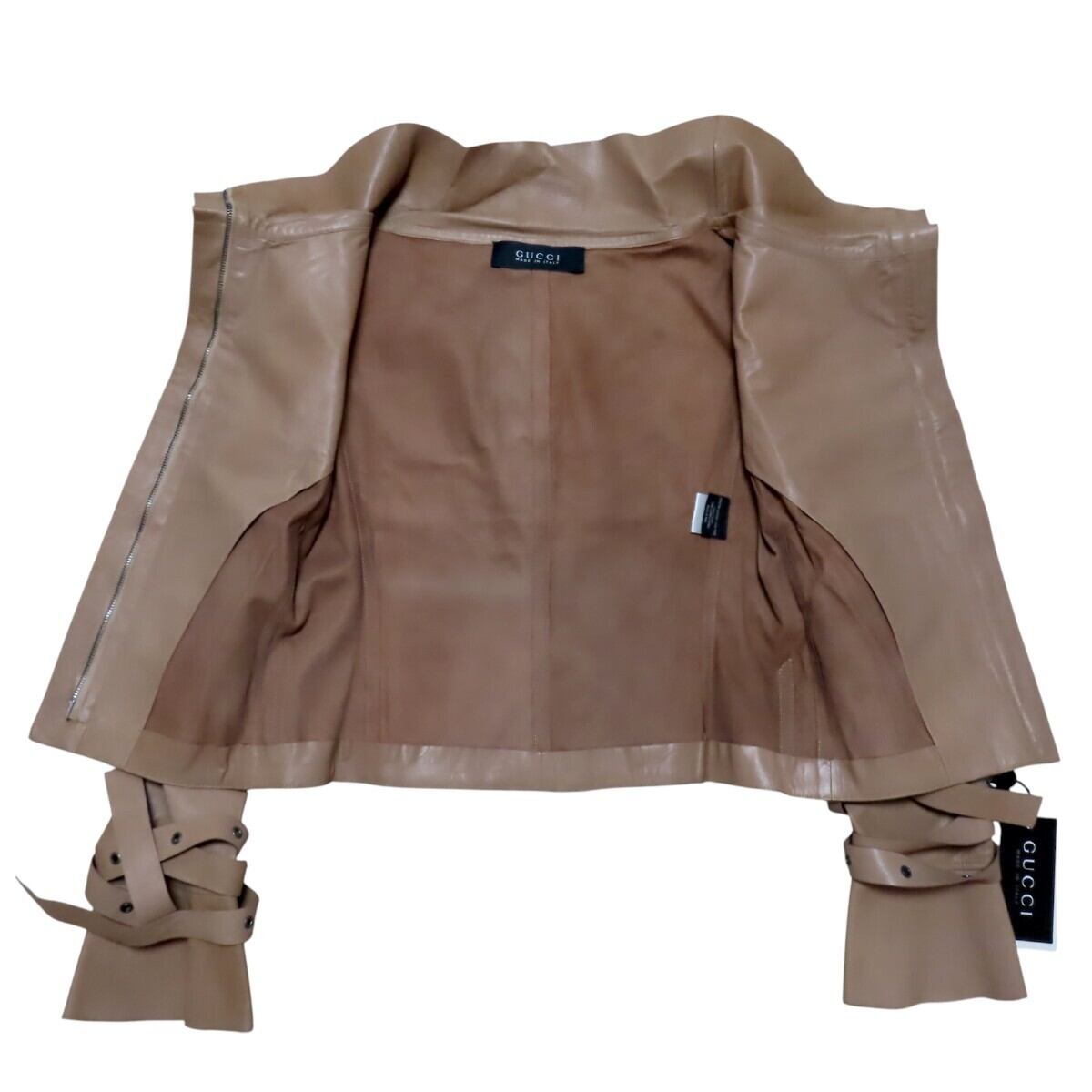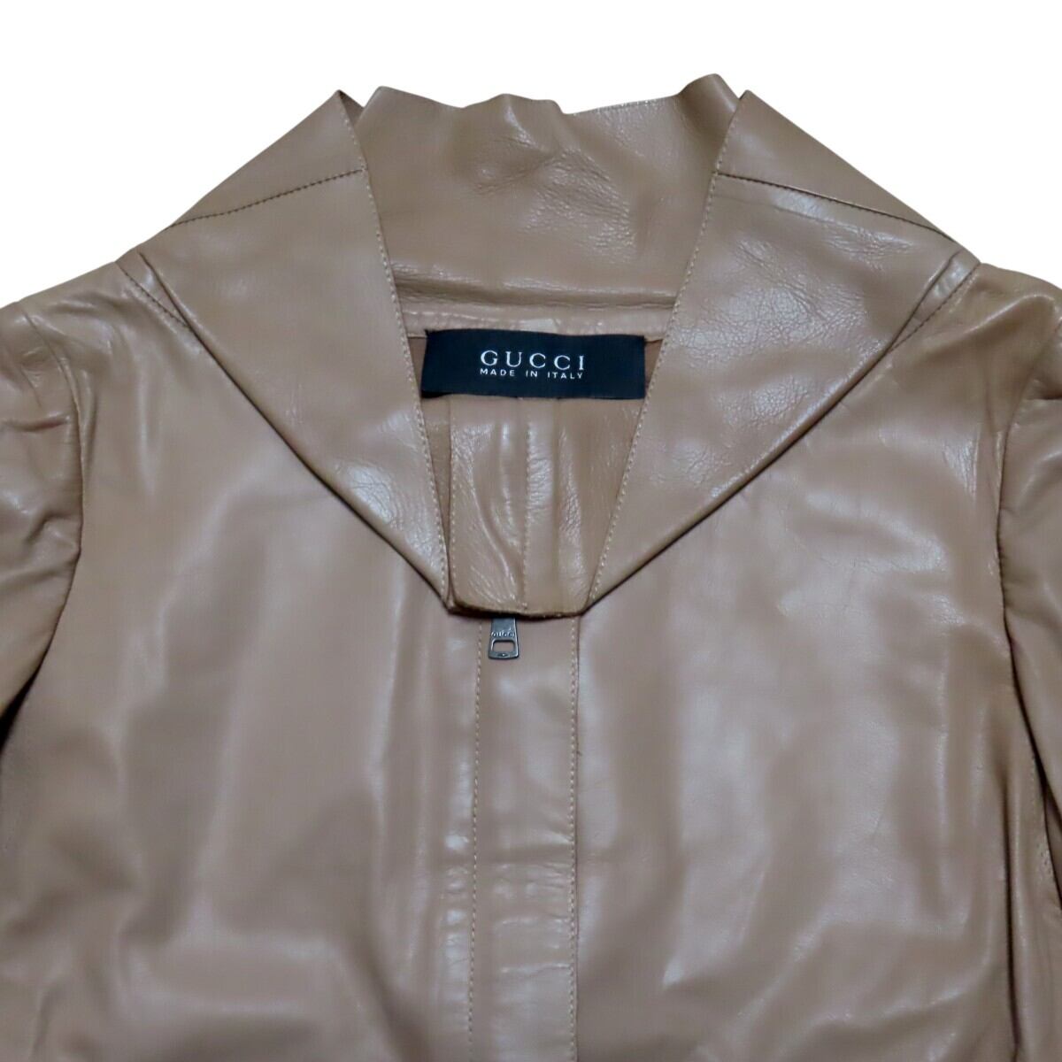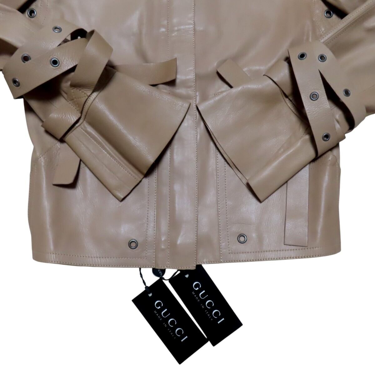 商品名:GUCCI グッチ 袖ストラップ ジップアップ シングル ゴートレザージャット 38 ベージュ
