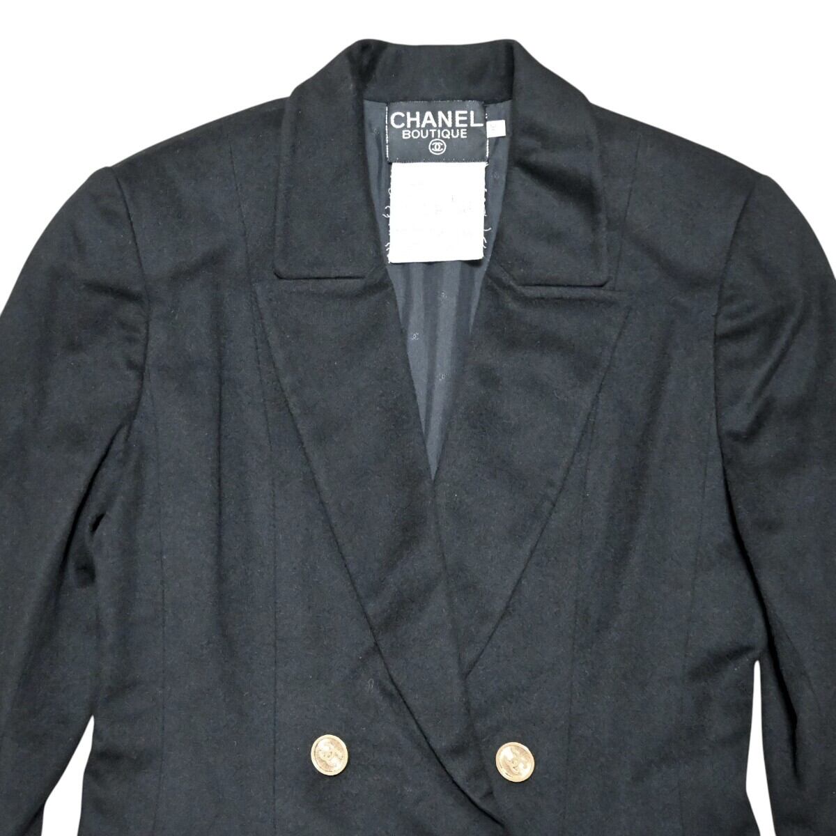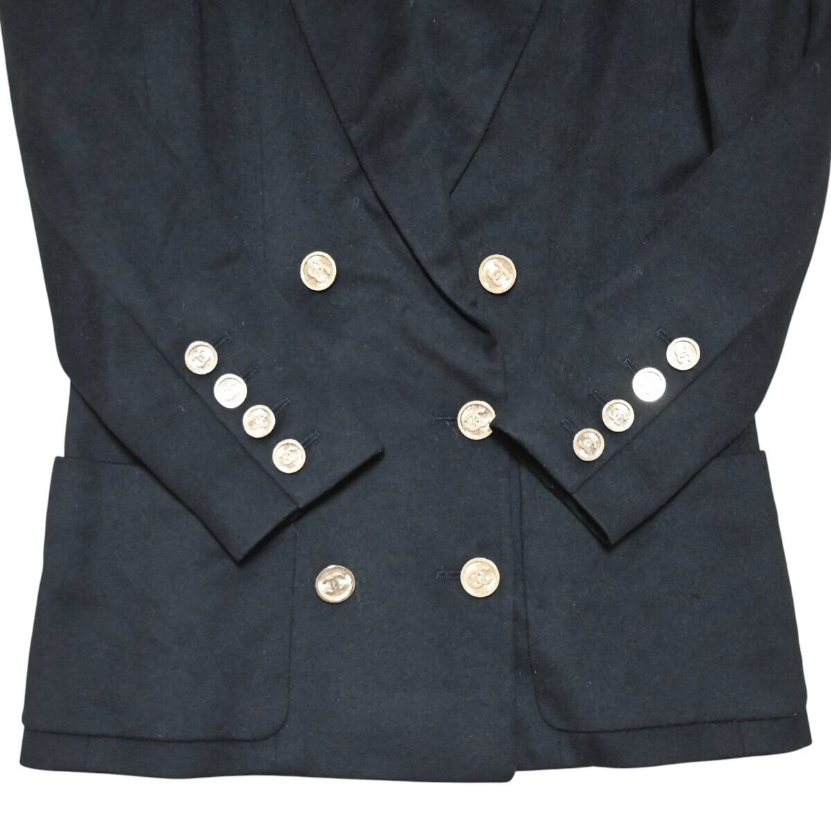 CHANEL シャネル ヴィンテージ ココマーク ゴールドボタン ウール/シルク テーラード ダブルジャケット 36 ブラック T2602-k130